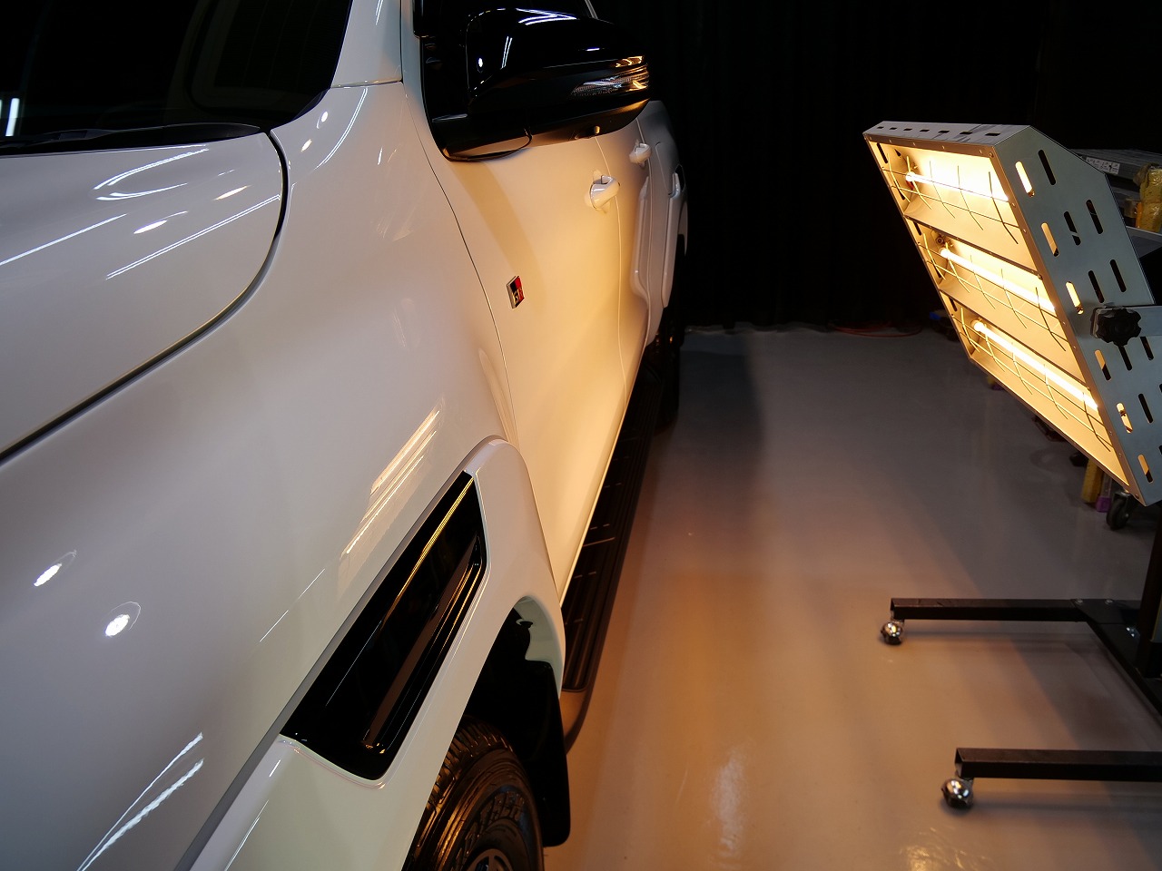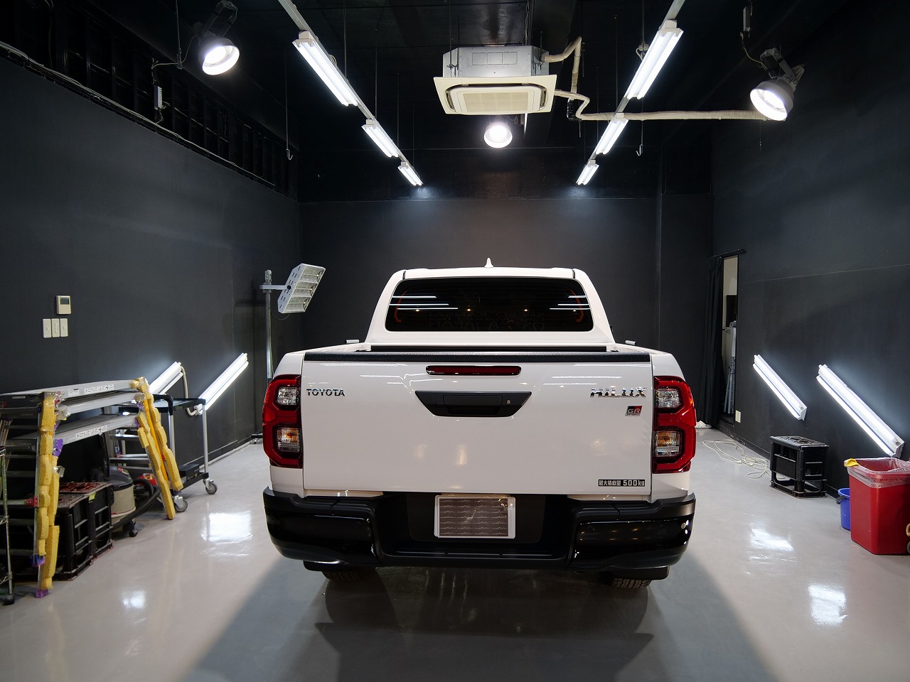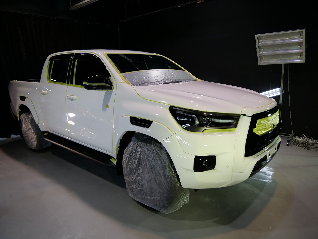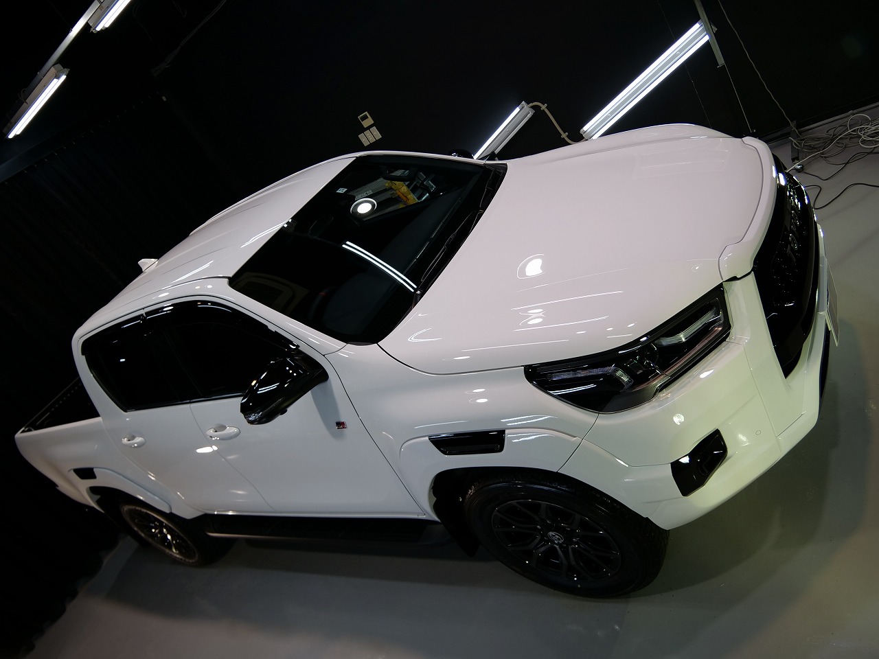 大阪市よりトヨタ ハイラックス GR-SPORTのご入庫です!ボディカラーはスーパーホワイトⅡ 施工は