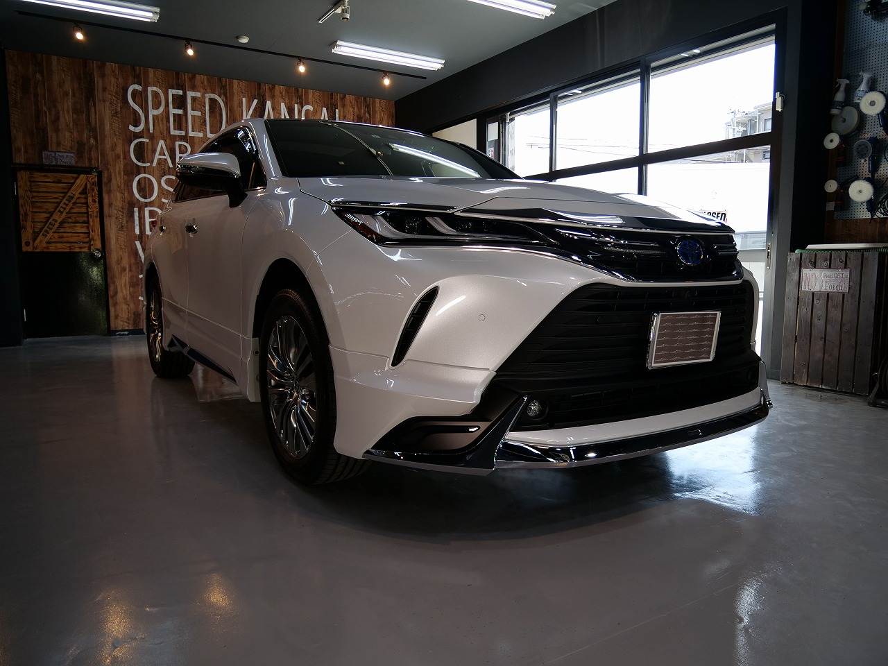大阪府門真市よりトヨタ ハリアーのご入庫です!ボディカラーはプラチナホワイトパール!エアロは