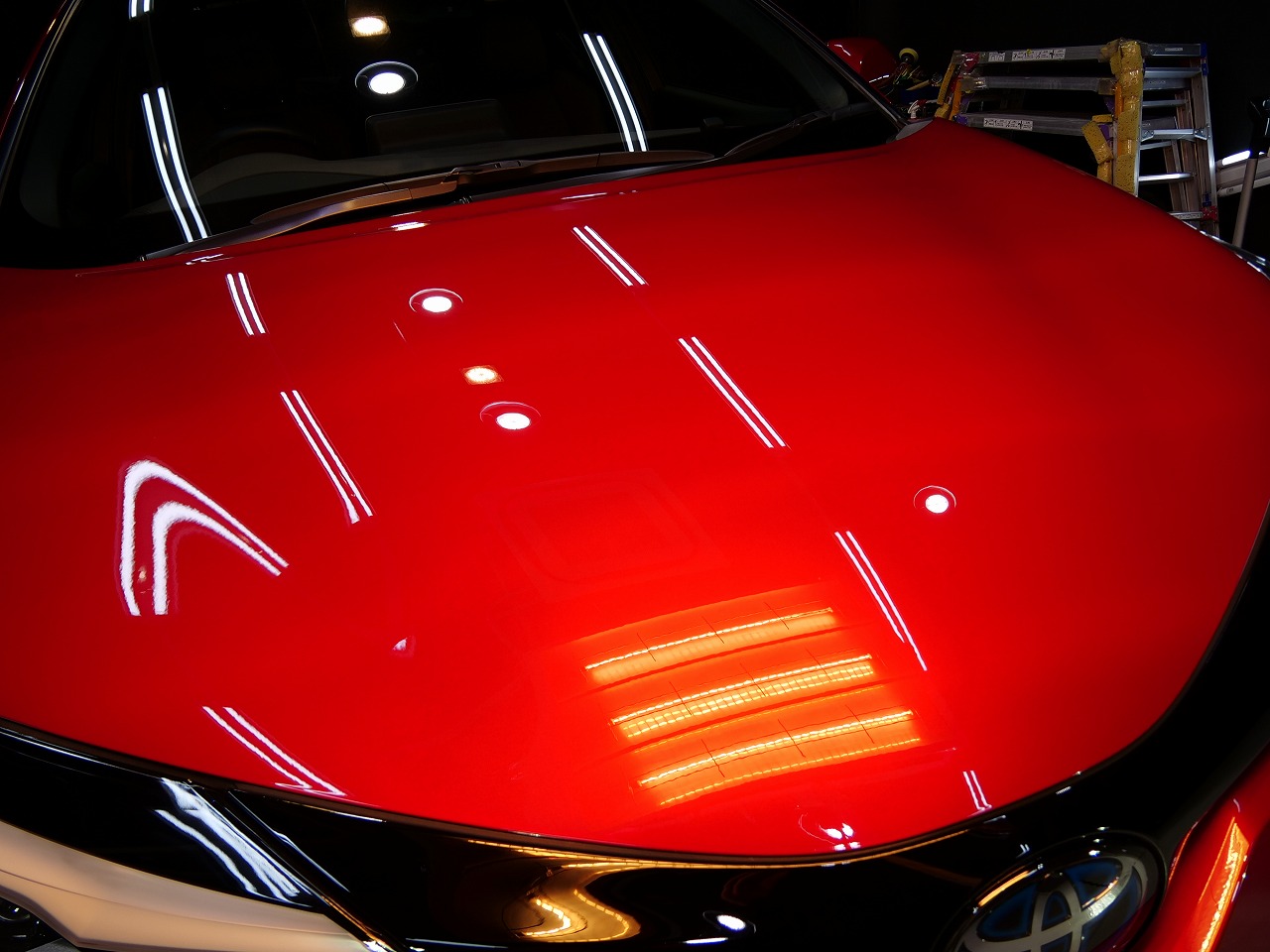 5年のお車できつめの傷が多かったですが当店の磨きで綺麗に仕上げさせて頂きました!赤は本当に磨き