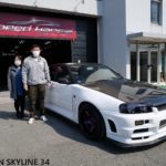 大阪差市住之江区より日産スカイライン34をお持ち下さいました!ボディカラーはホワイトソリッド!