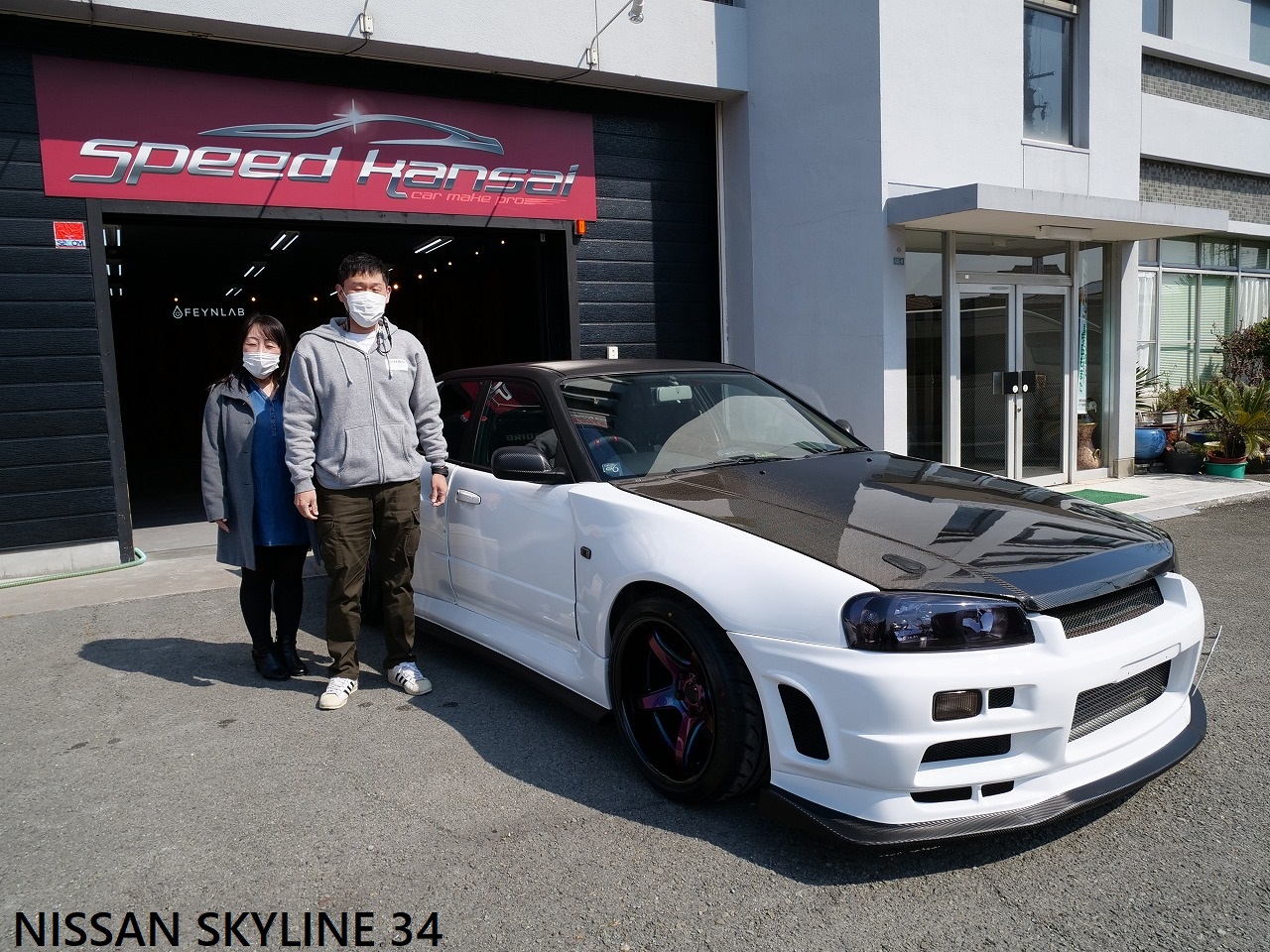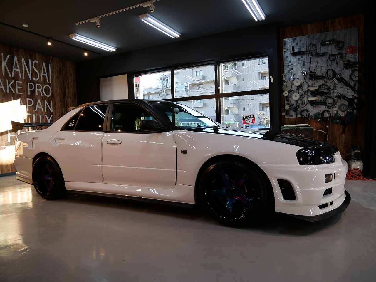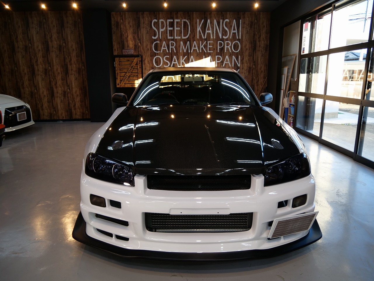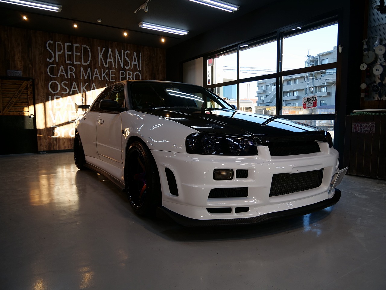 大阪差市住之江区より日産スカイライン34をお持ち下さいました!ボディカラーはホワイトソリッド!