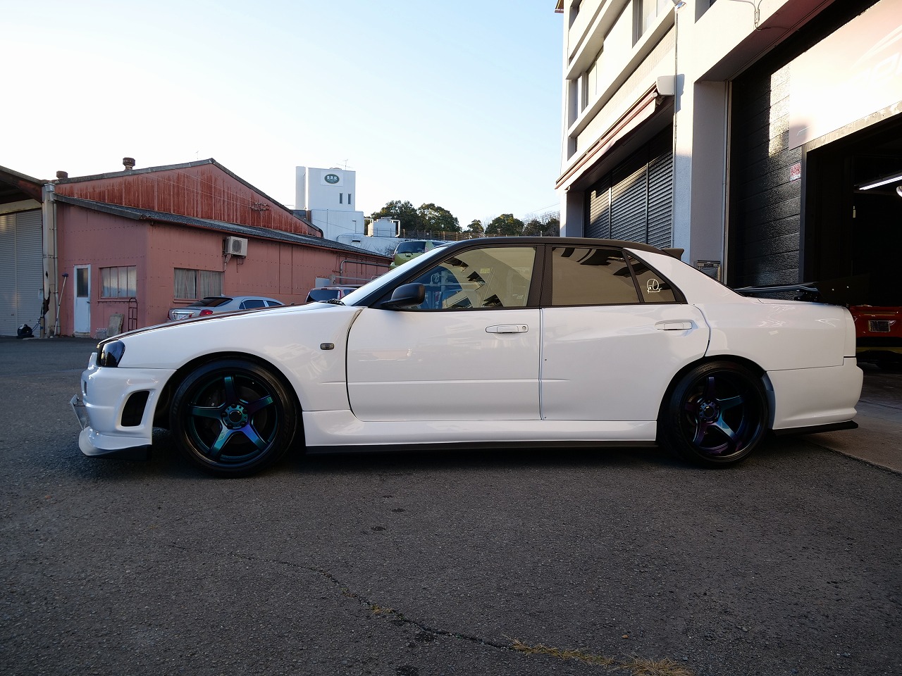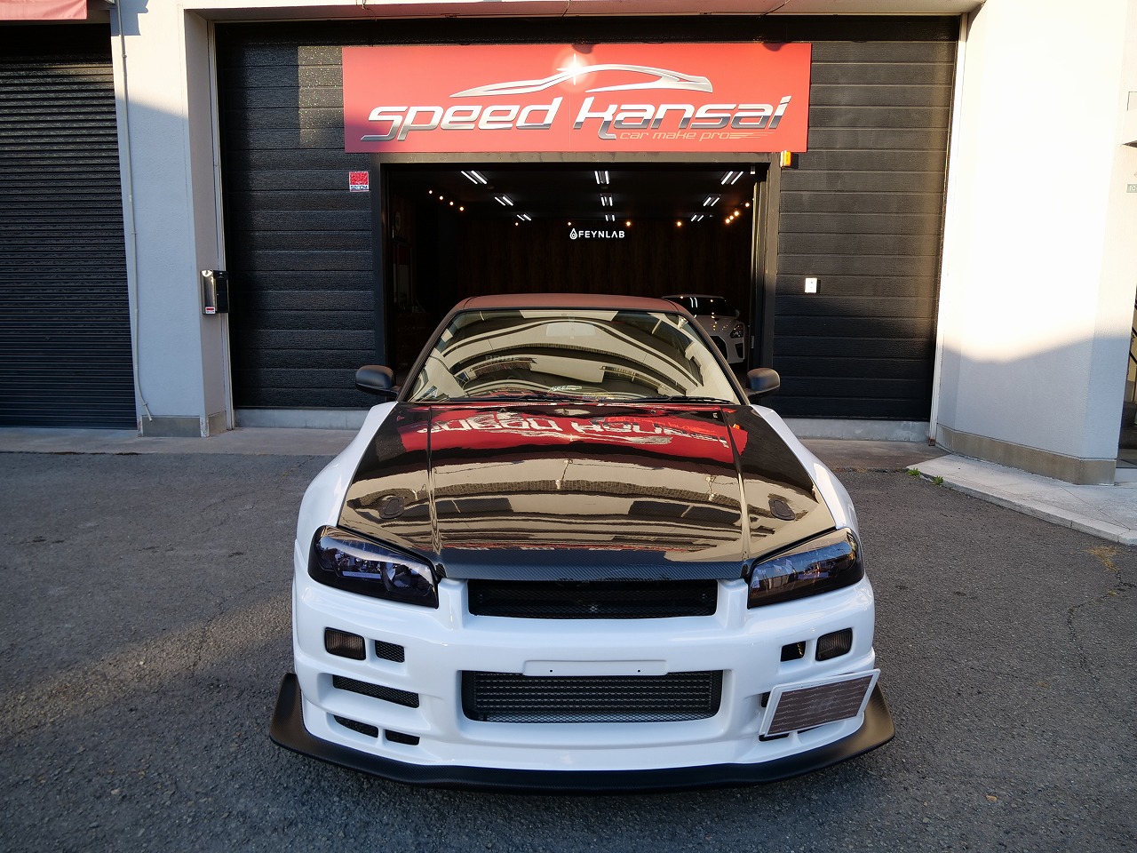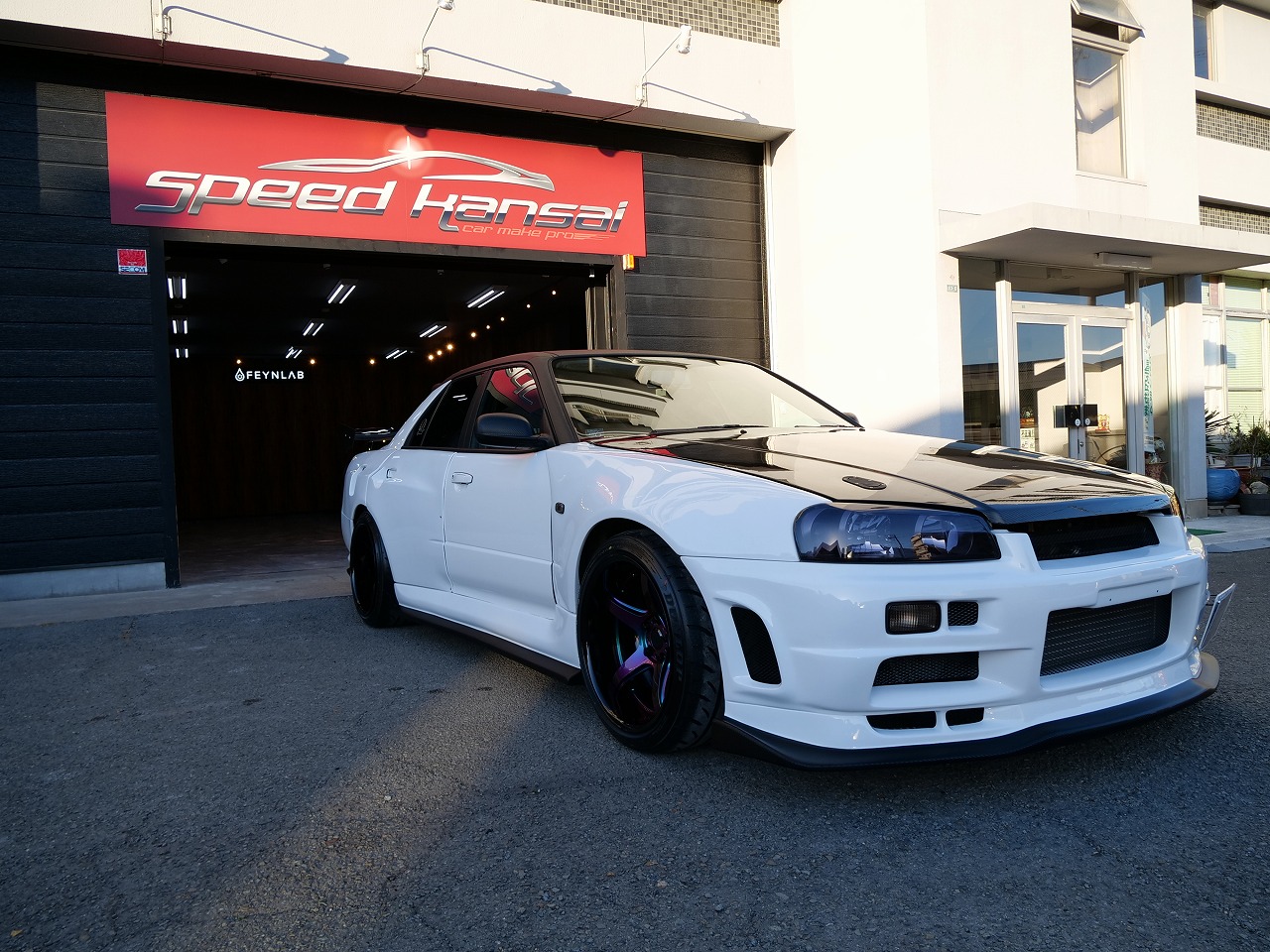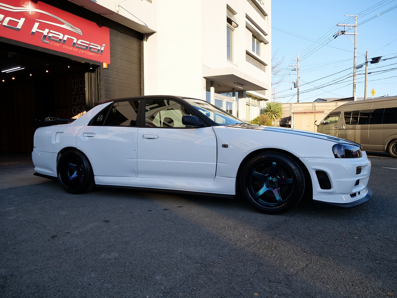 大阪差市住之江区より日産スカイライン34をお持ち下さいました!ボディカラーはホワイトソリッド!