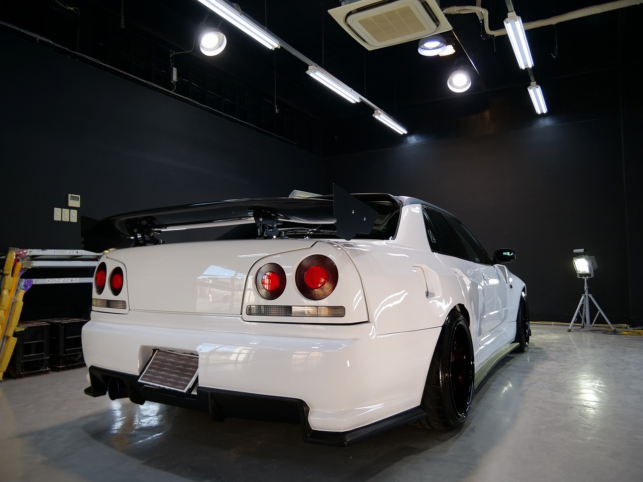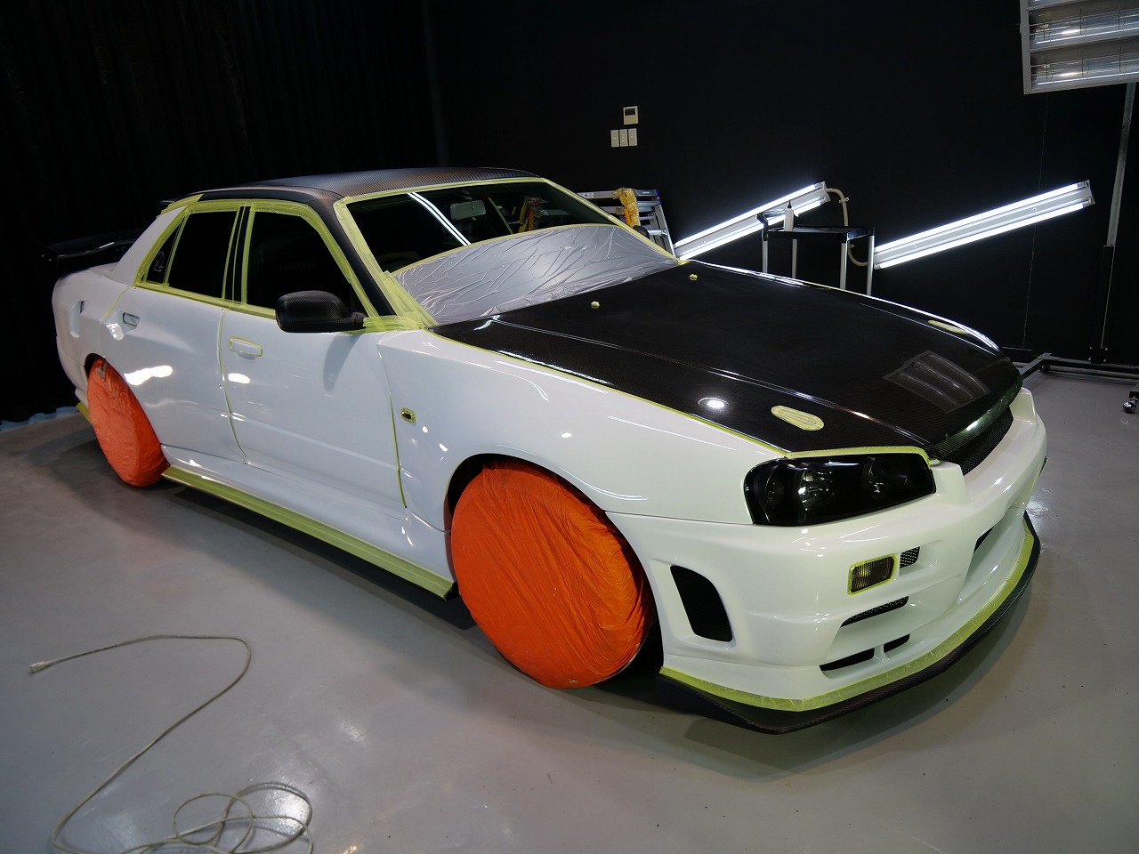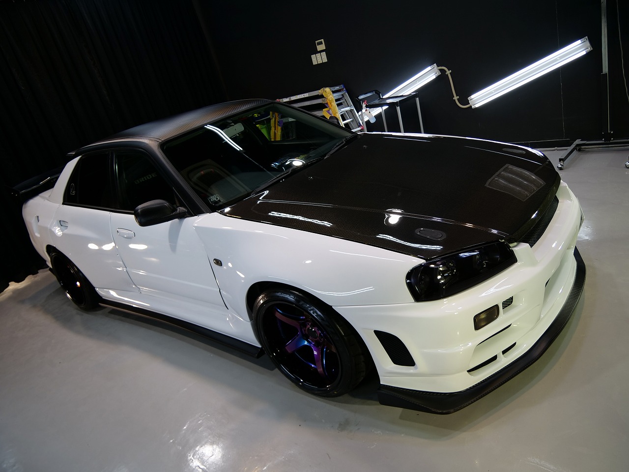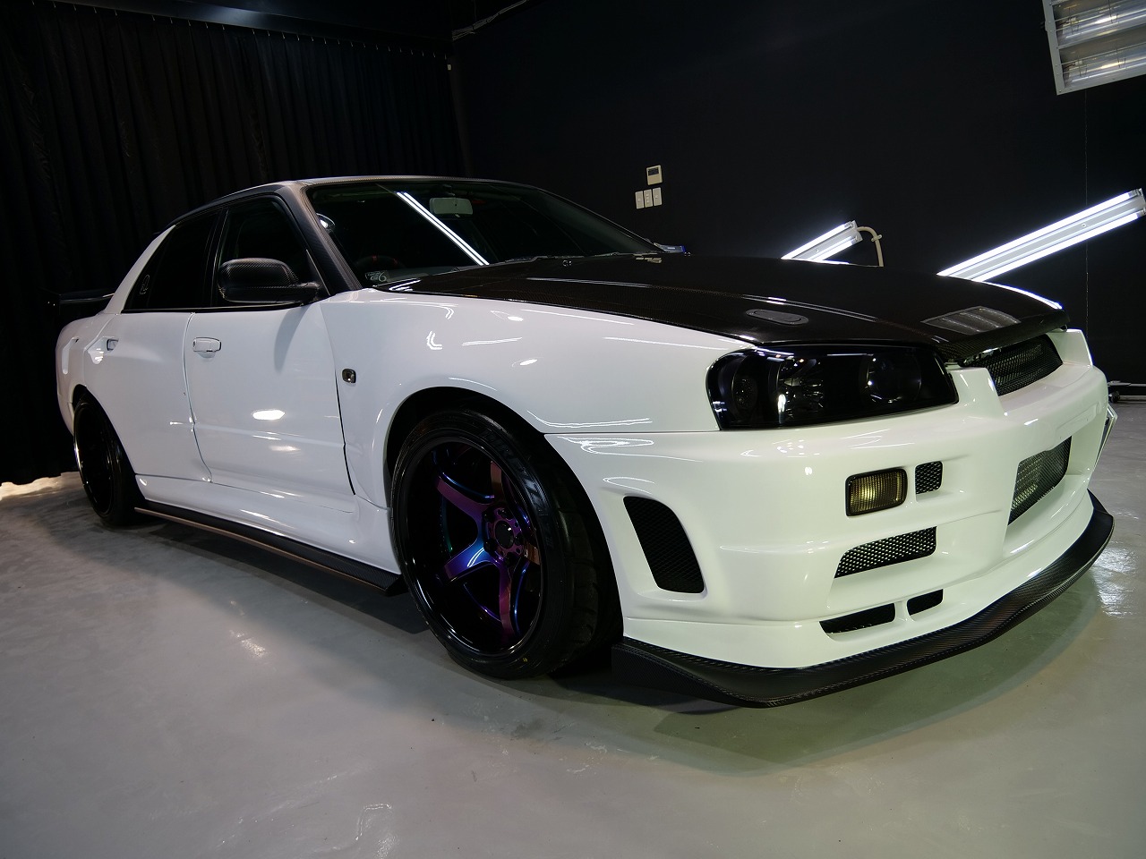 大阪差市住之江区より日産スカイライン34をお持ち下さいました!ボディカラーはホワイトソリッド!