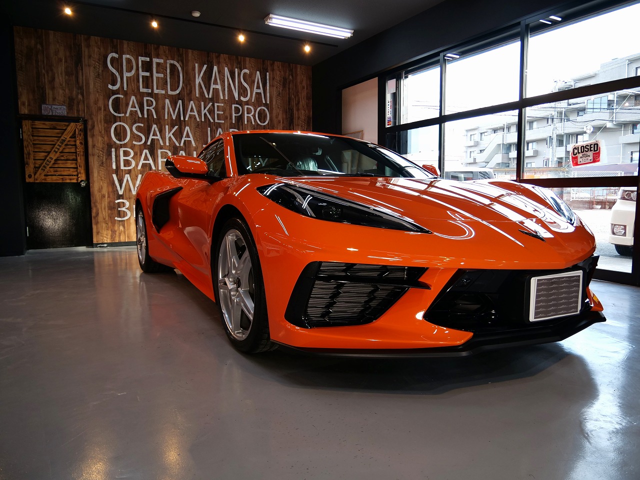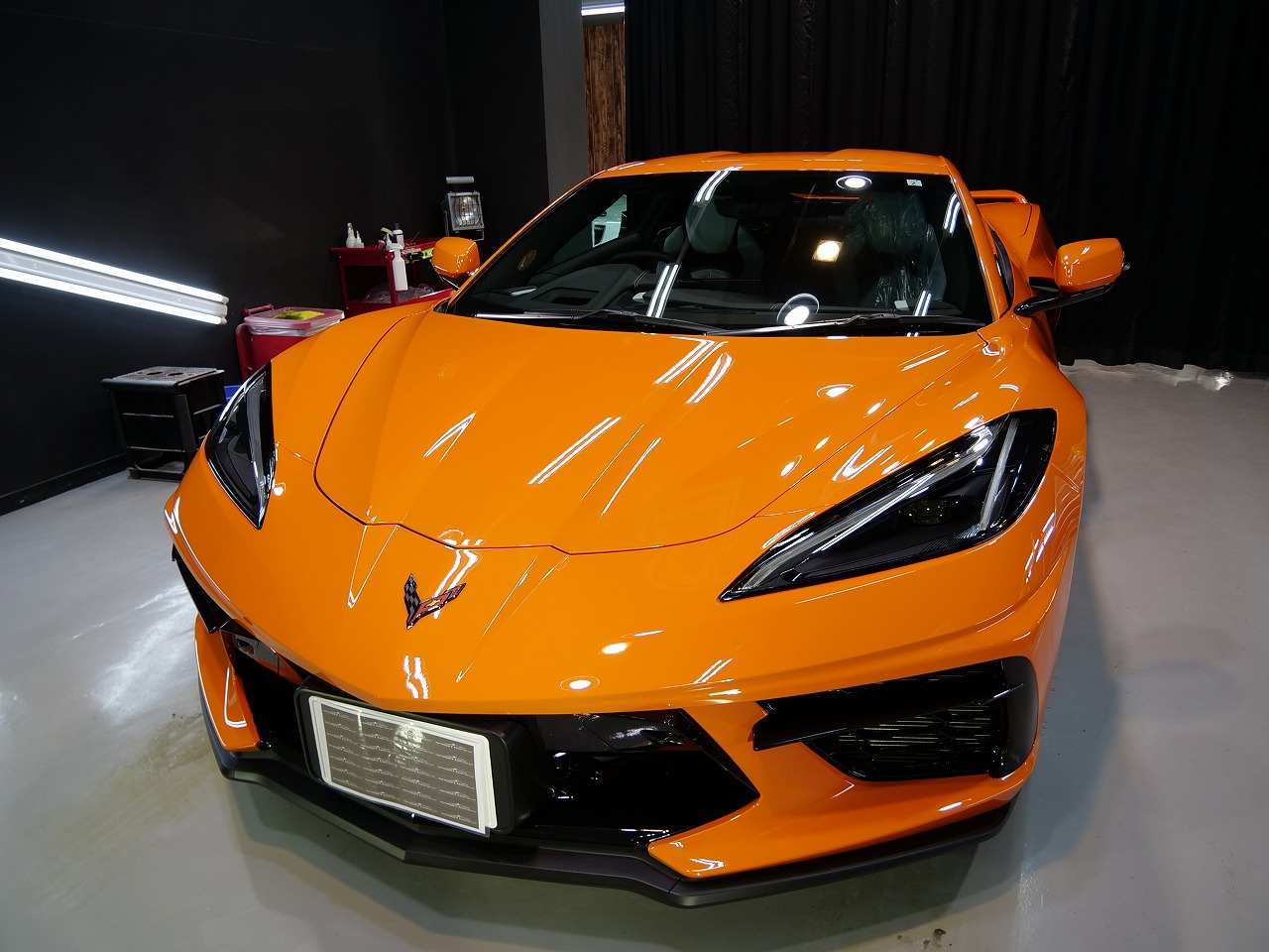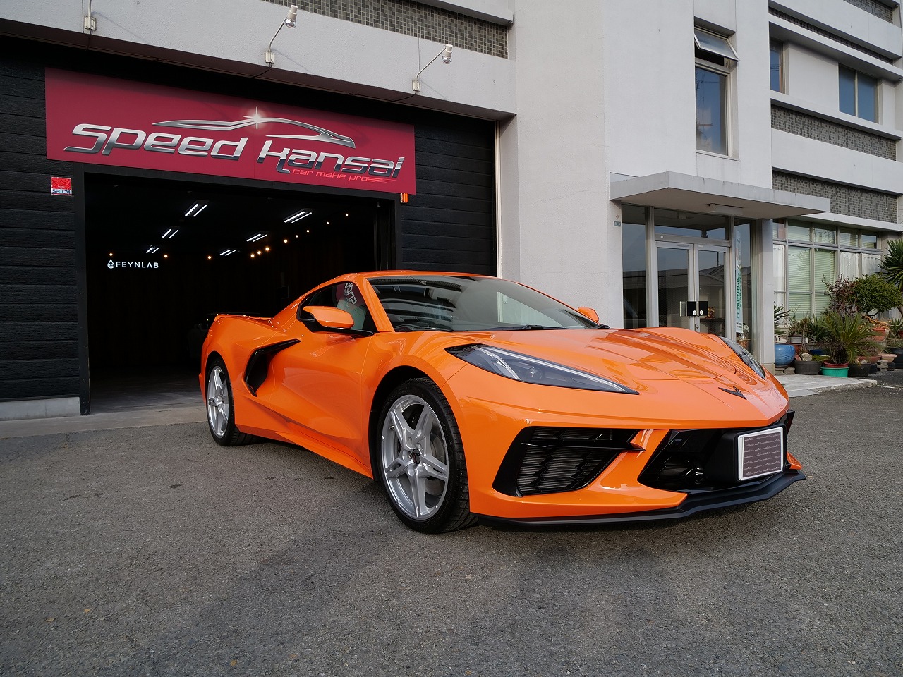 大阪府茨木市より当店のお客様からのご紹介でシボレー コルベットC8型のご入庫です!ボディカラーは