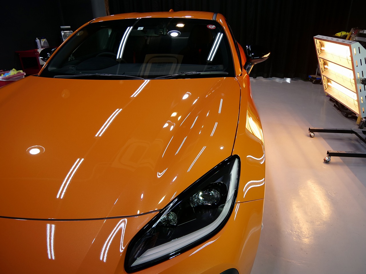 ました!ボディカラーはフレイムオレンジパールメタリック!施工はボディには完全無機質のクォーツ