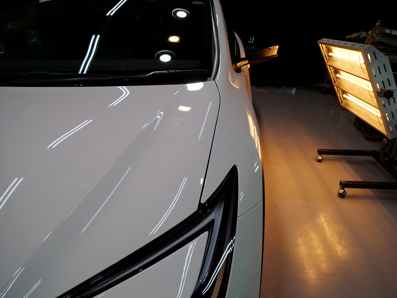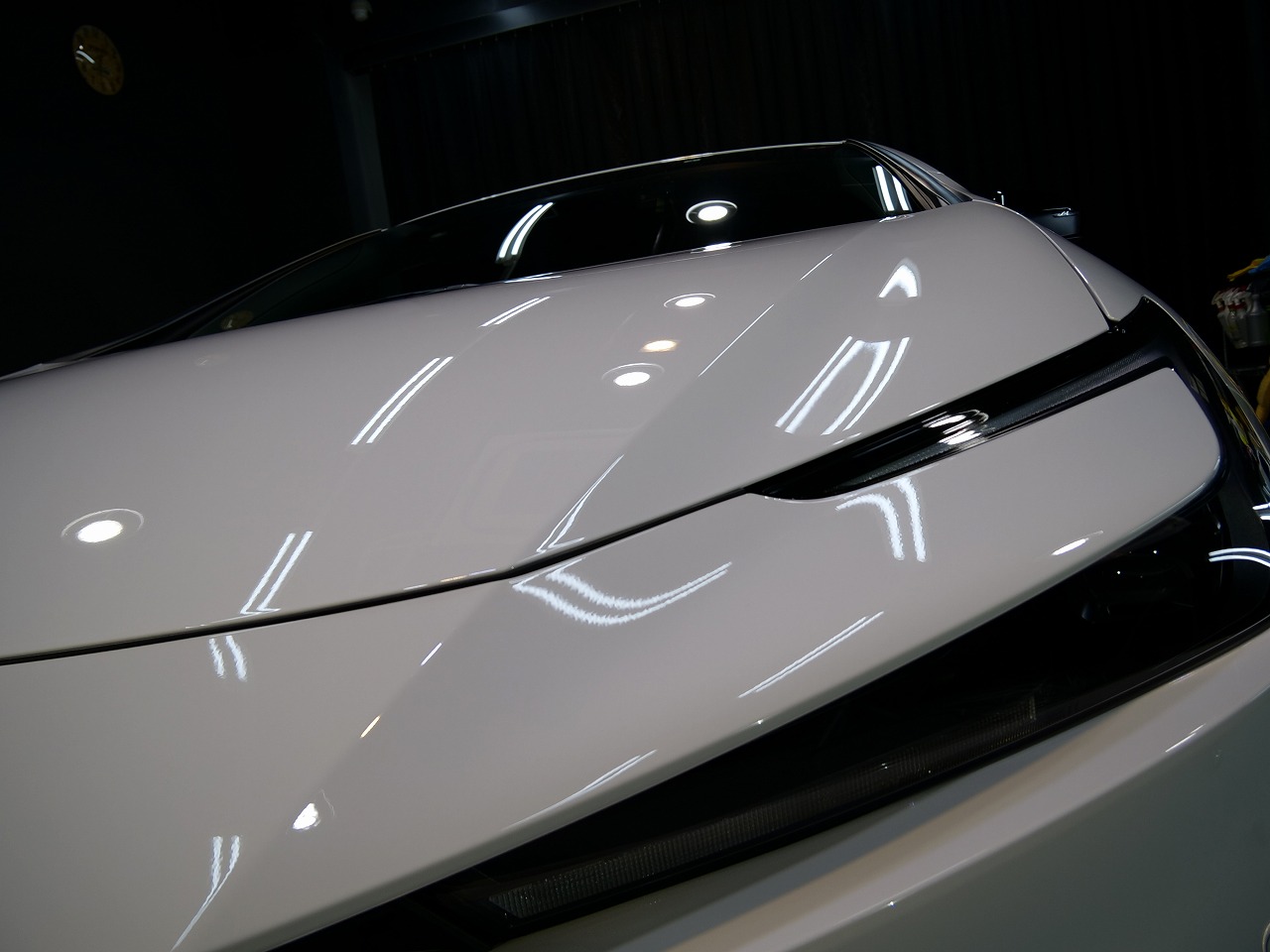 はスーパーホワイトⅡ、施工はボディにはハイモースコートザ・ネオ/ウィンドウガラス全面撥水2年耐久
