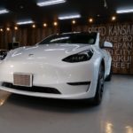 大阪府高槻市よりテスラ モデルYのご入庫です!ボディカラーはパールホワイトマルチコート!施工は