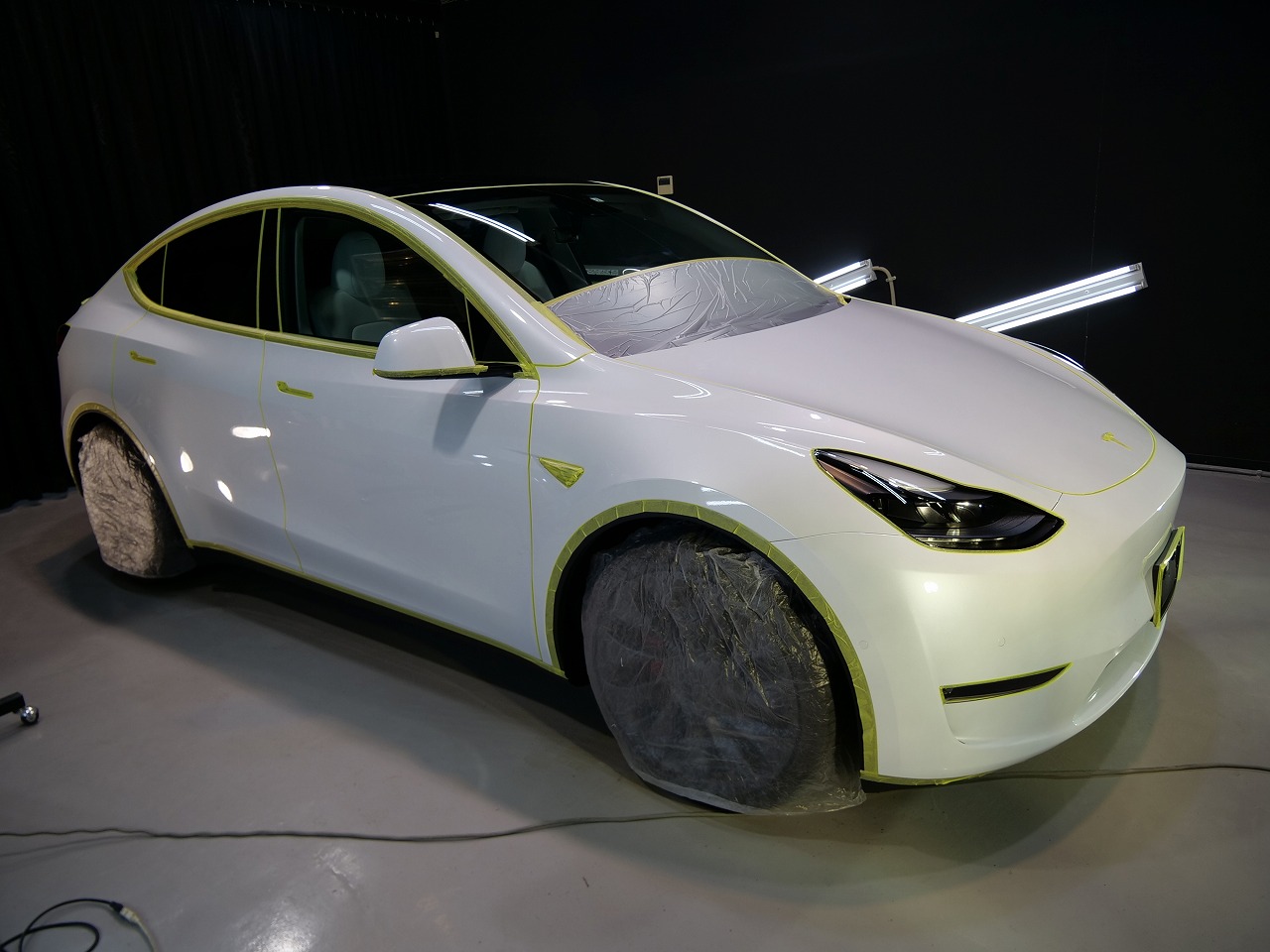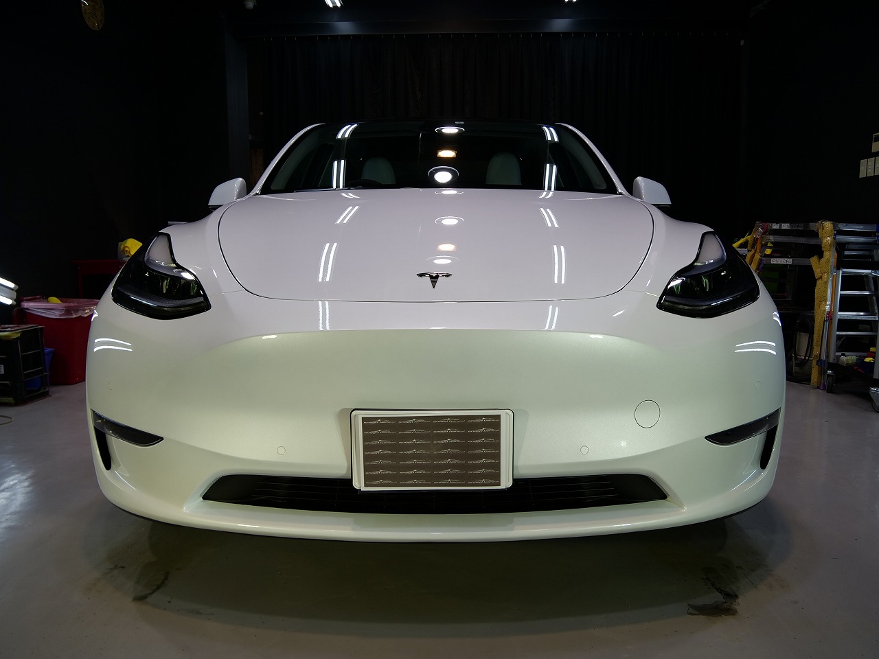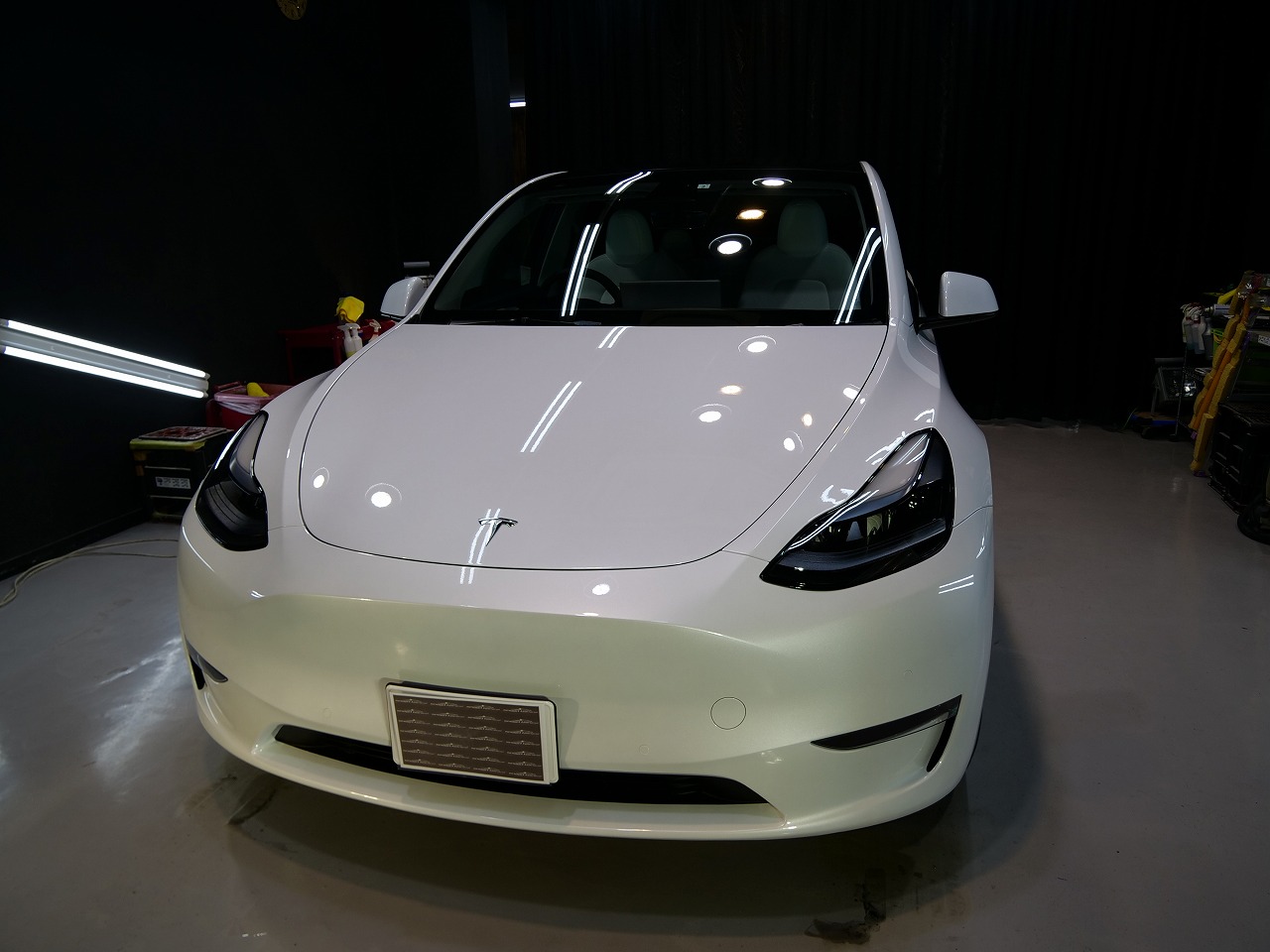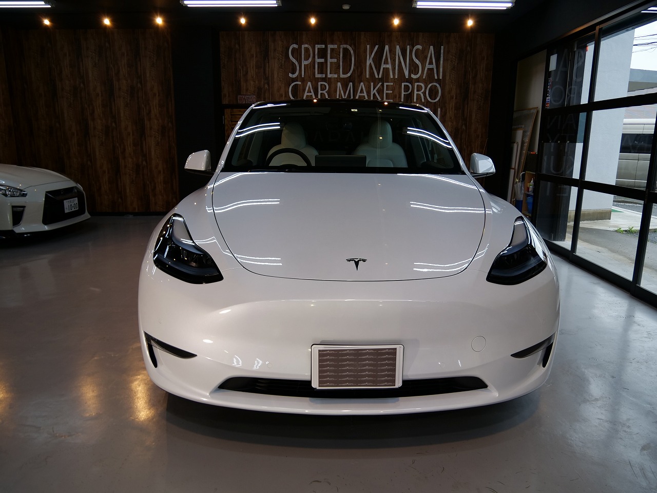 大阪府高槻市よりテスラ モデルYのご入庫です!ボディカラーはパールホワイトマルチコート!施工は