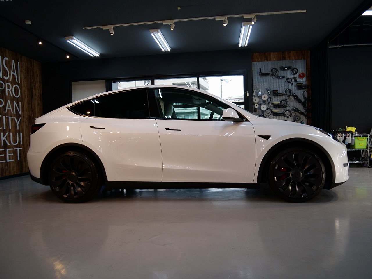 ボディにはファイラボセラミックコーティング2層/ホイールコーティングの2点です!このモデルYは