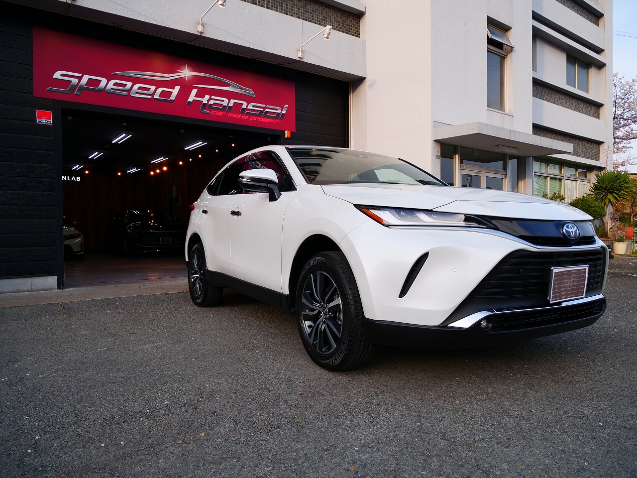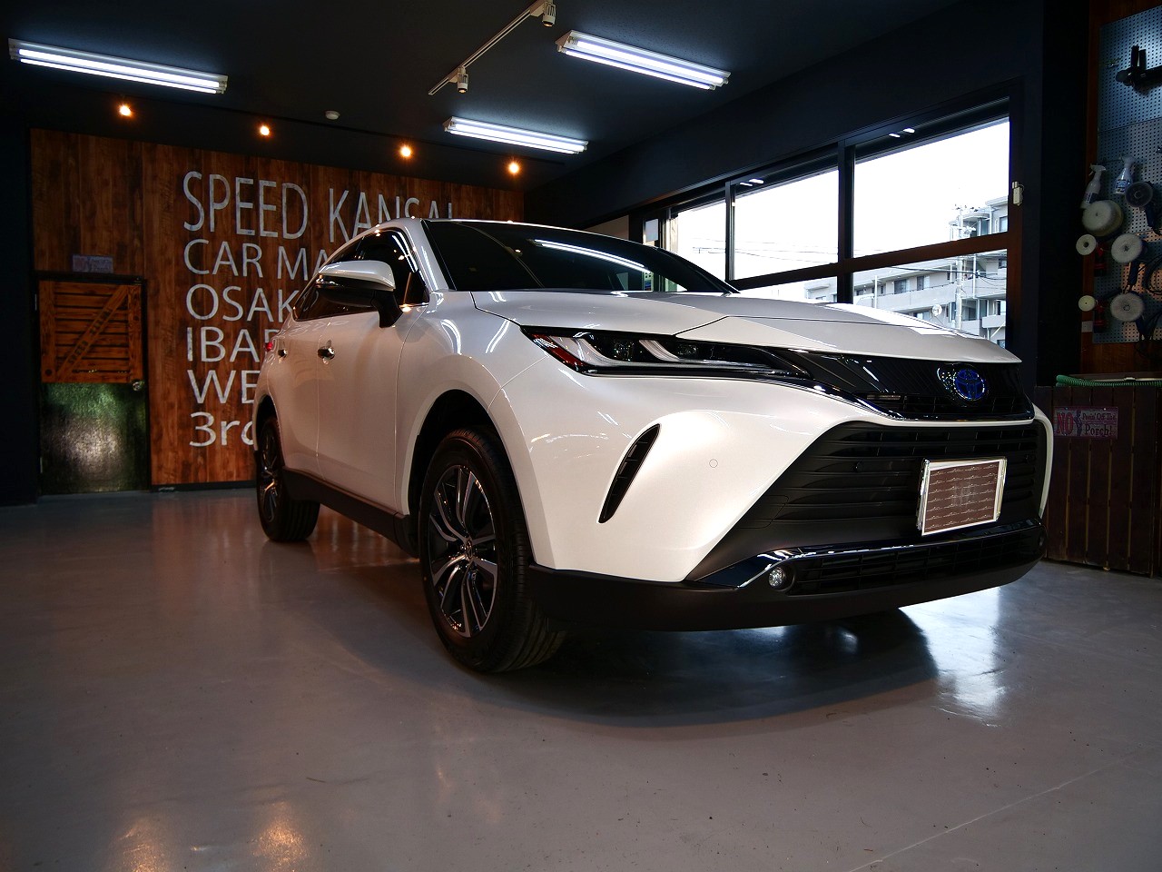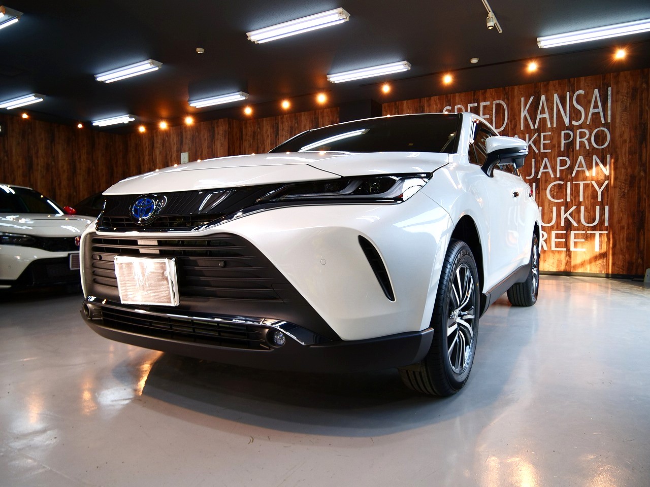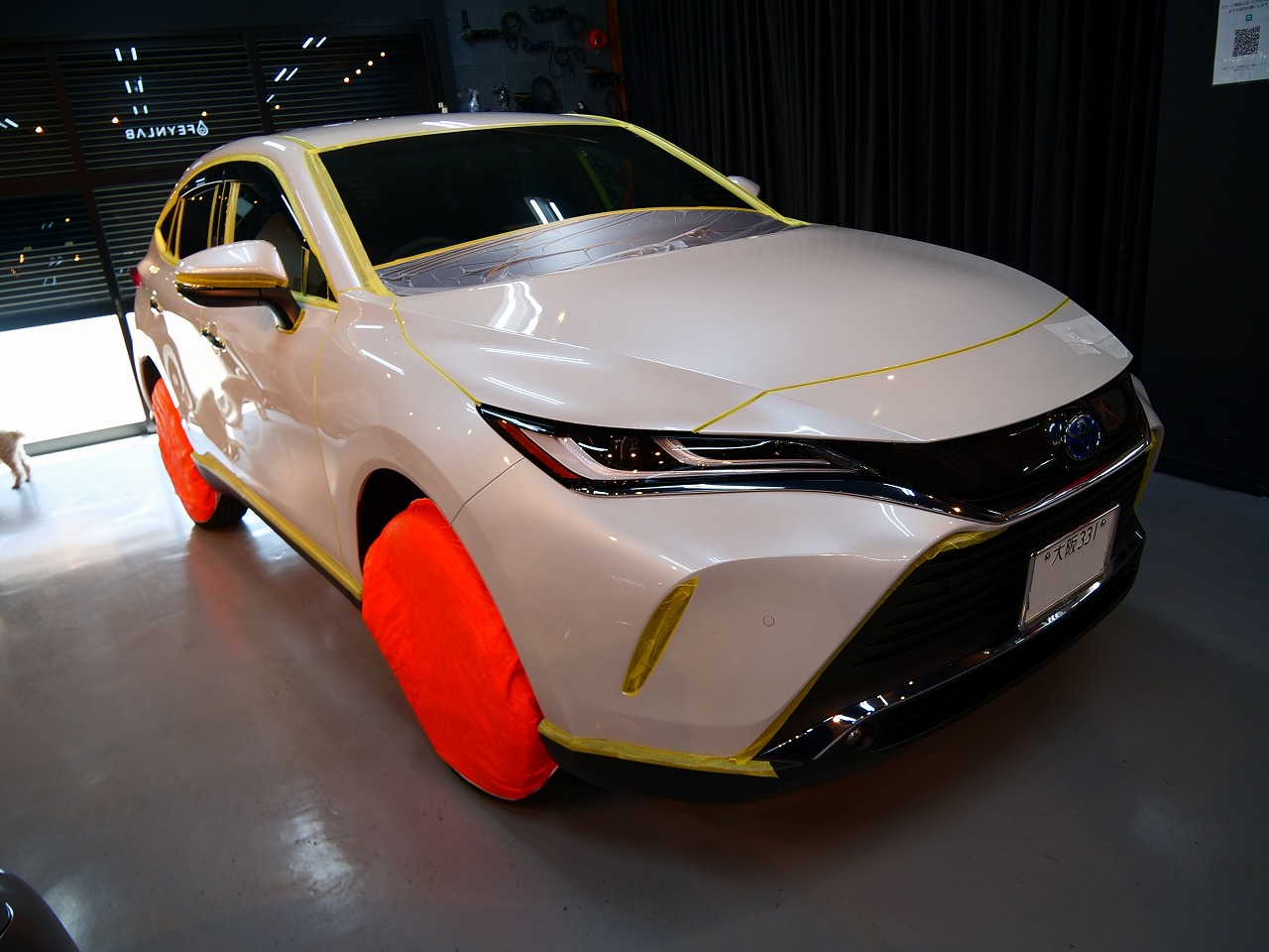 大阪府摂津市よりトヨタ ハリアーHYのご入庫です!ボディカラーはプラチナホワイトパールマイカ!