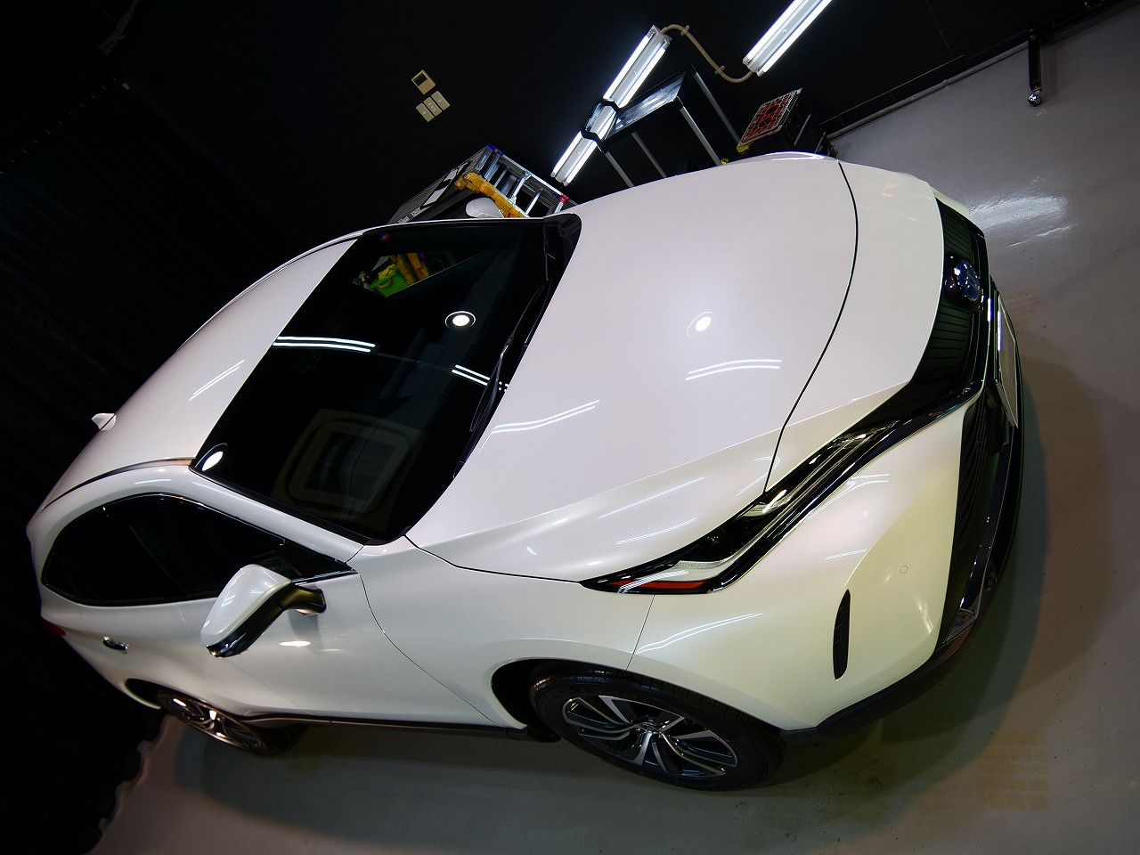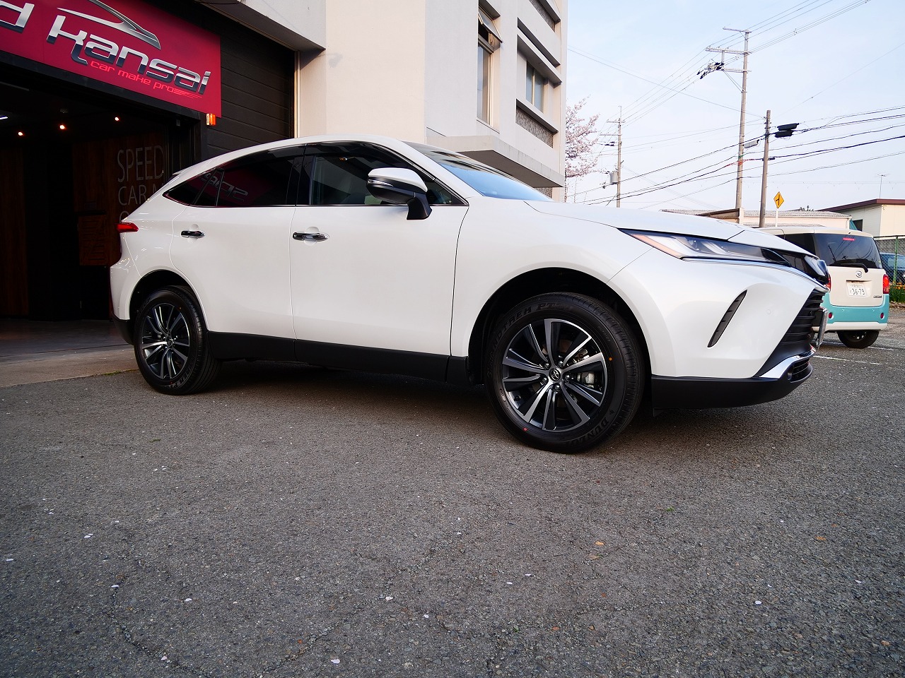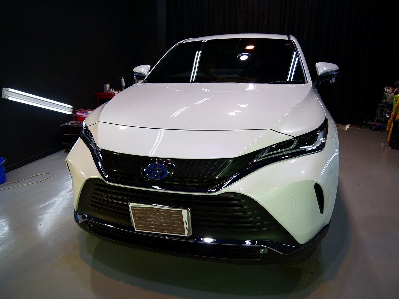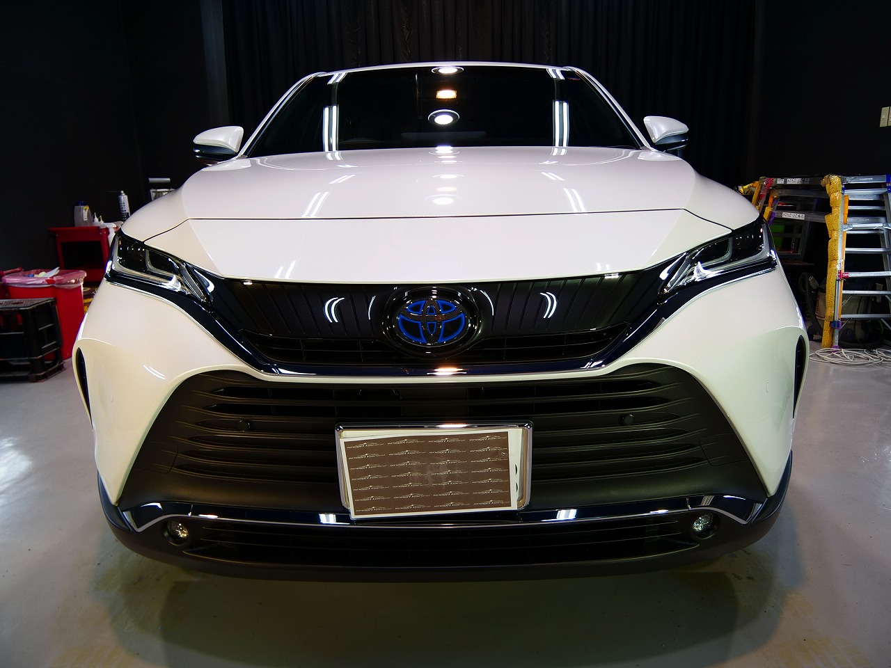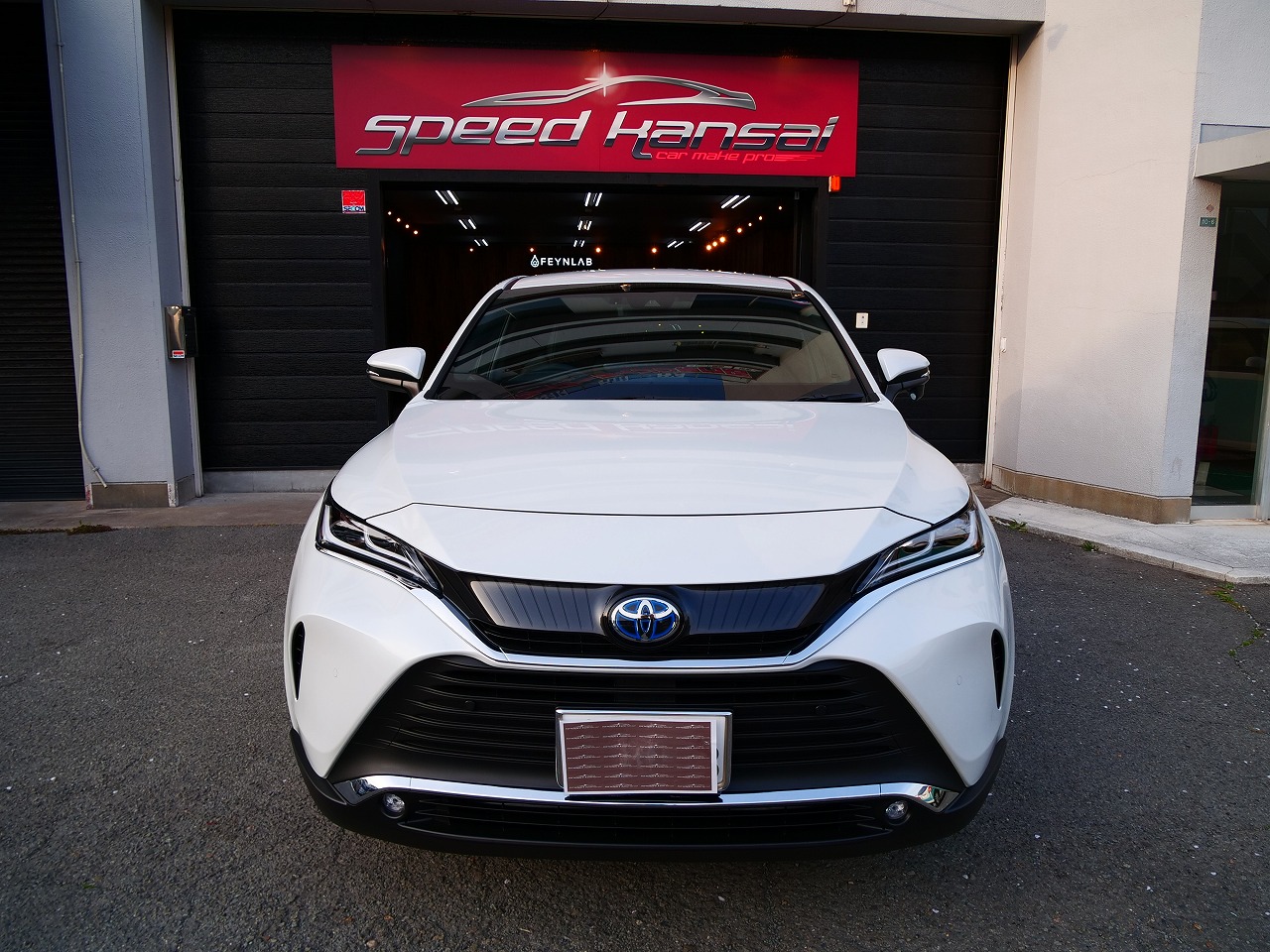 大阪府摂津市よりトヨタ ハリアーHYのご入庫です!ボディカラーはプラチナホワイトパールマイカ!