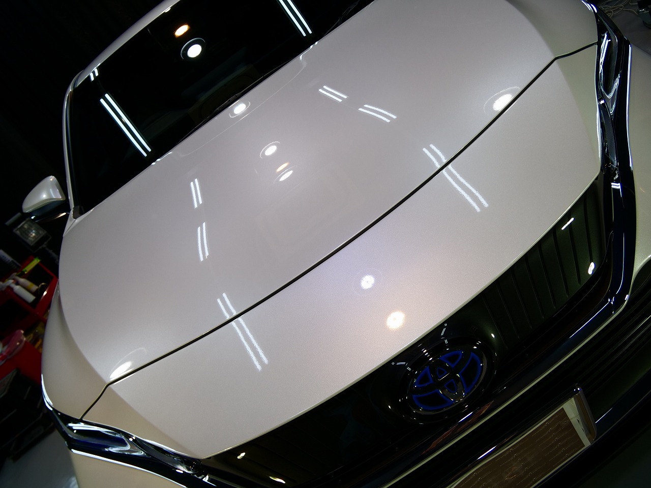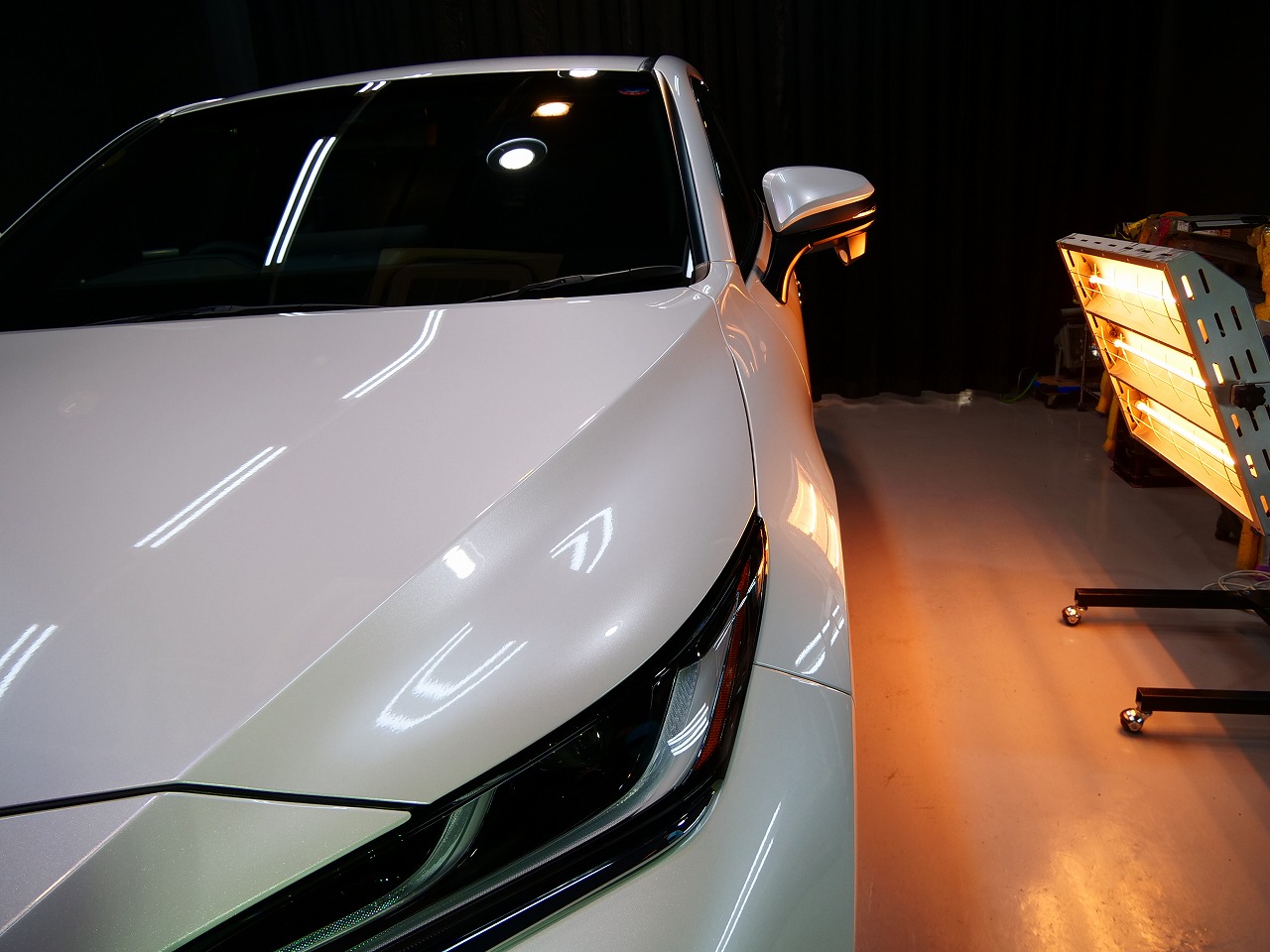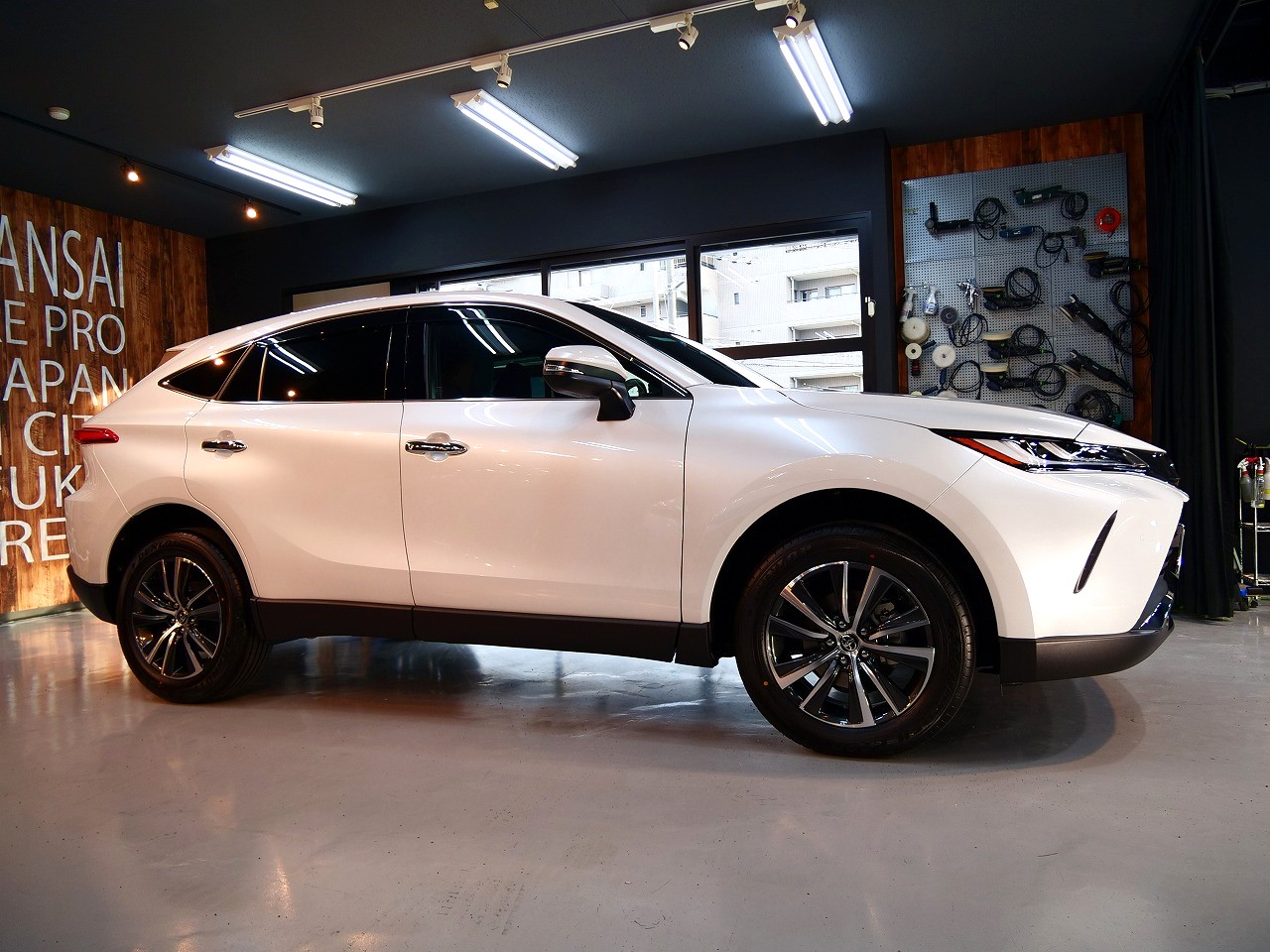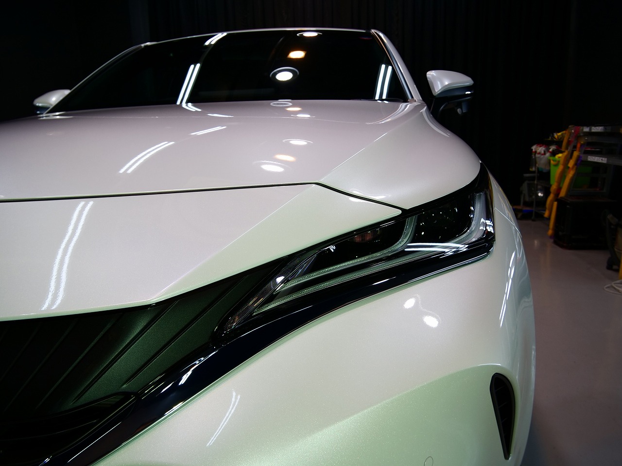 大阪府摂津市よりトヨタ ハリアーHYのご入庫です!ボディカラーはプラチナホワイトパールマイカ!