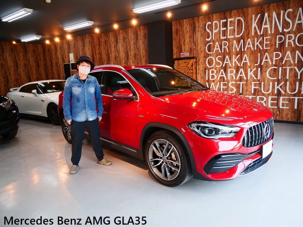 大阪府堺市よりメルセデスベンツAMG GLA35のご入庫です!ボディカラーはパタゴニアレッド!施工は