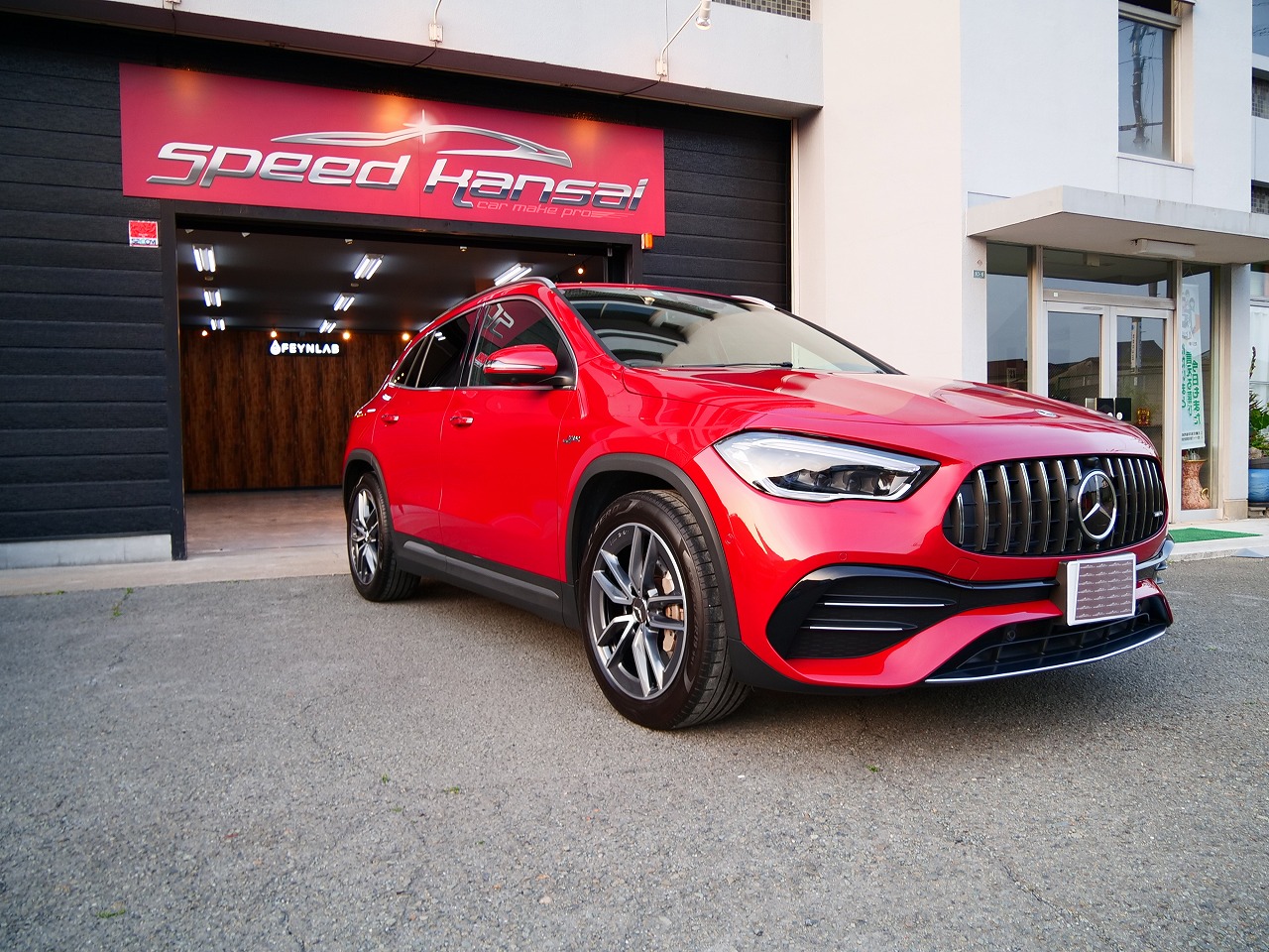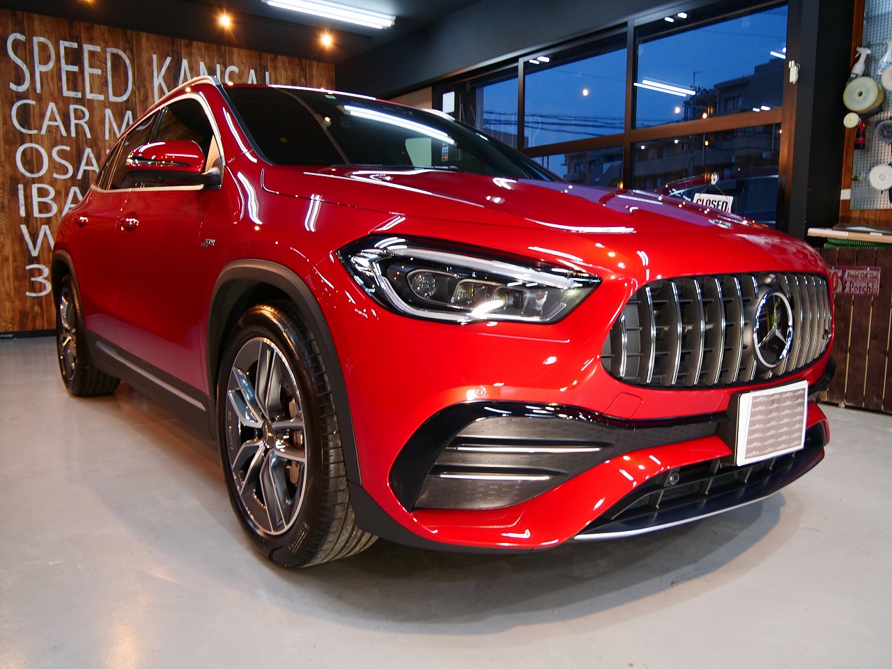 大阪府堺市よりメルセデスベンツAMG GLA35のご入庫です!ボディカラーはパタゴニアレッド!施工は