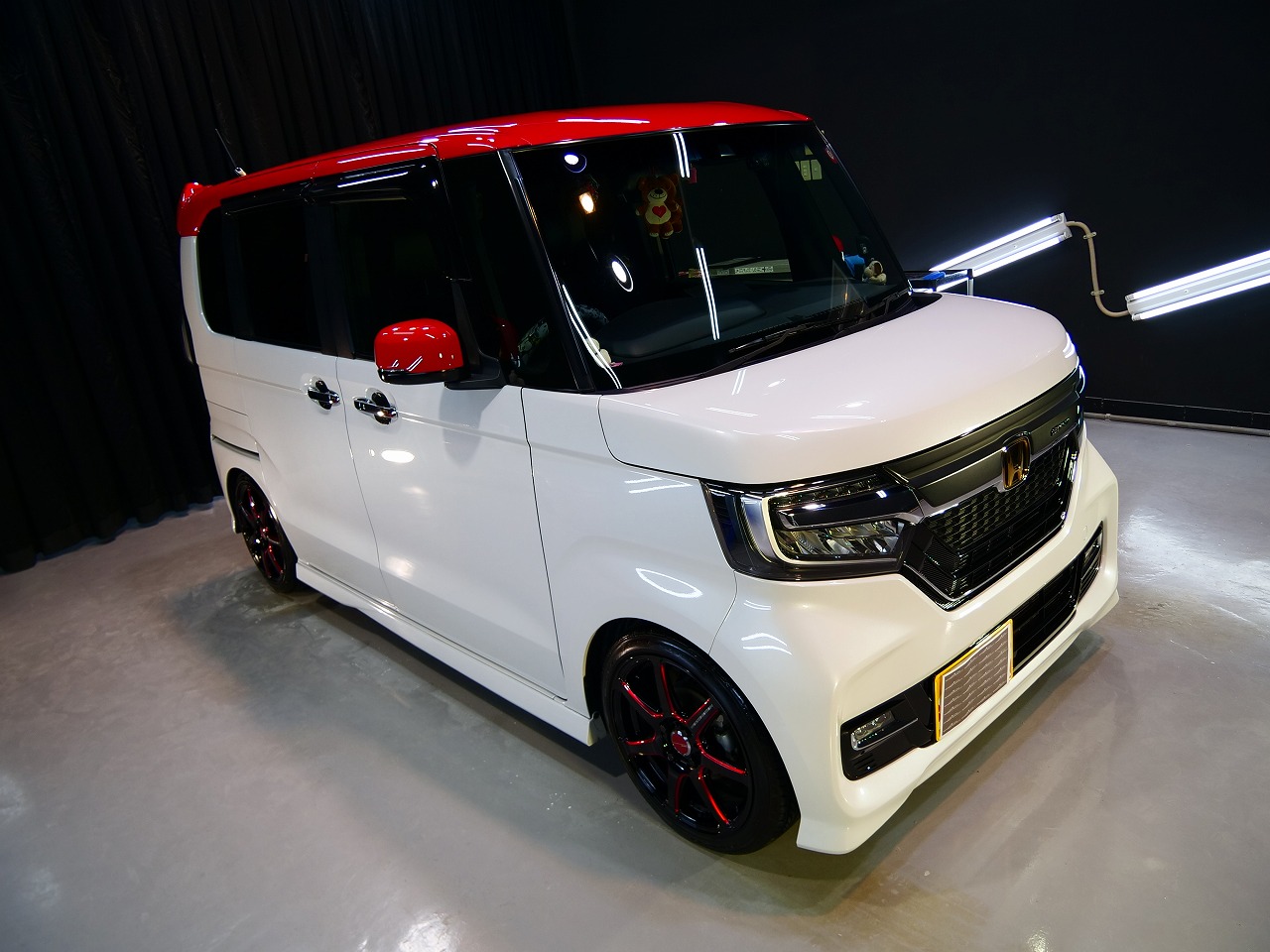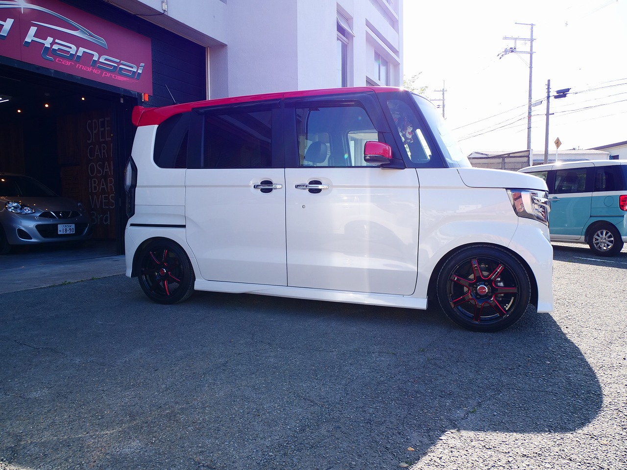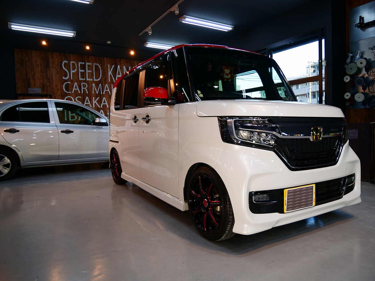 大阪府松原市より当店のリピーター様がホンダN-BOXカスタムをお持ち下さいました!ボディカラーは