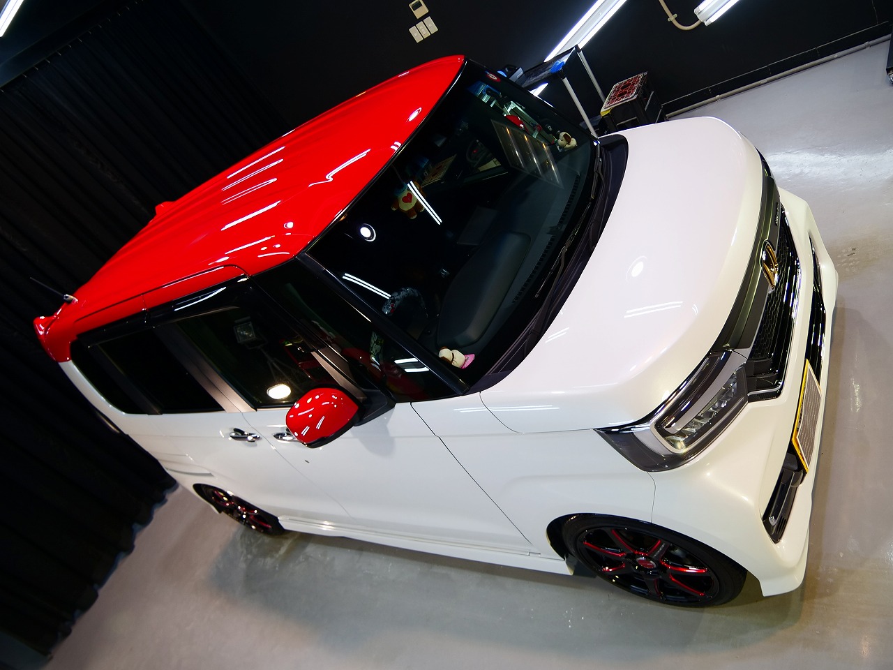 プラチナホワイトパール&ミラレッド!施工はボディにはファイラボセラミックコーティング2層/