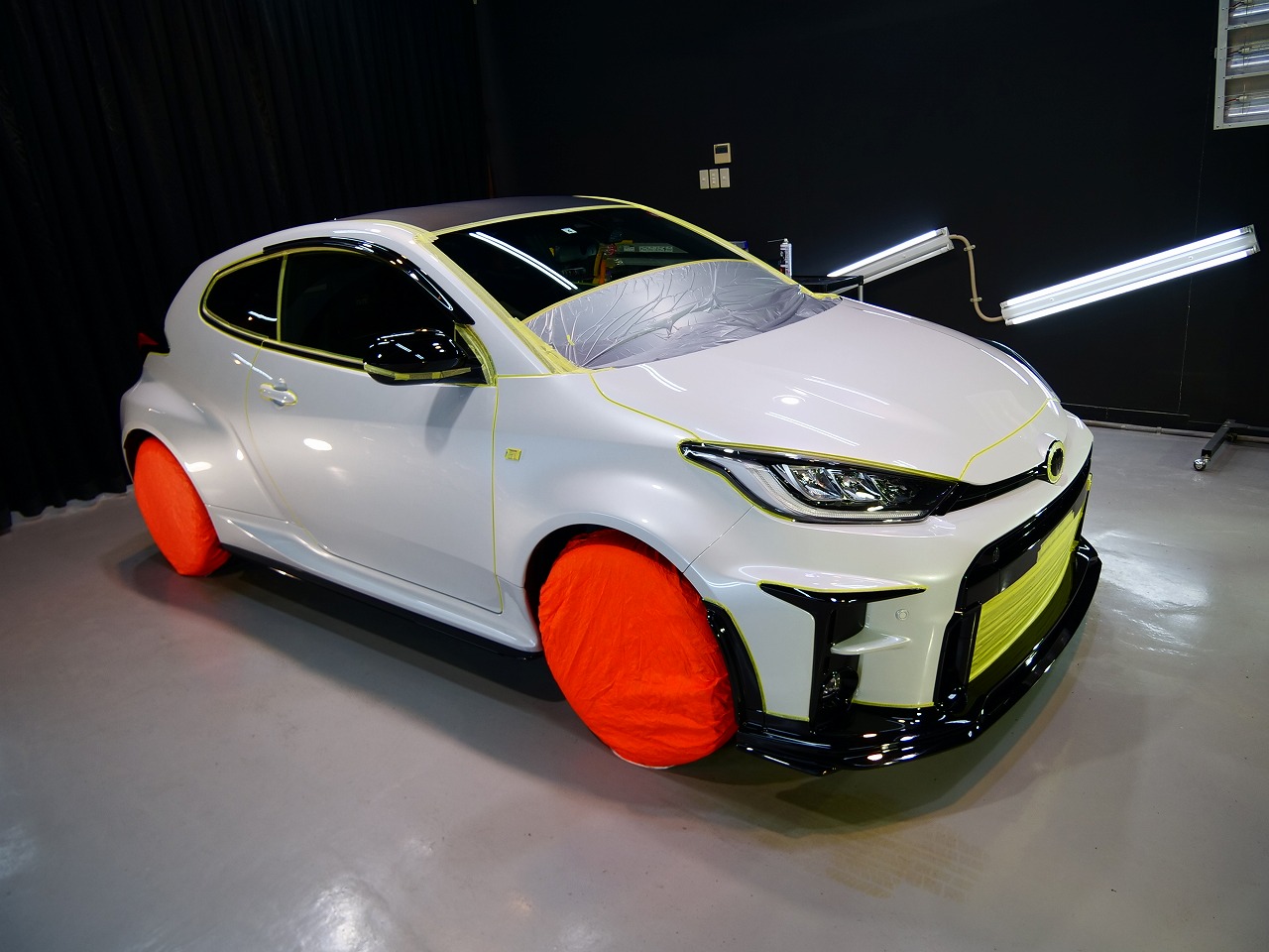 兵庫県川西市よりトヨタGRヤリスのご入庫です!ボディカラーはプラチナホワイトパールマイカ!施工は