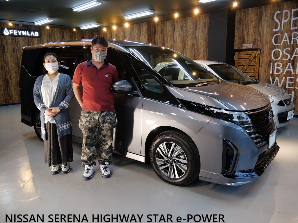 大阪府高槻市より新型の日産セレナe-POWER ハイウェィスターのご入庫です!ボディカラーはダーク