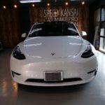 大阪府枚方市より人気のテスラ モデルYのご入庫です!ボディカラーはパールホワイトマルチコート!