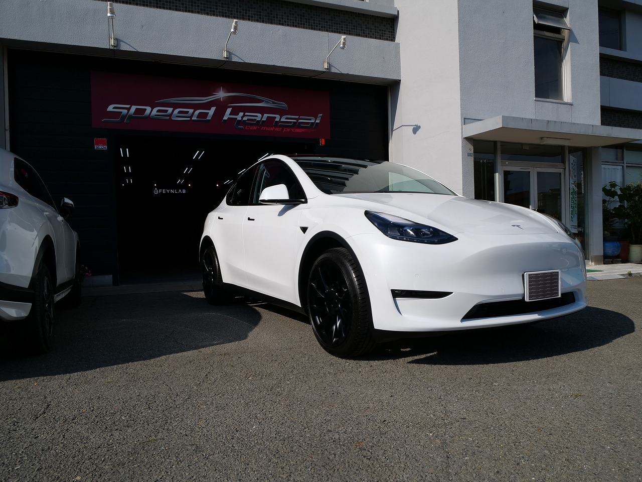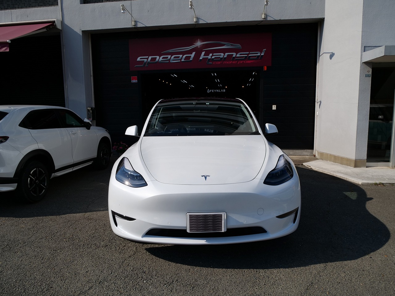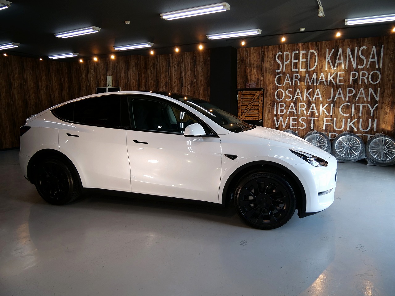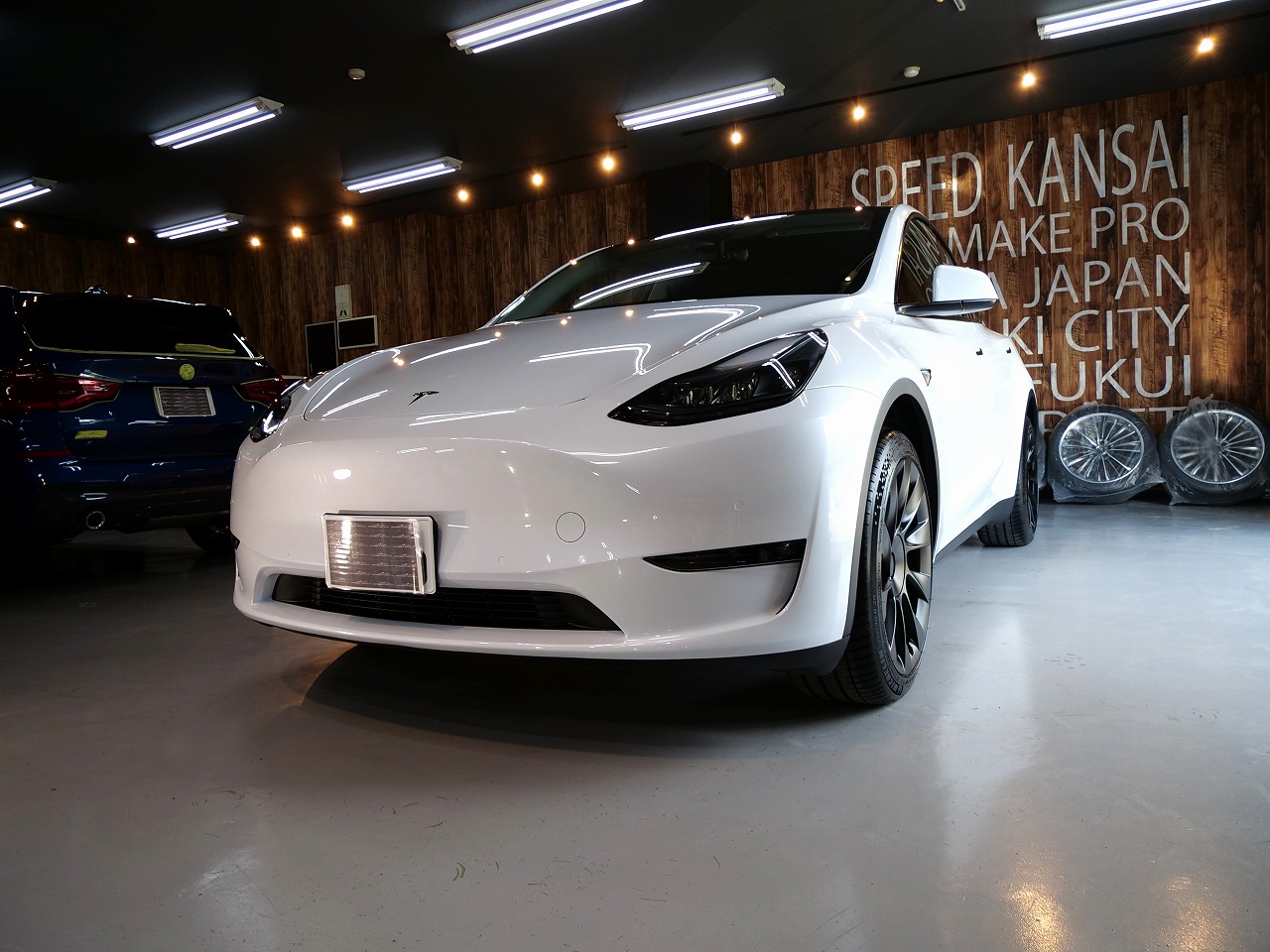大阪府枚方市より人気のテスラ モデルYのご入庫です!ボディカラーはパールホワイトマルチコート!