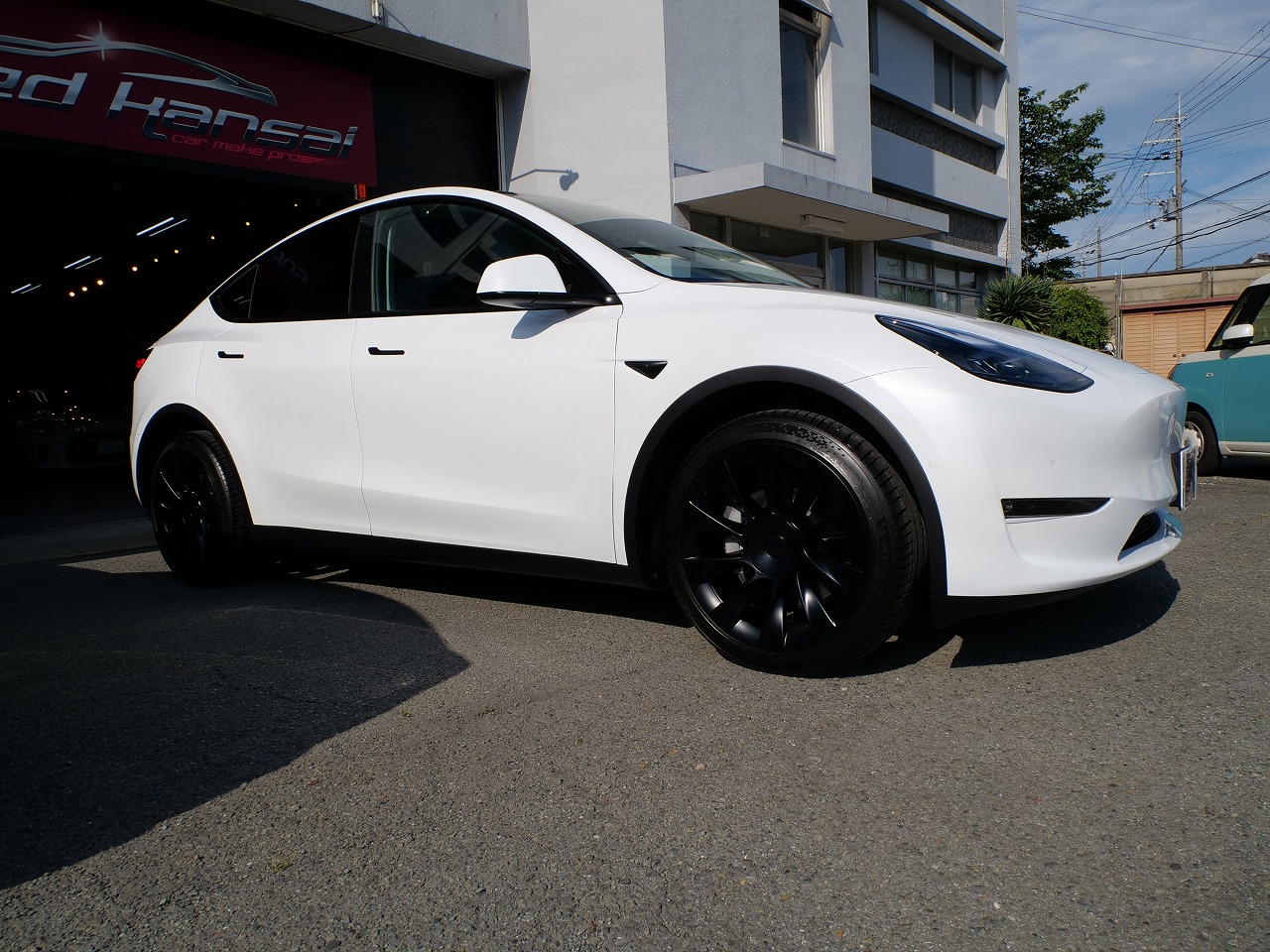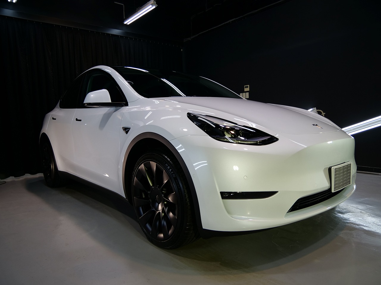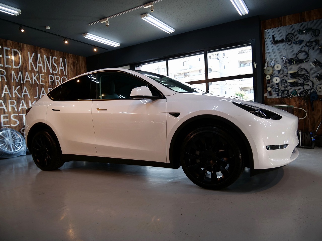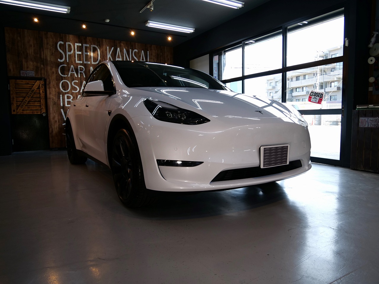 大阪府枚方市より人気のテスラ モデルYのご入庫です!ボディカラーはパールホワイトマルチコート!