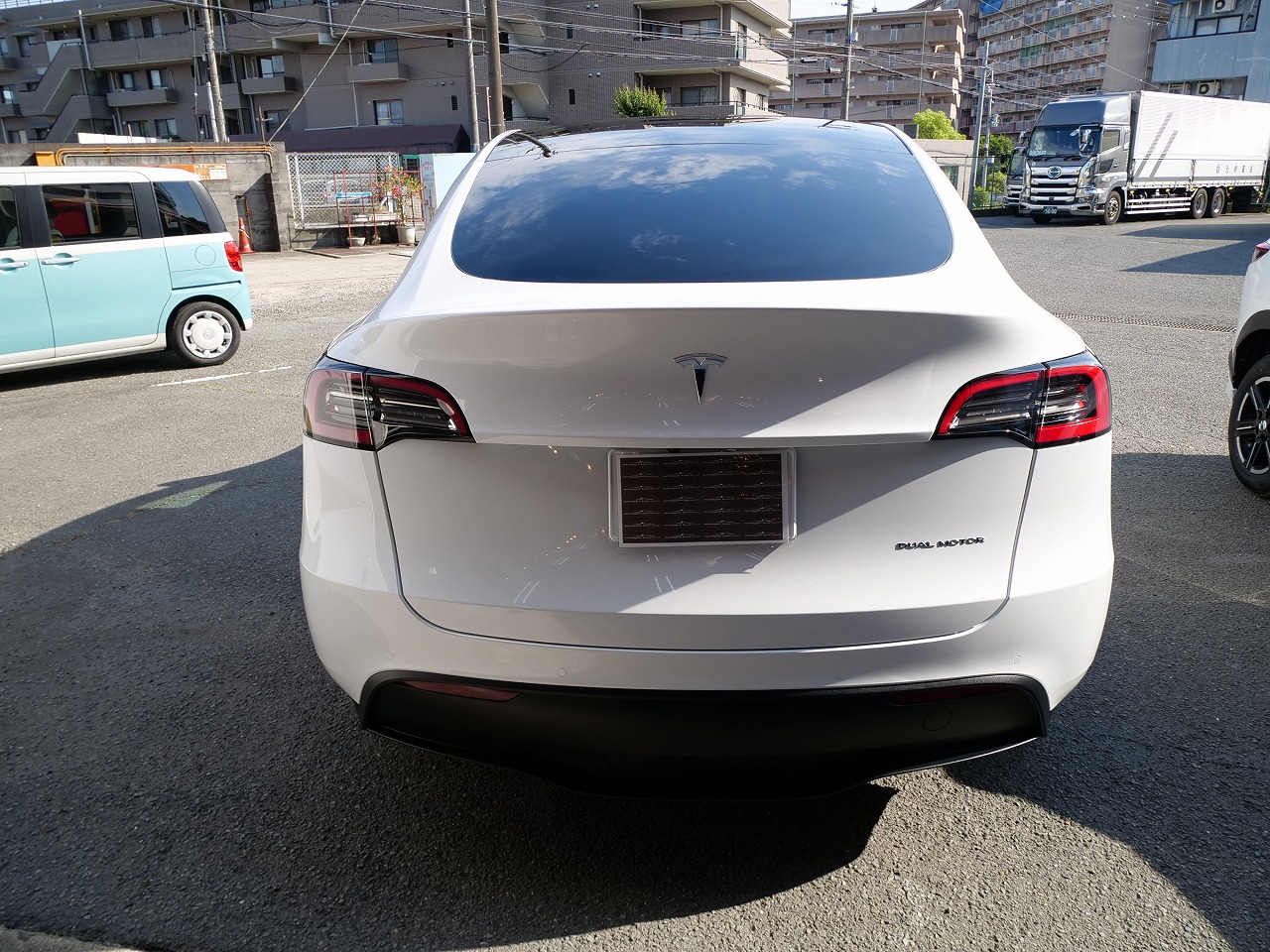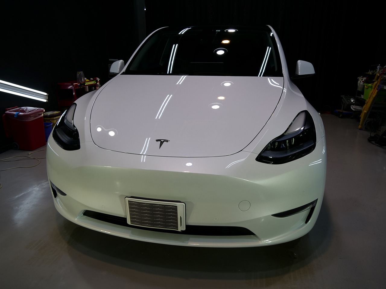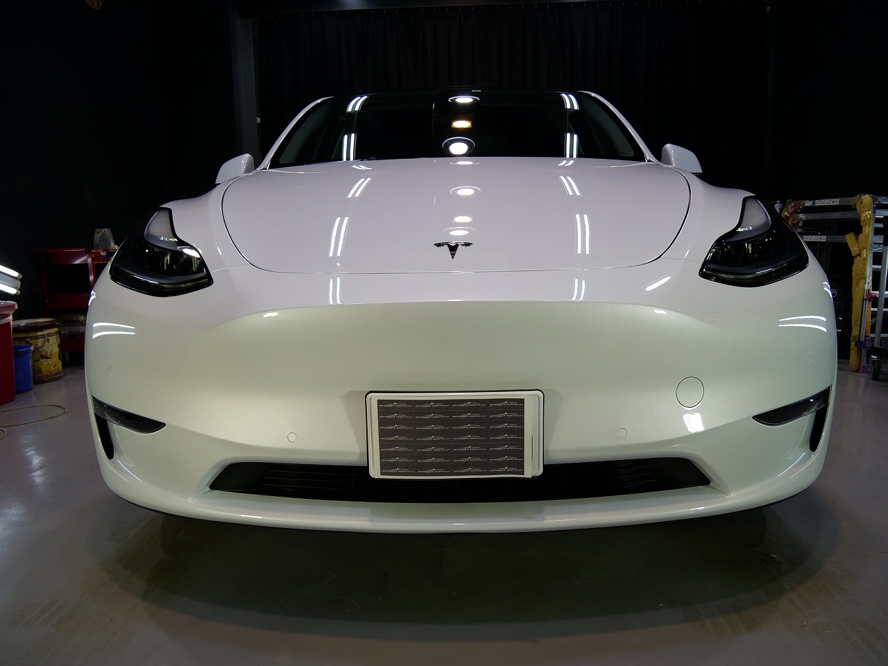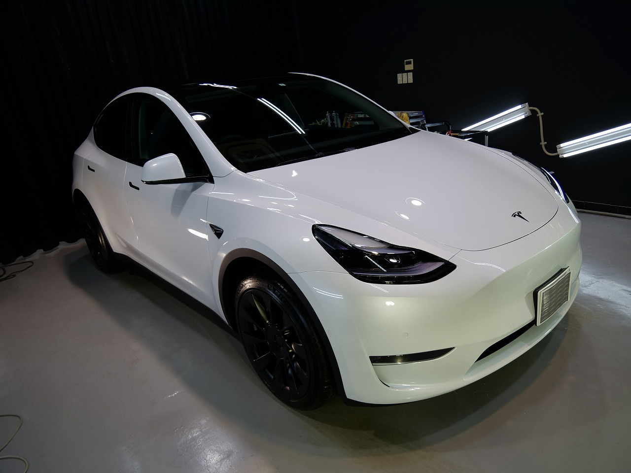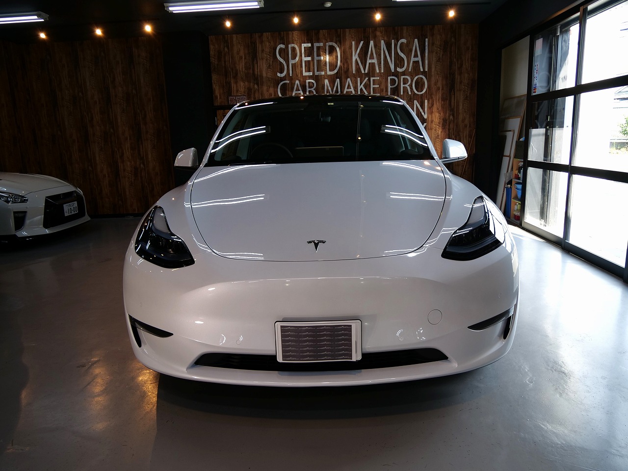 大阪府枚方市より人気のテスラ モデルYのご入庫です!ボディカラーはパールホワイトマルチコート!