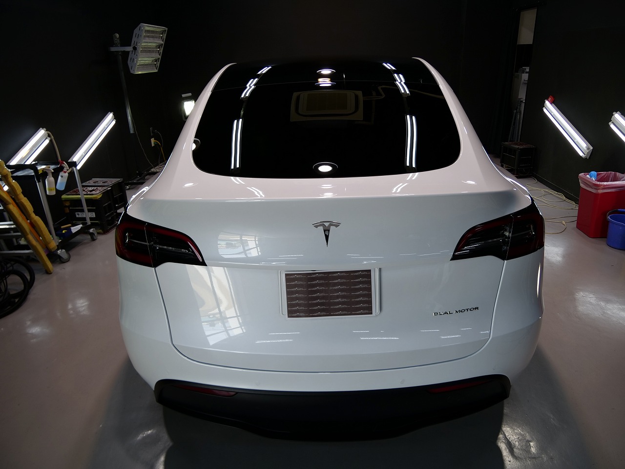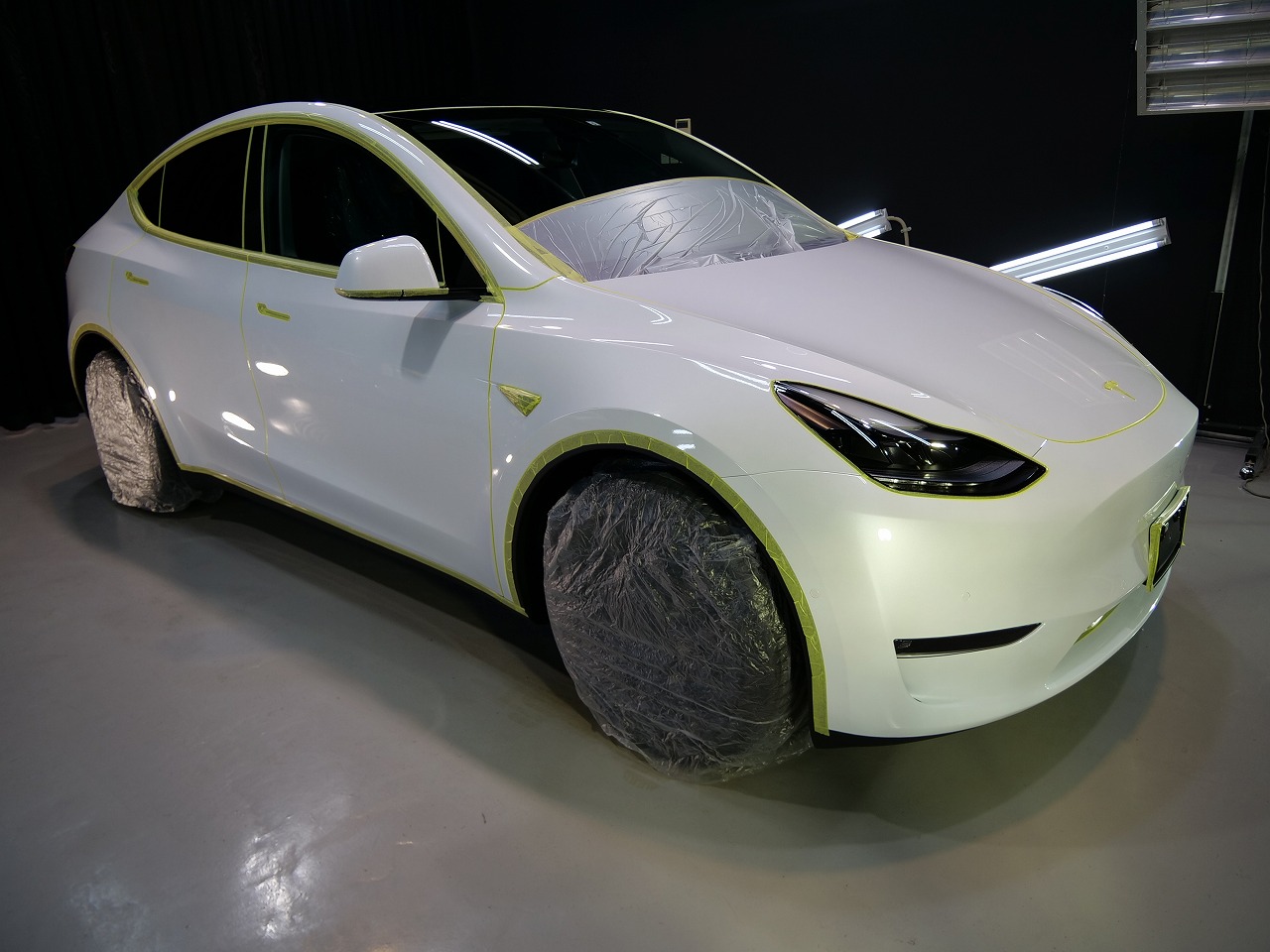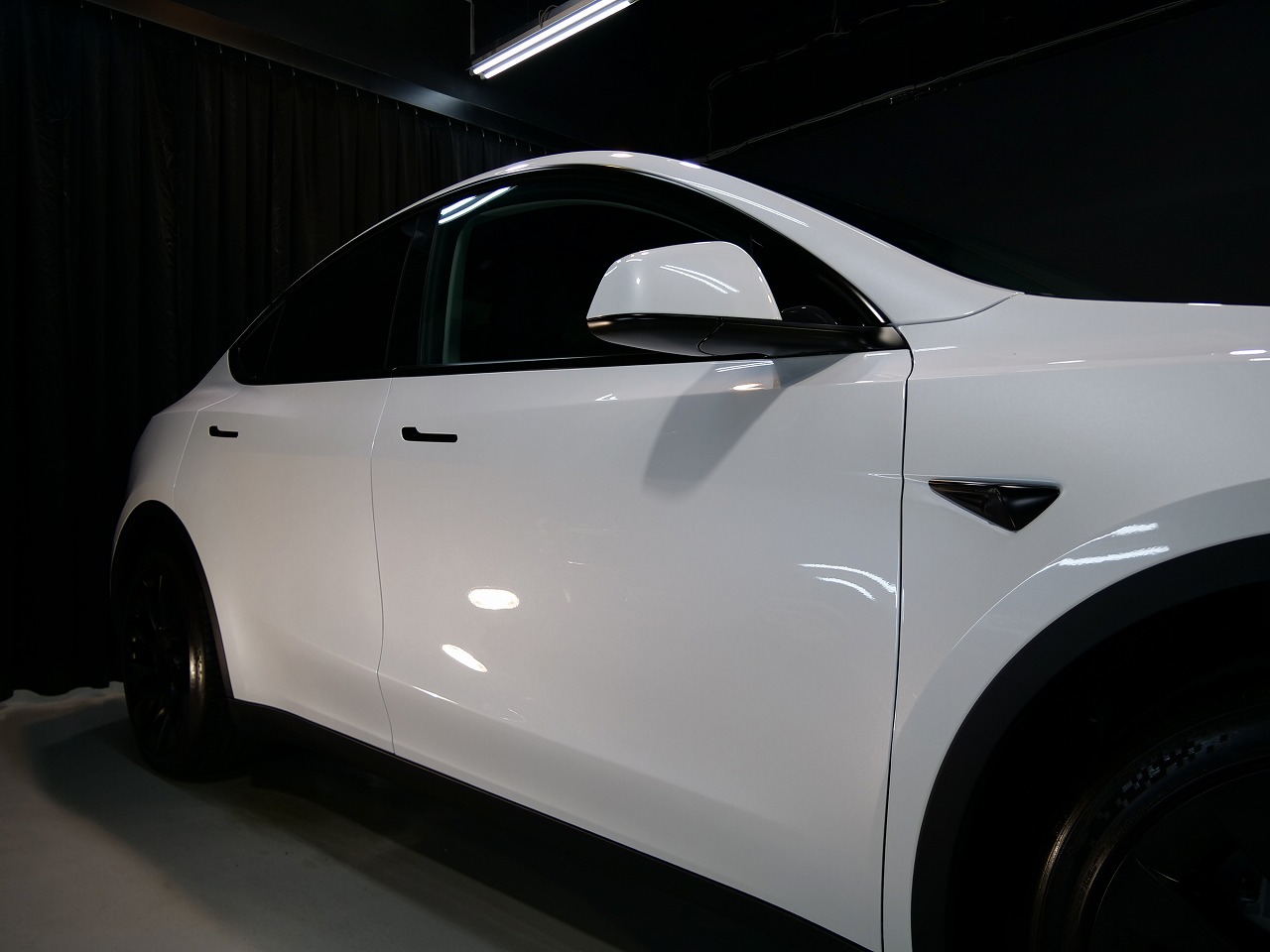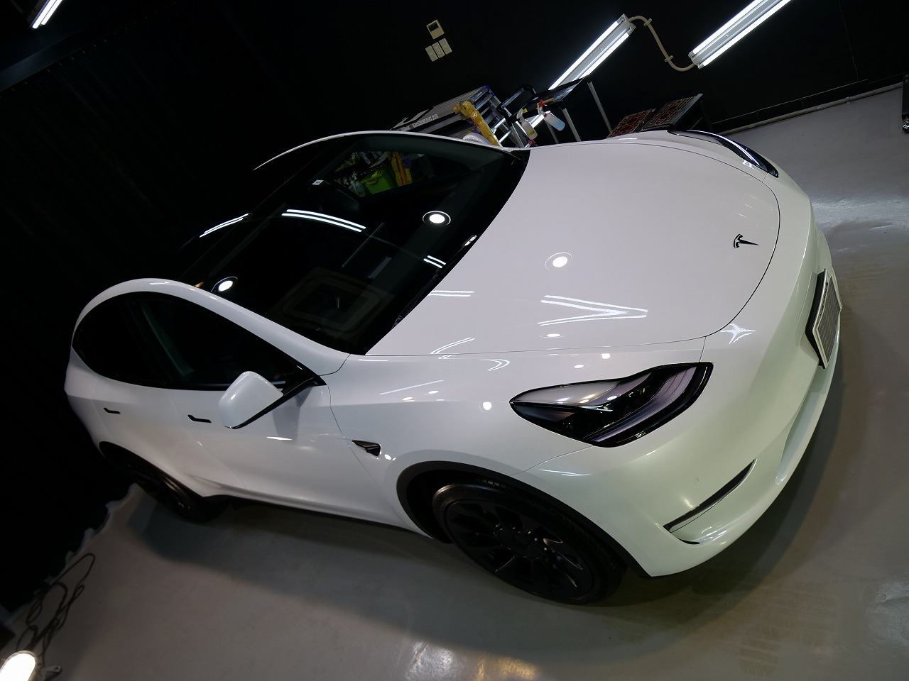 大阪府枚方市より人気のテスラ モデルYのご入庫です!ボディカラーはパールホワイトマルチコート!