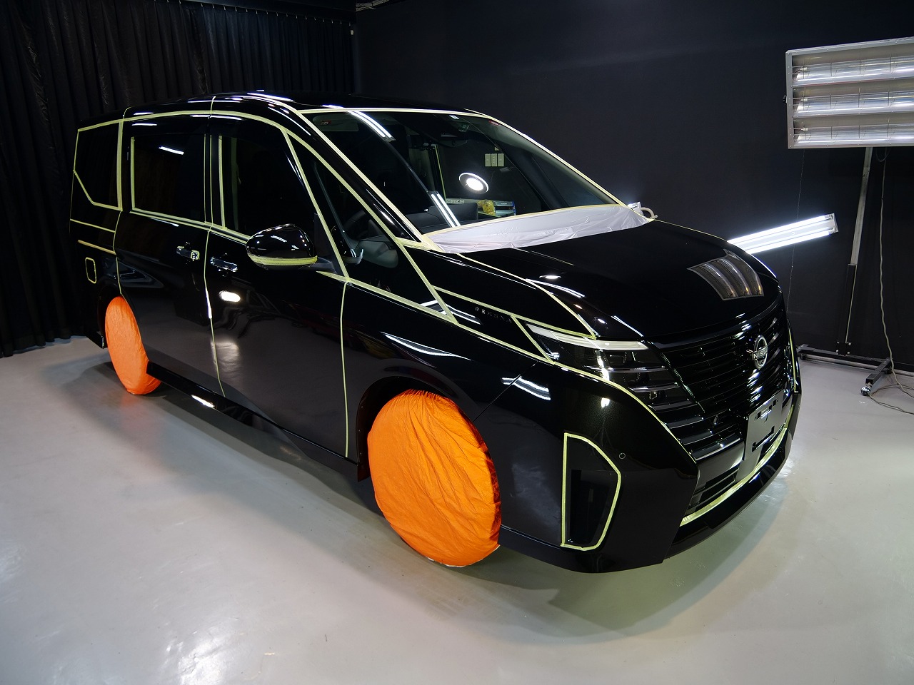 ブラック!施工はボディにはファインラボセラミックコーティング2層/ホイールコーティング/フロント