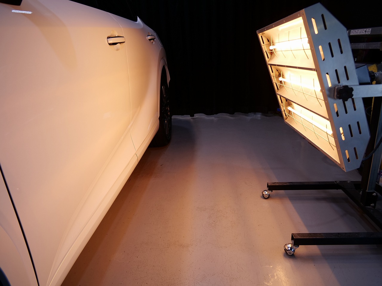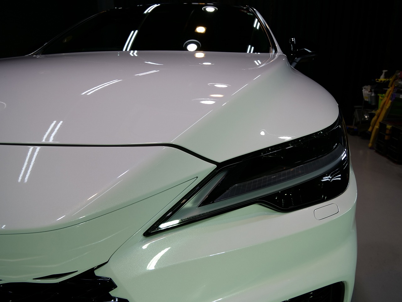 カラーはホワイトノーヴァガラスフレーク!施工はボディにはファインラボセラミックコーティング2層