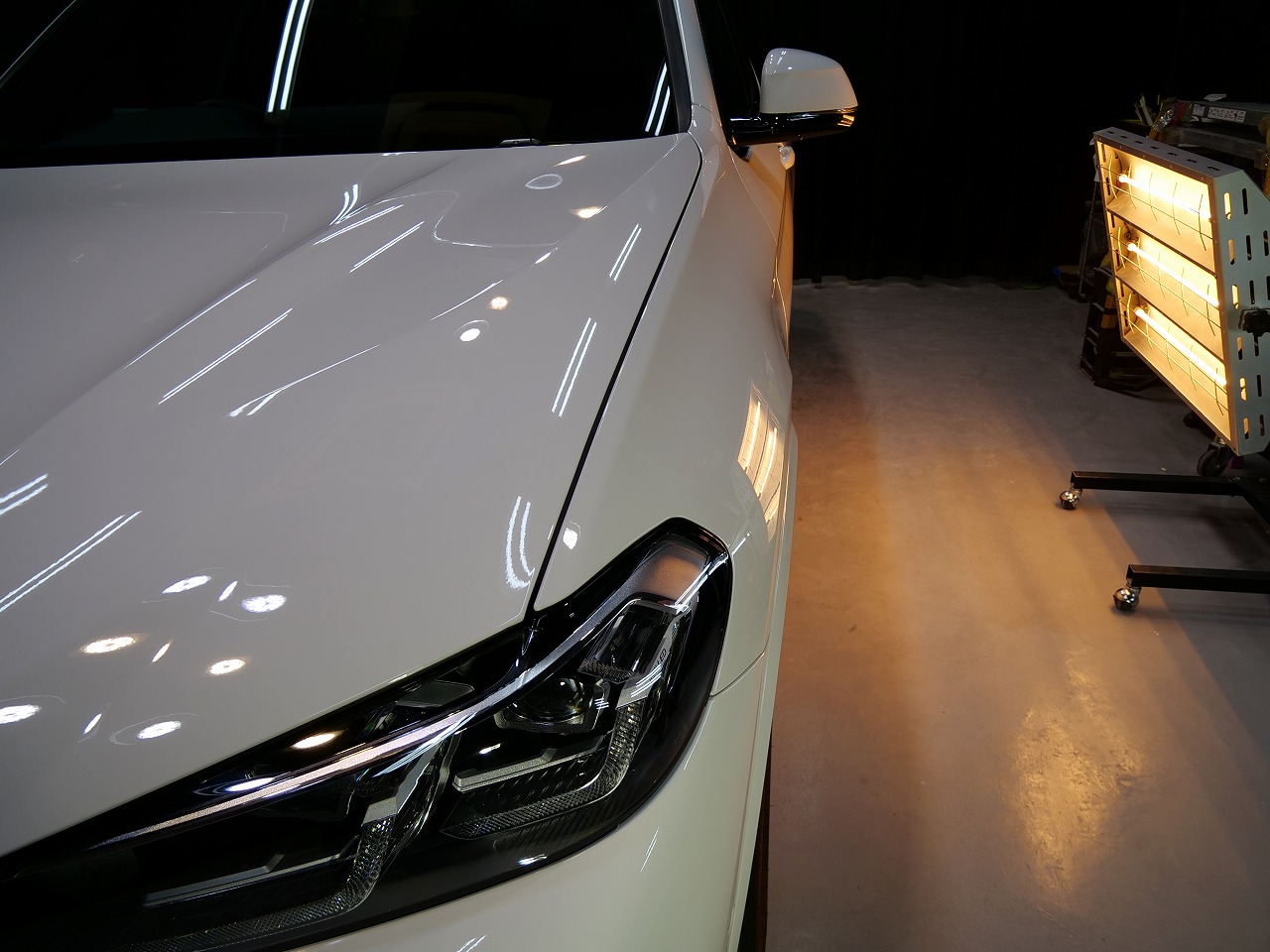 アルピンホワイト。施工はボディにはクォーツガラスコーティング/ホイールコーティング/ウィンドウ