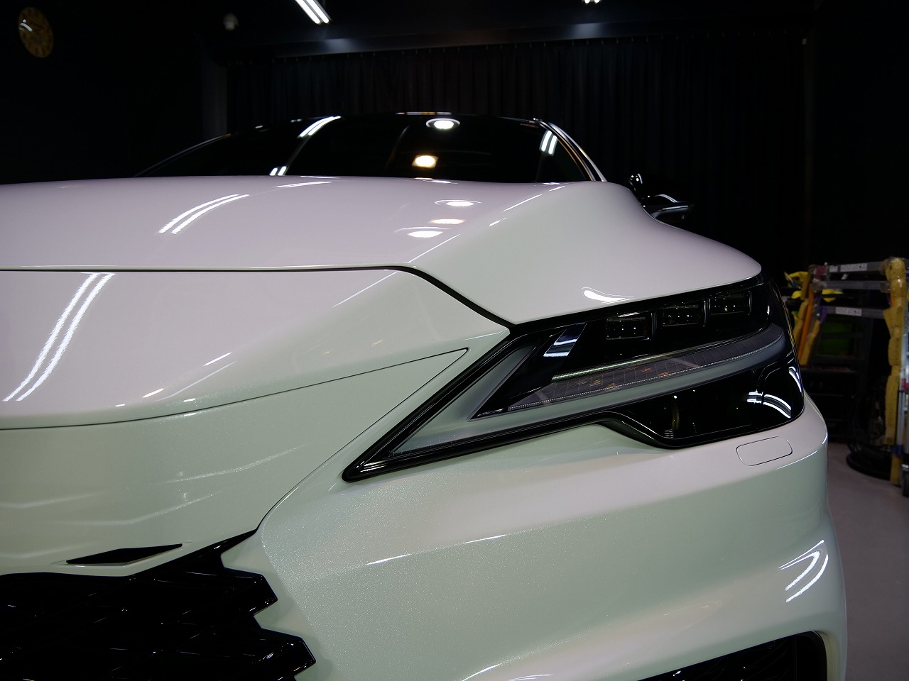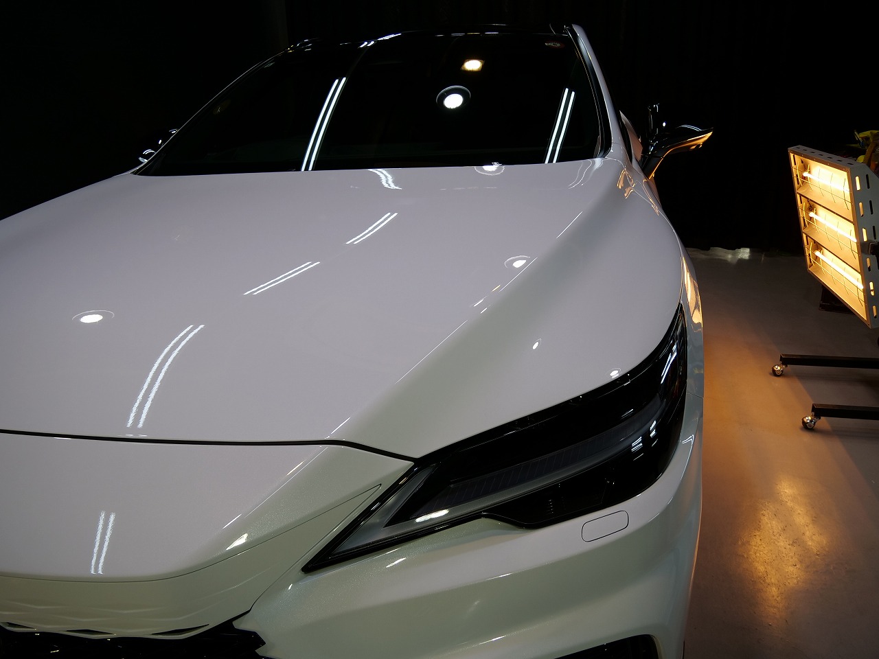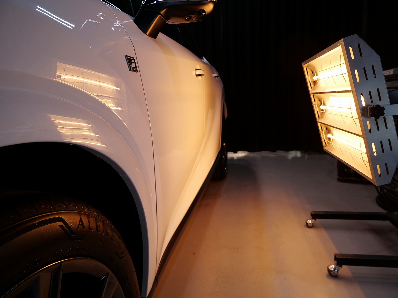 ホワイトノーヴァガラスフレーク。施工はボディにはファインラボセラミックコーティング2層/ホイール