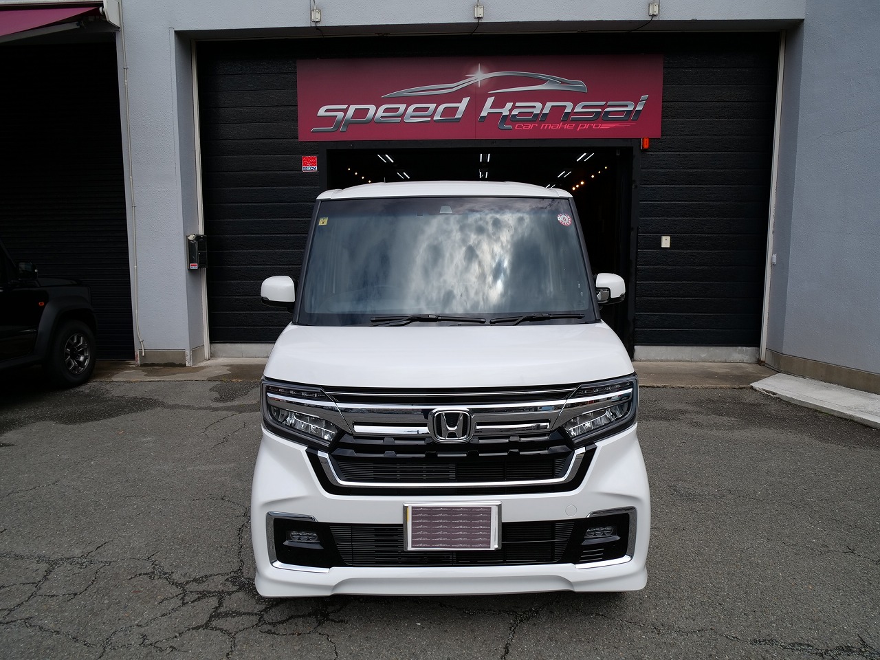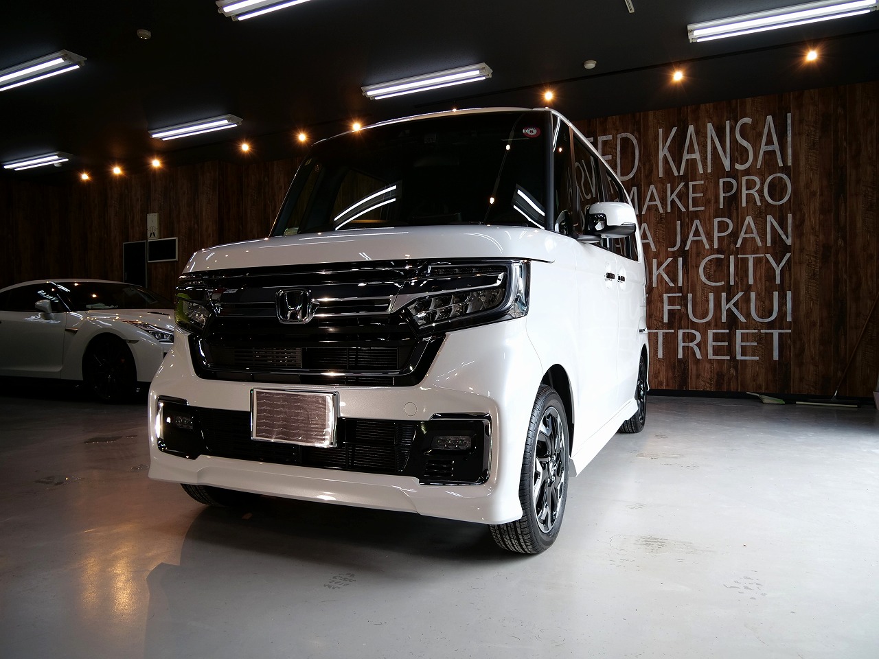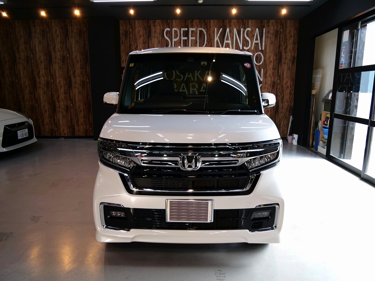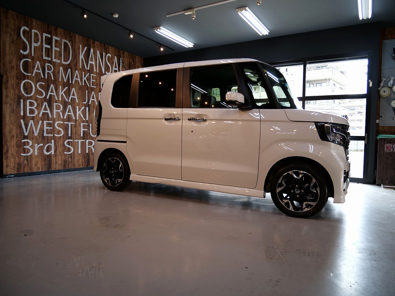 大阪府茨木市より当店のリピーター様がホンダN-BOX カスタムをお持ち下さいました。ボディカラーは