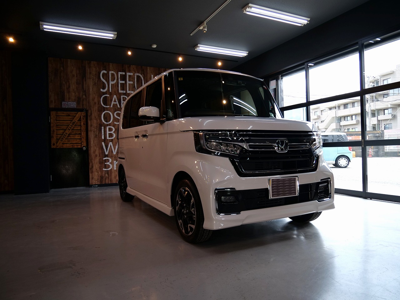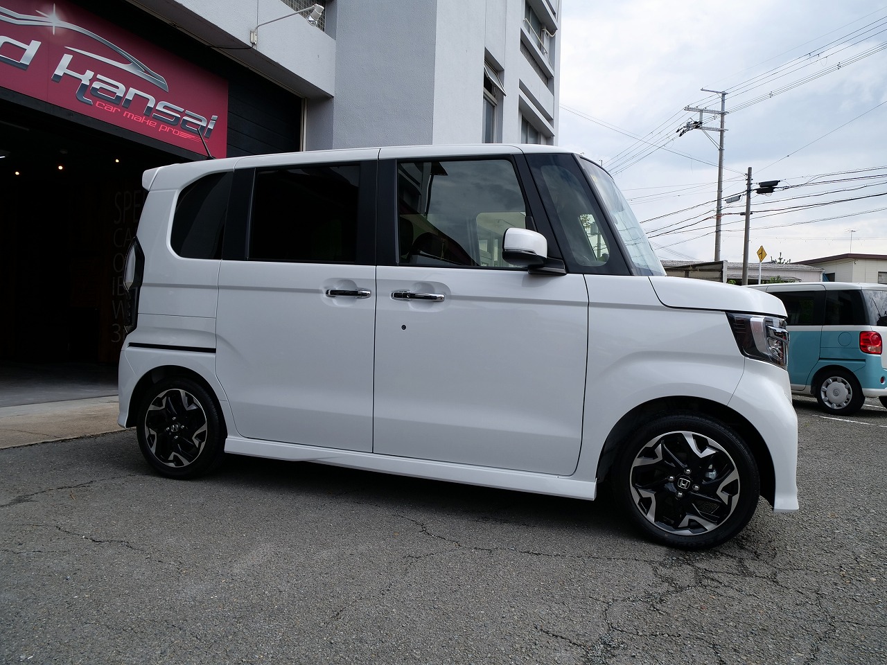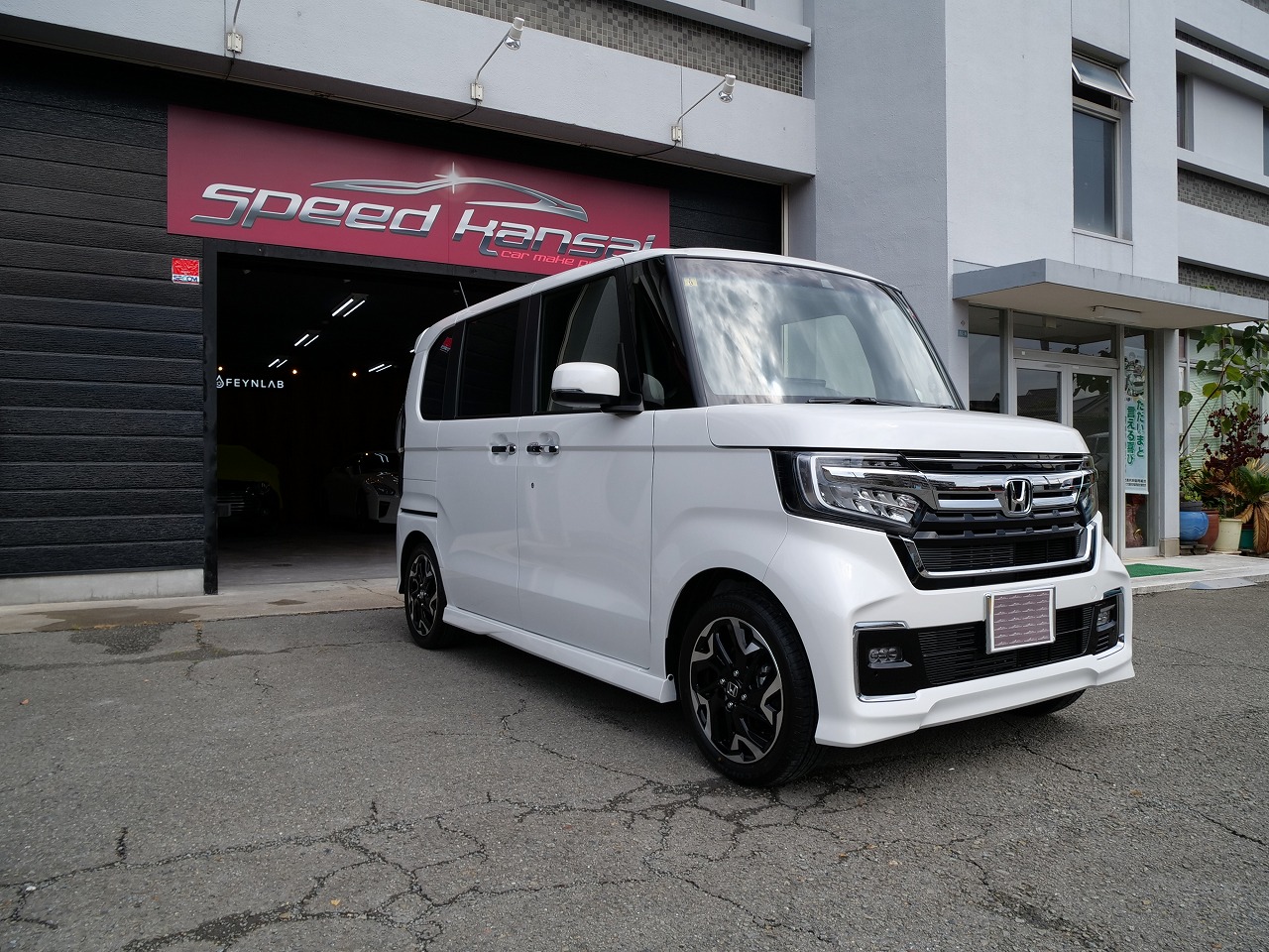 大阪府茨木市より当店のリピーター様がホンダN-BOX カスタムをお持ち下さいました。ボディカラーは