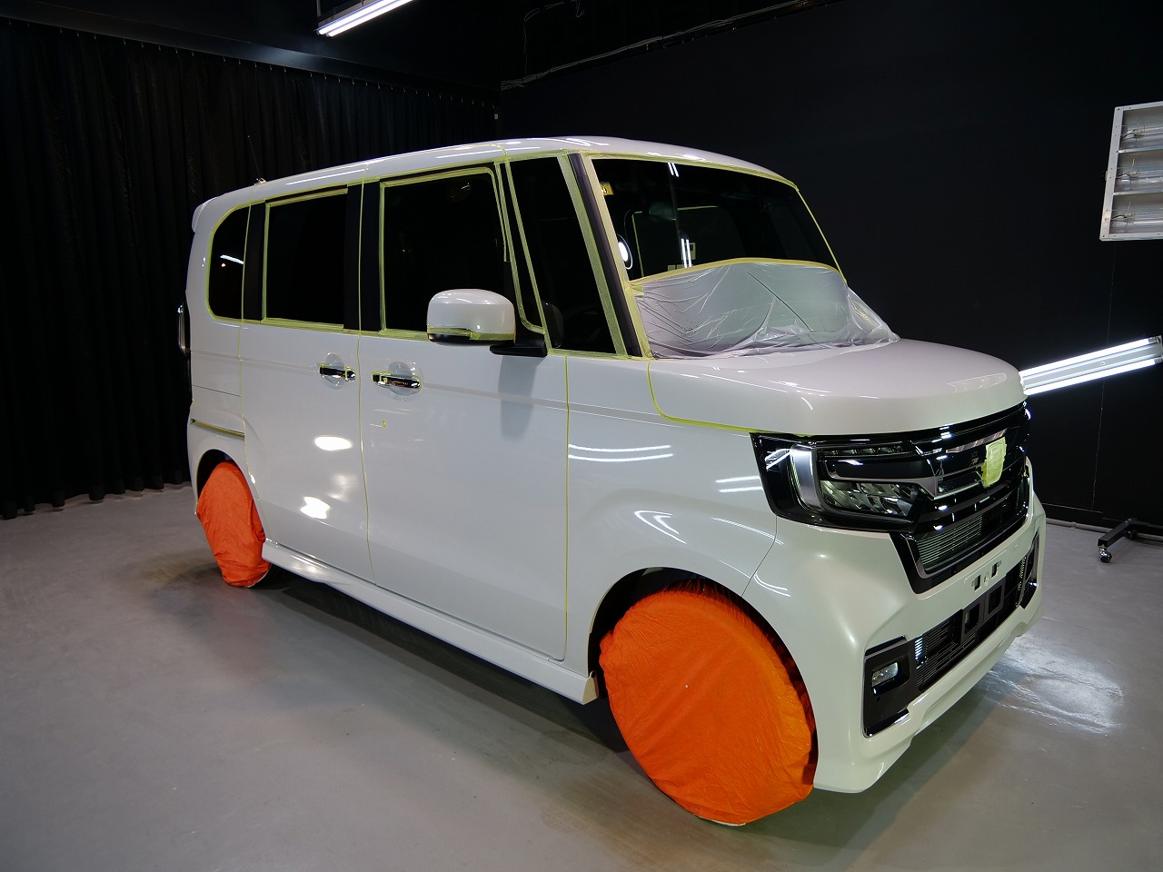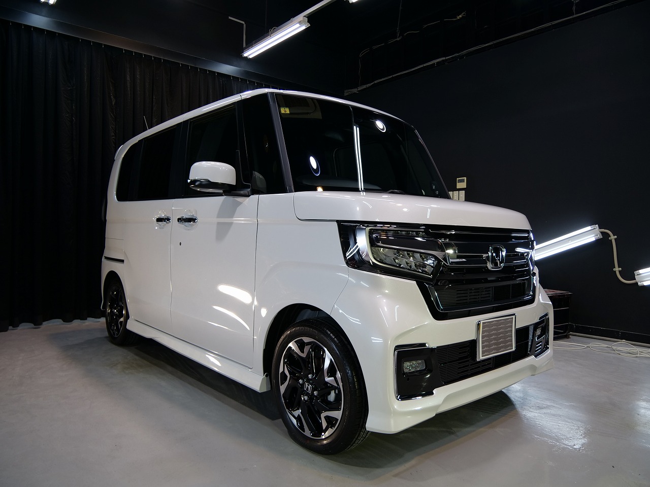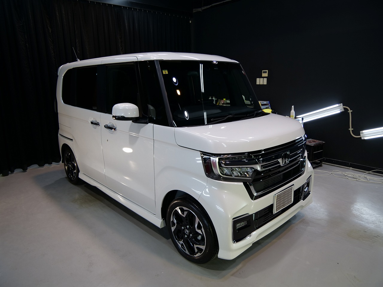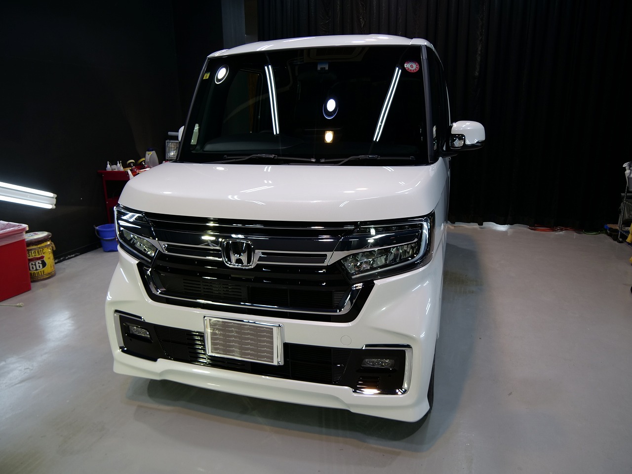 大阪府茨木市より当店のリピーター様がホンダN-BOX カスタムをお持ち下さいました。ボディカラーは