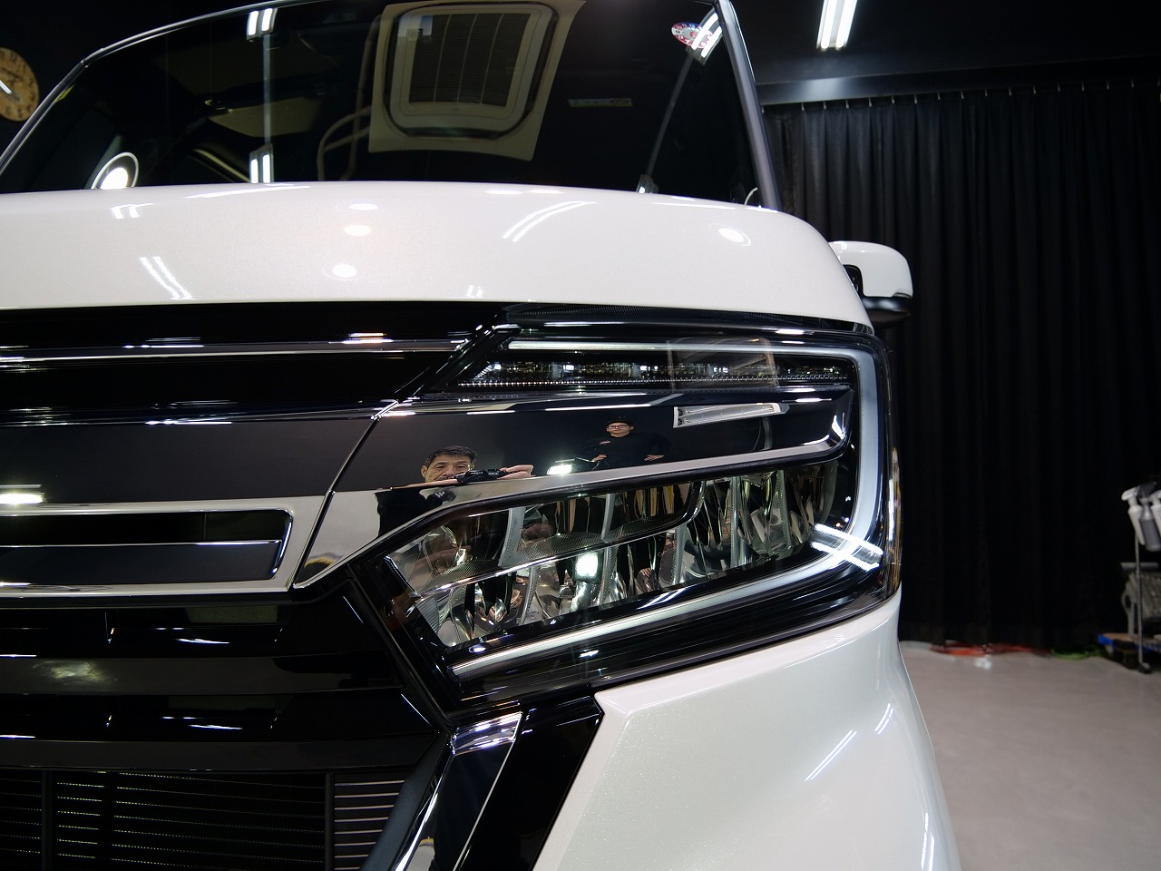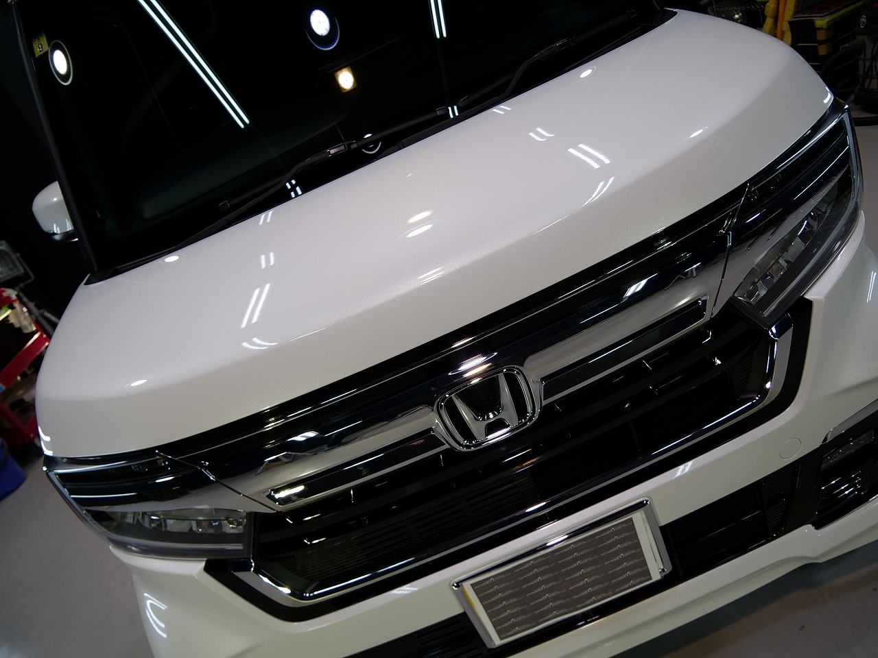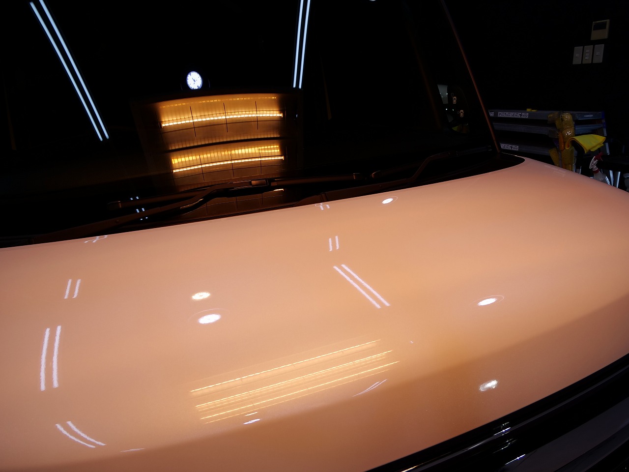 プラチナホワイトパール。施工はボディにはクォーツガラスコーティング/ホイールコーティング/未塗装