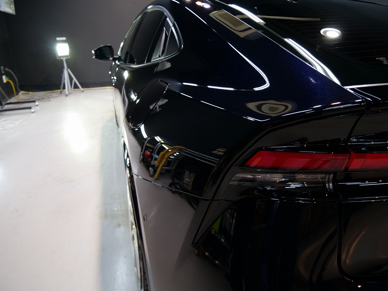 カラーはアティチュードブラックマイカ。施工はボディにはセラミックトリプルコート+1/ホイール