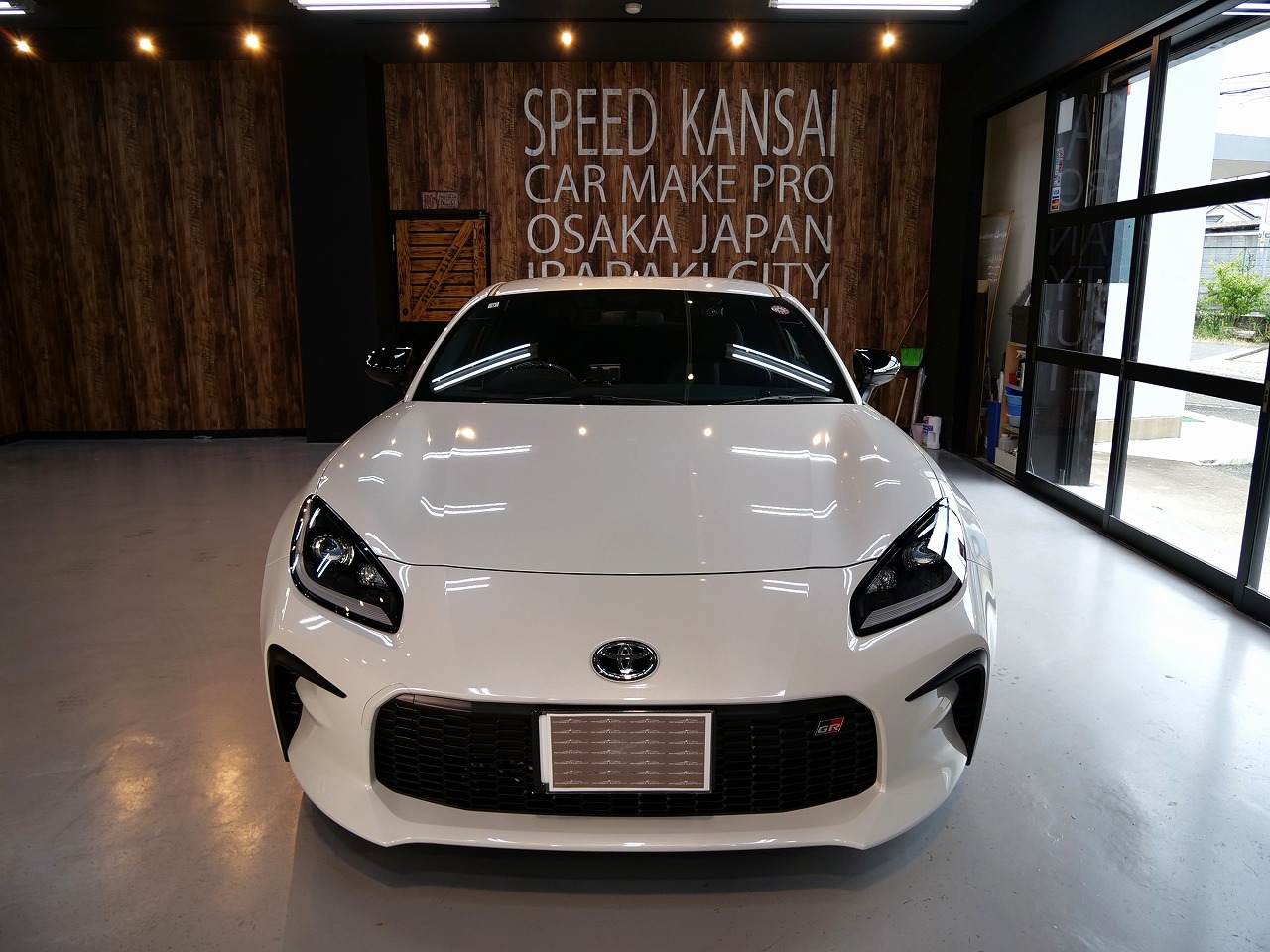 大阪府枚方市よりトヨタGR86のご入庫です!ボディカラーはクリスタルホワイトパール。施工はボディ