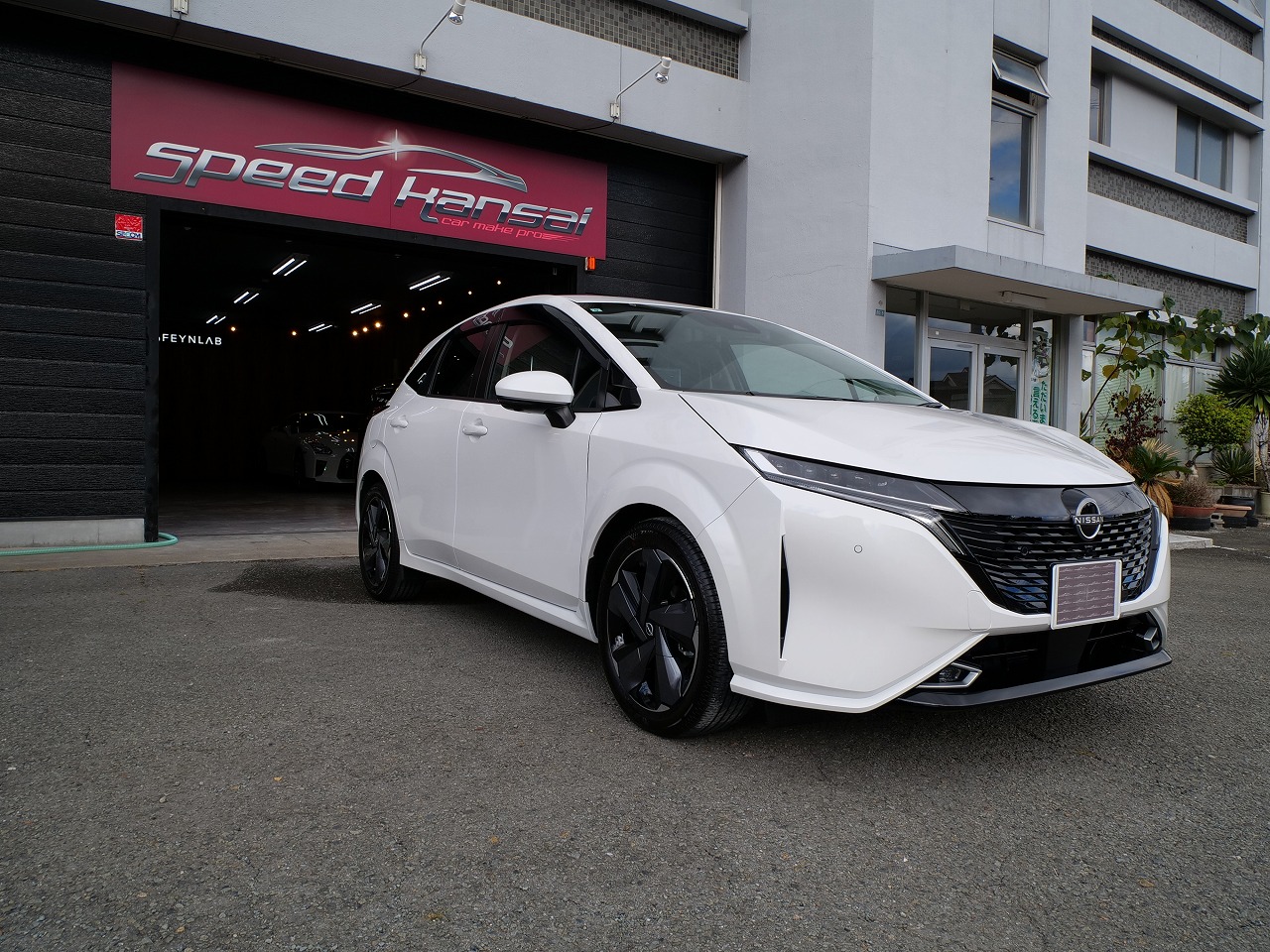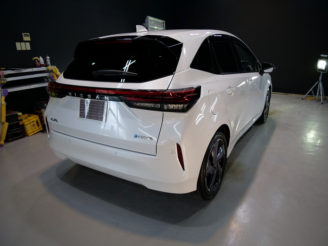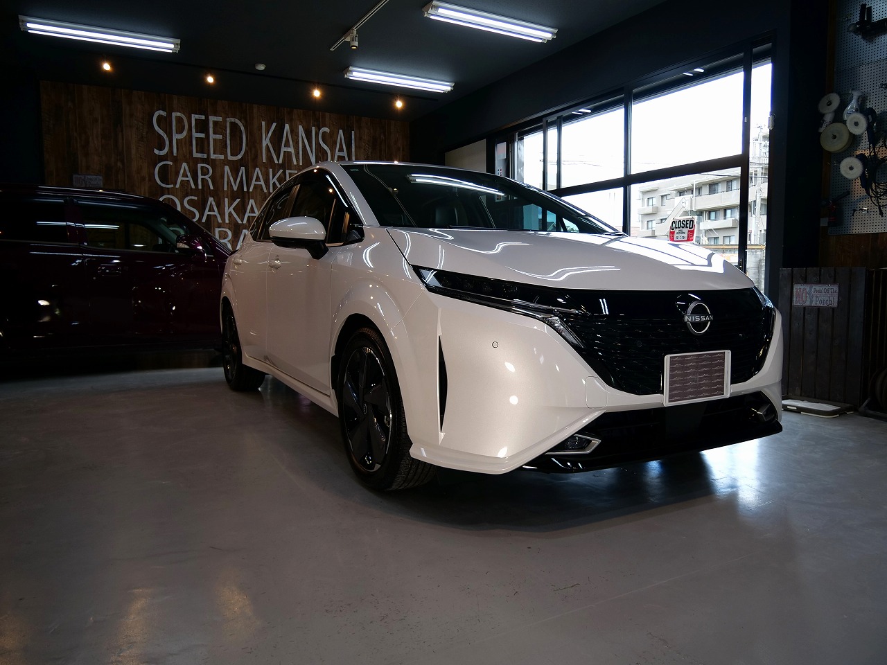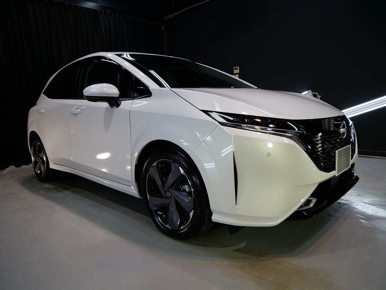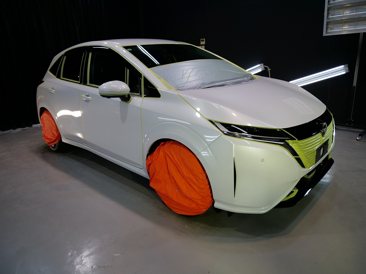 大阪府高槻市より日産オーラのご入庫です!ボディカラーはピュアホワイトパール。施工はボディには