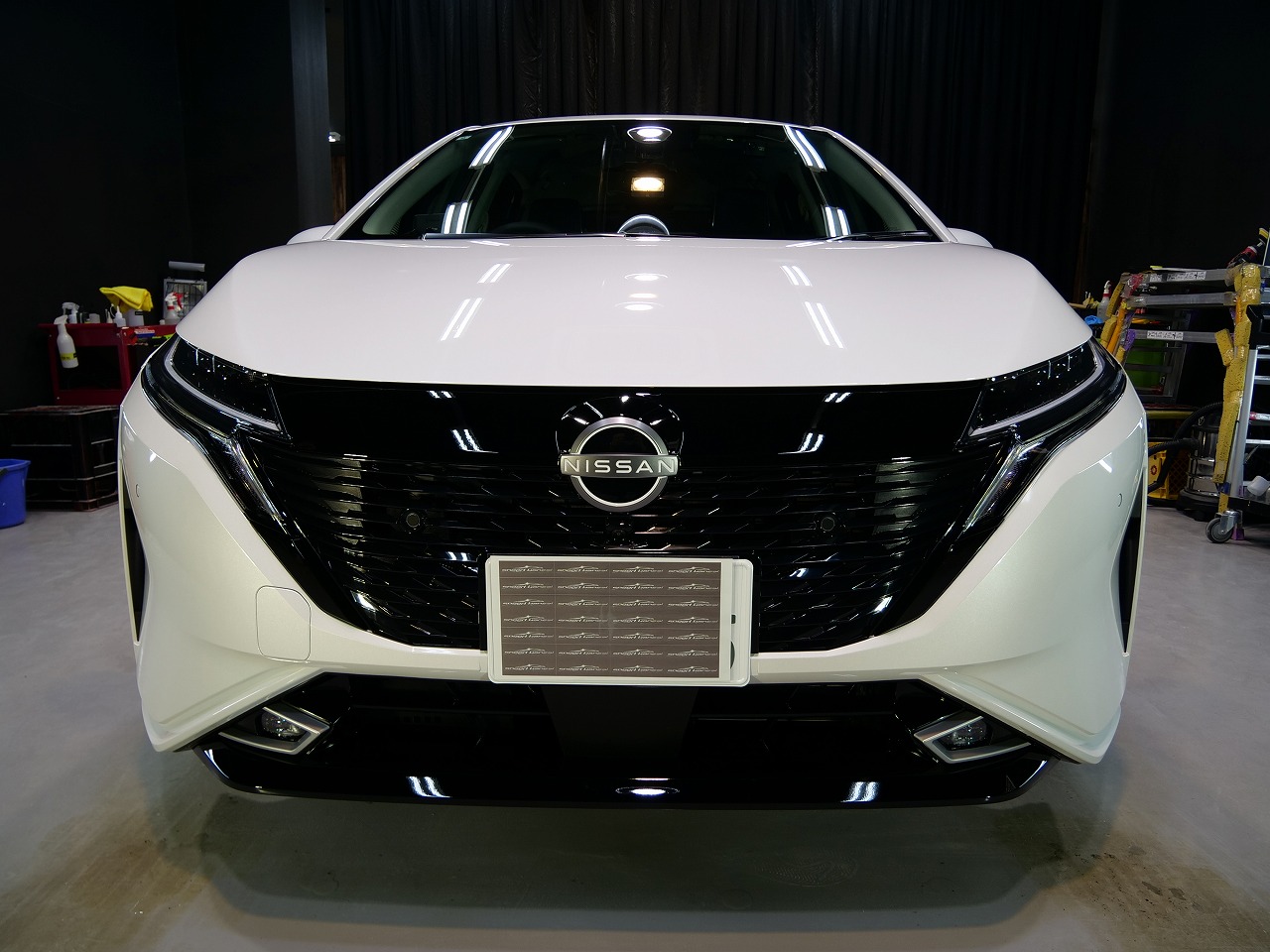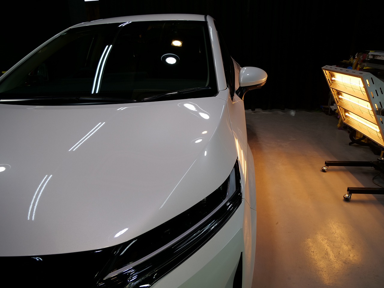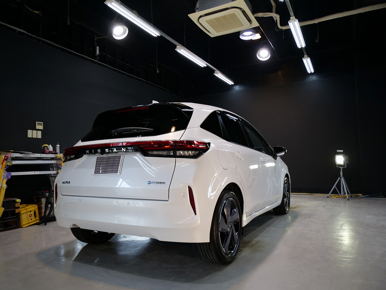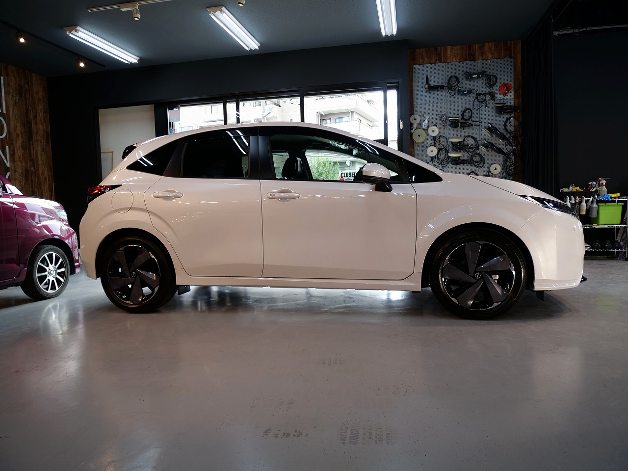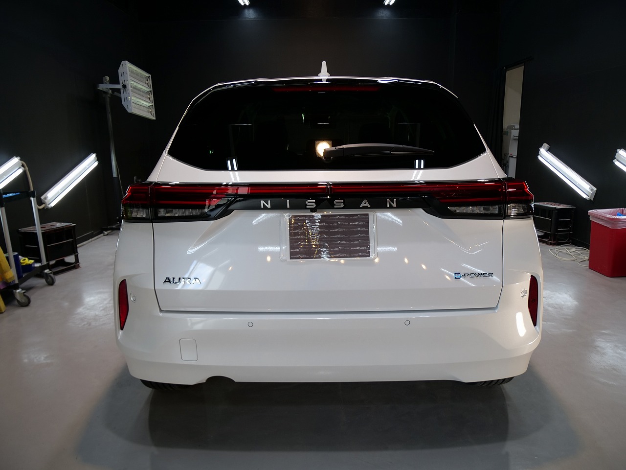 大阪府高槻市より日産オーラのご入庫です!ボディカラーはピュアホワイトパール。施工はボディには