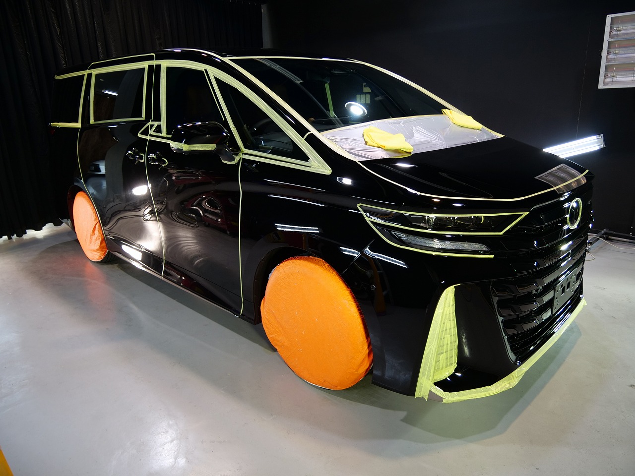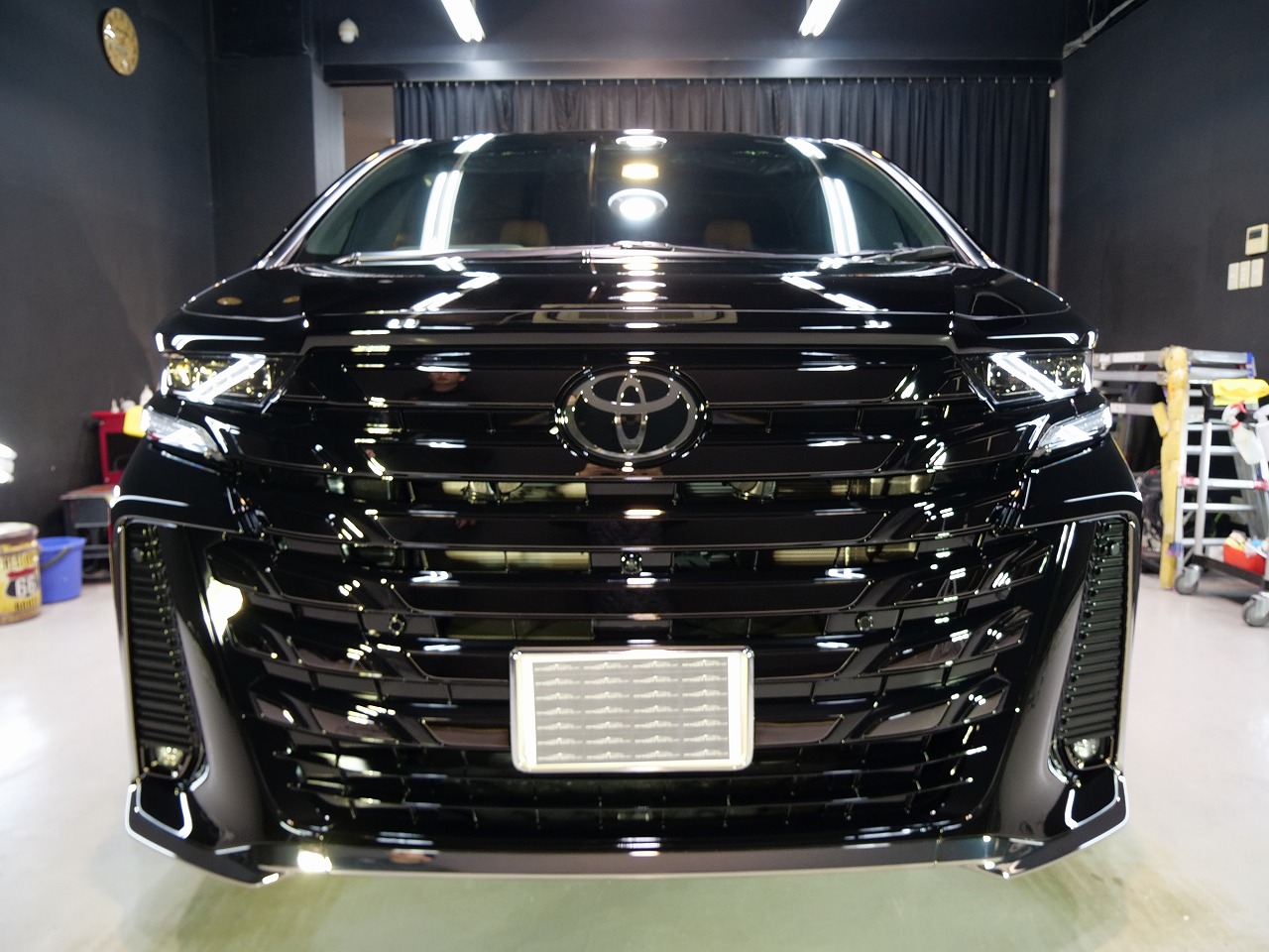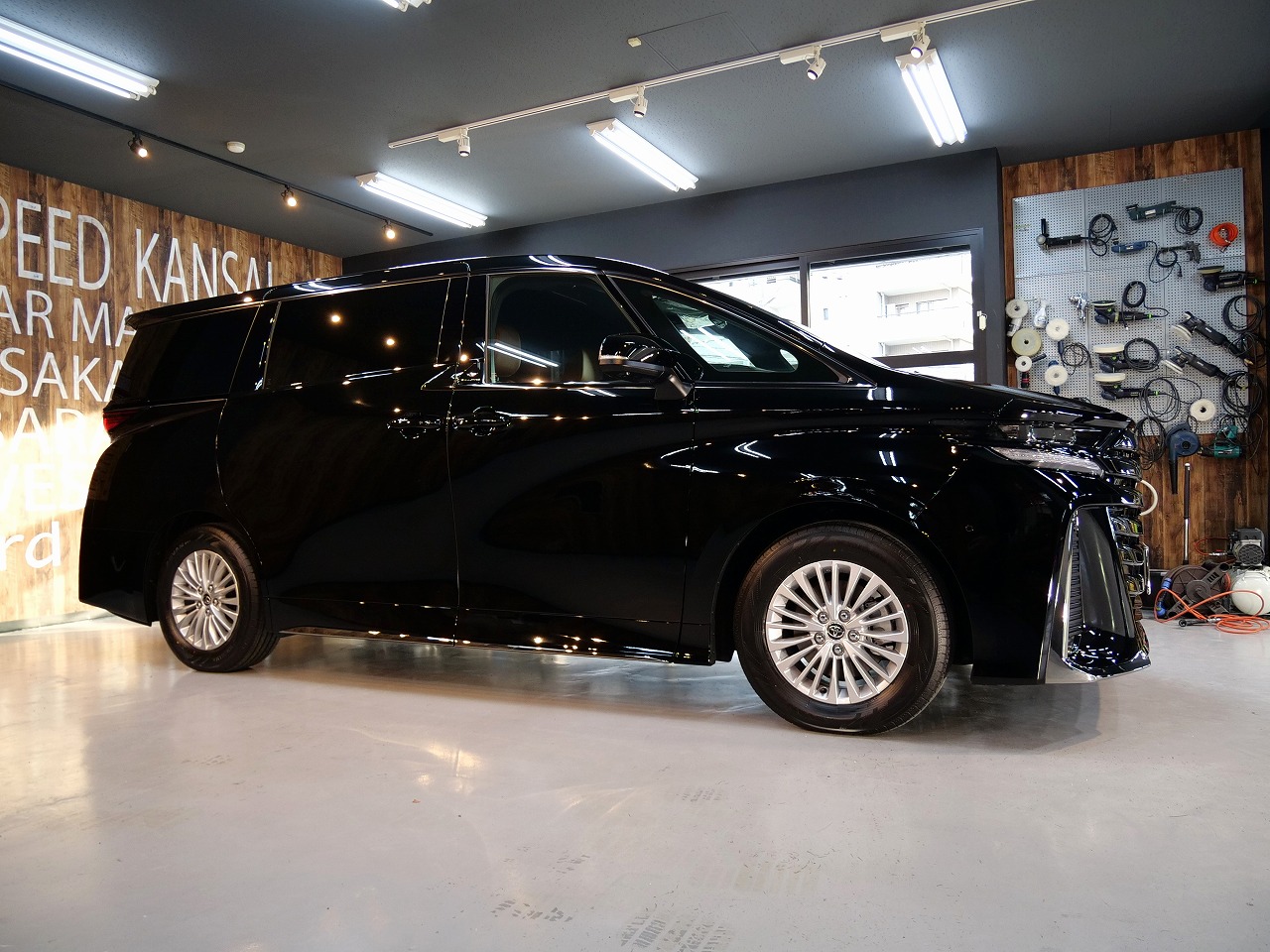 大阪府高槻市より新型のトヨタ ヴェルファイア40系のご入庫です!ボディカラーはブラック202。施工は