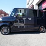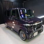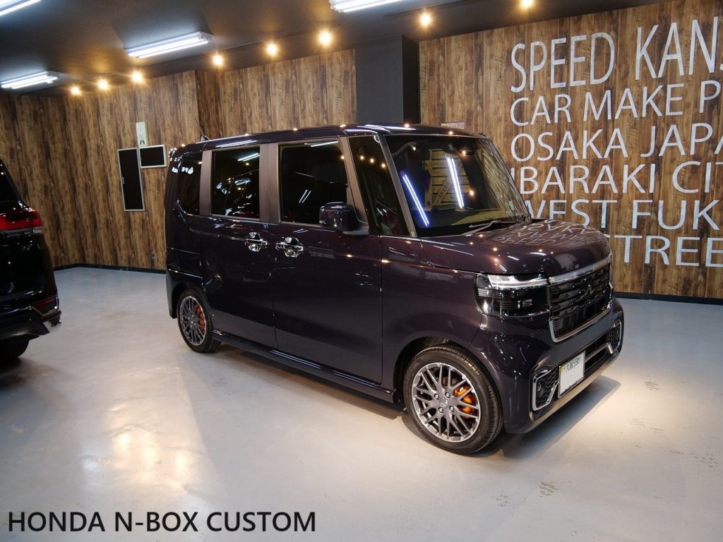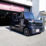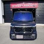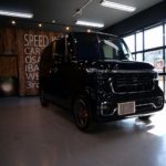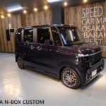 大阪府茨木市よりホンダN-BOXカスタムのご入庫です!ボディカラーはトワイライトミストブラック