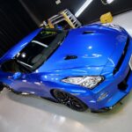ワンガンブルー。施工はボディにはクォーツガラスコーティング/ホイールコーティング/未塗装樹脂コーテ