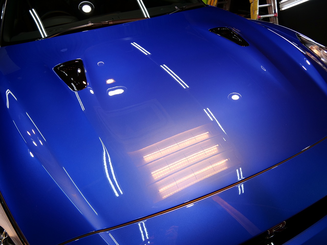 ワンガンブルー。施工はボディにはクォーツガラスコーティング/ホイールコーティング/未塗装樹脂コーテ