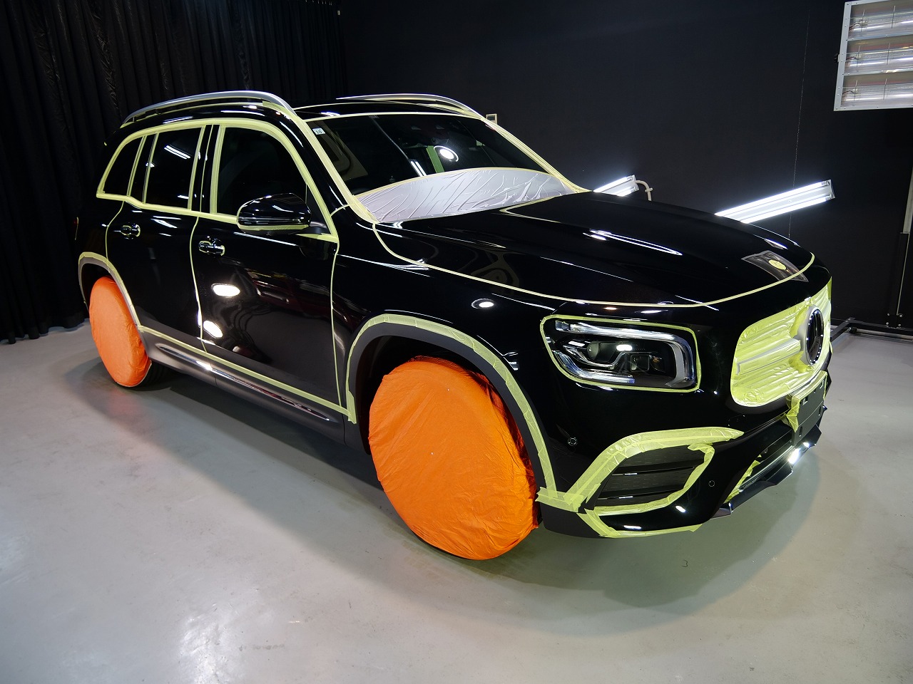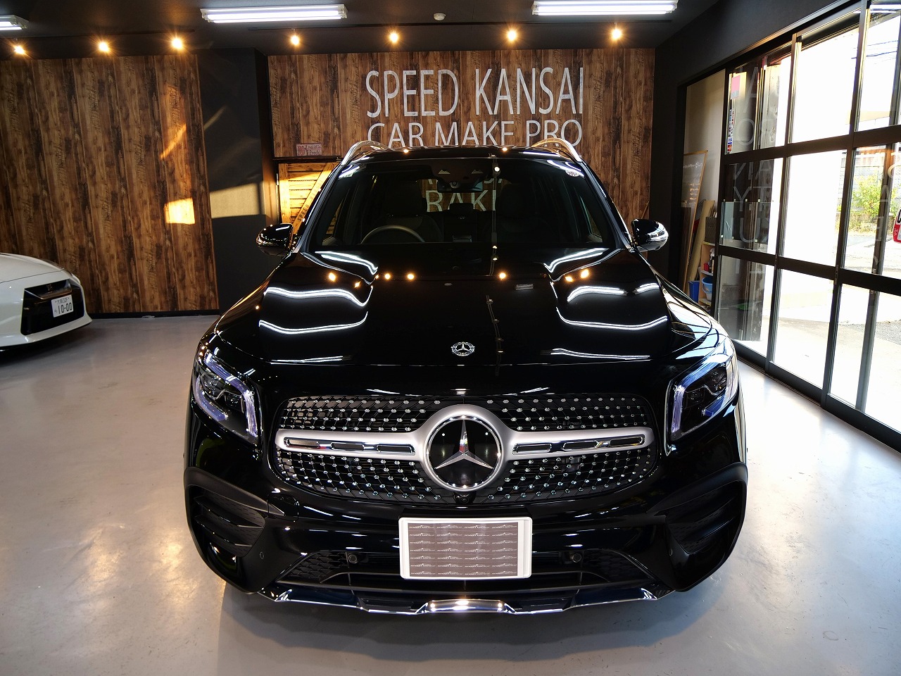 兵庫県西宮市よりメルセデスベンツGLBのご入庫です!ボディカラーはコスモスブラック。施工はボディ