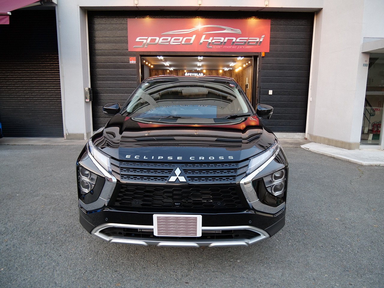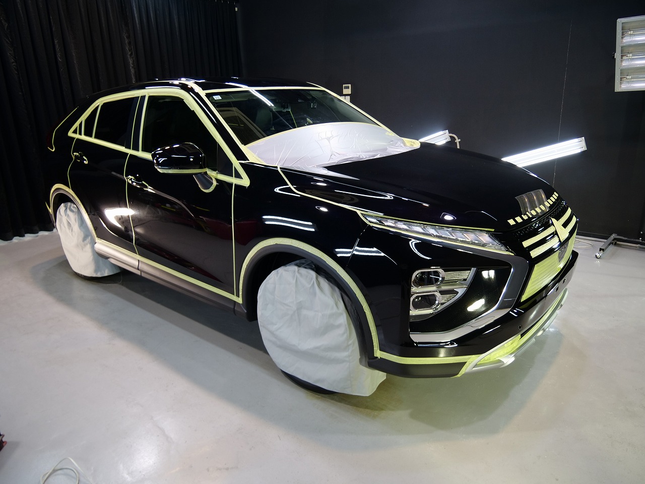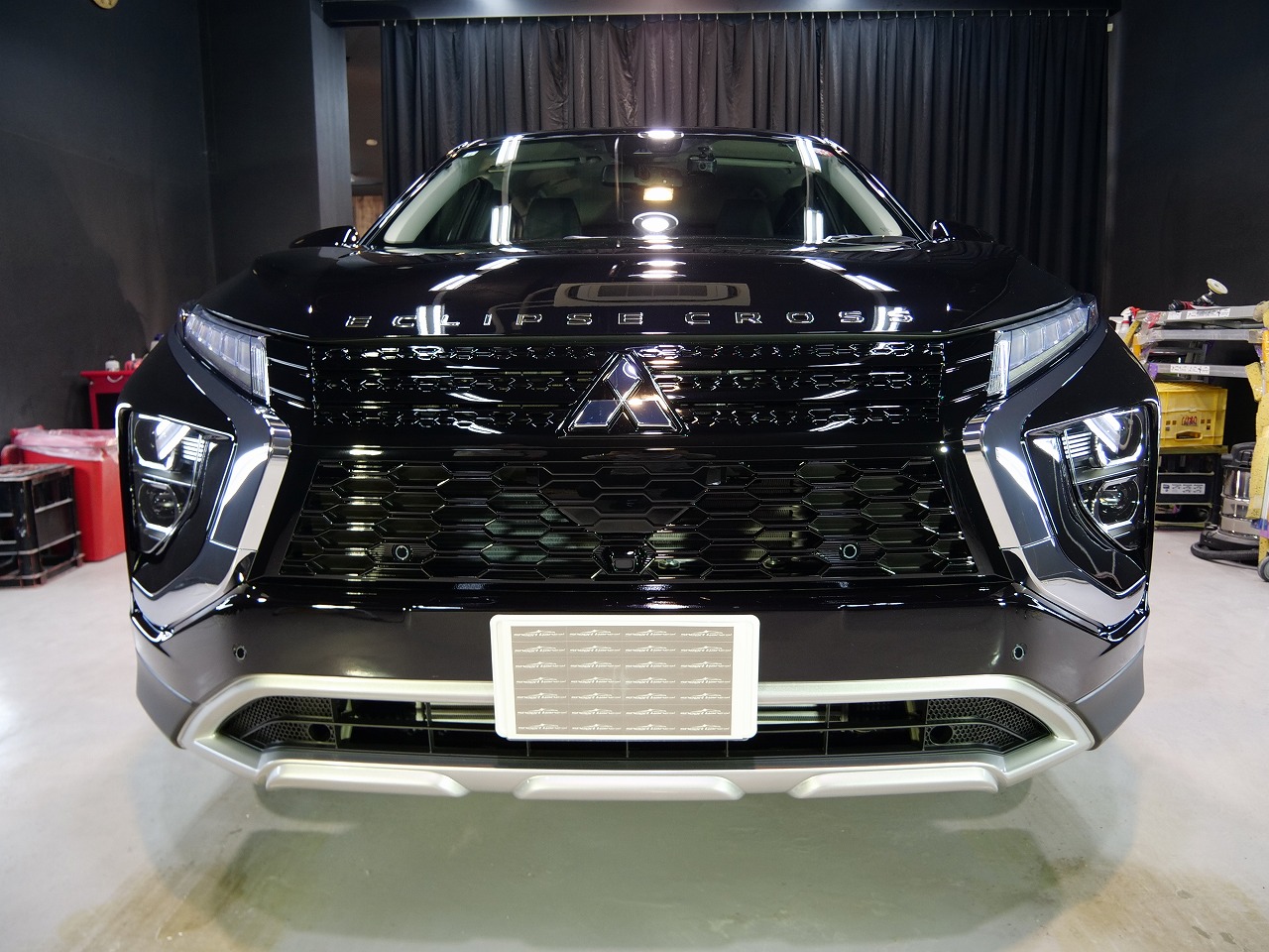 大阪府吹田市より三菱エクリプスクロスのご入庫です!ボディカラーはブラックマイカ。施工はボディには