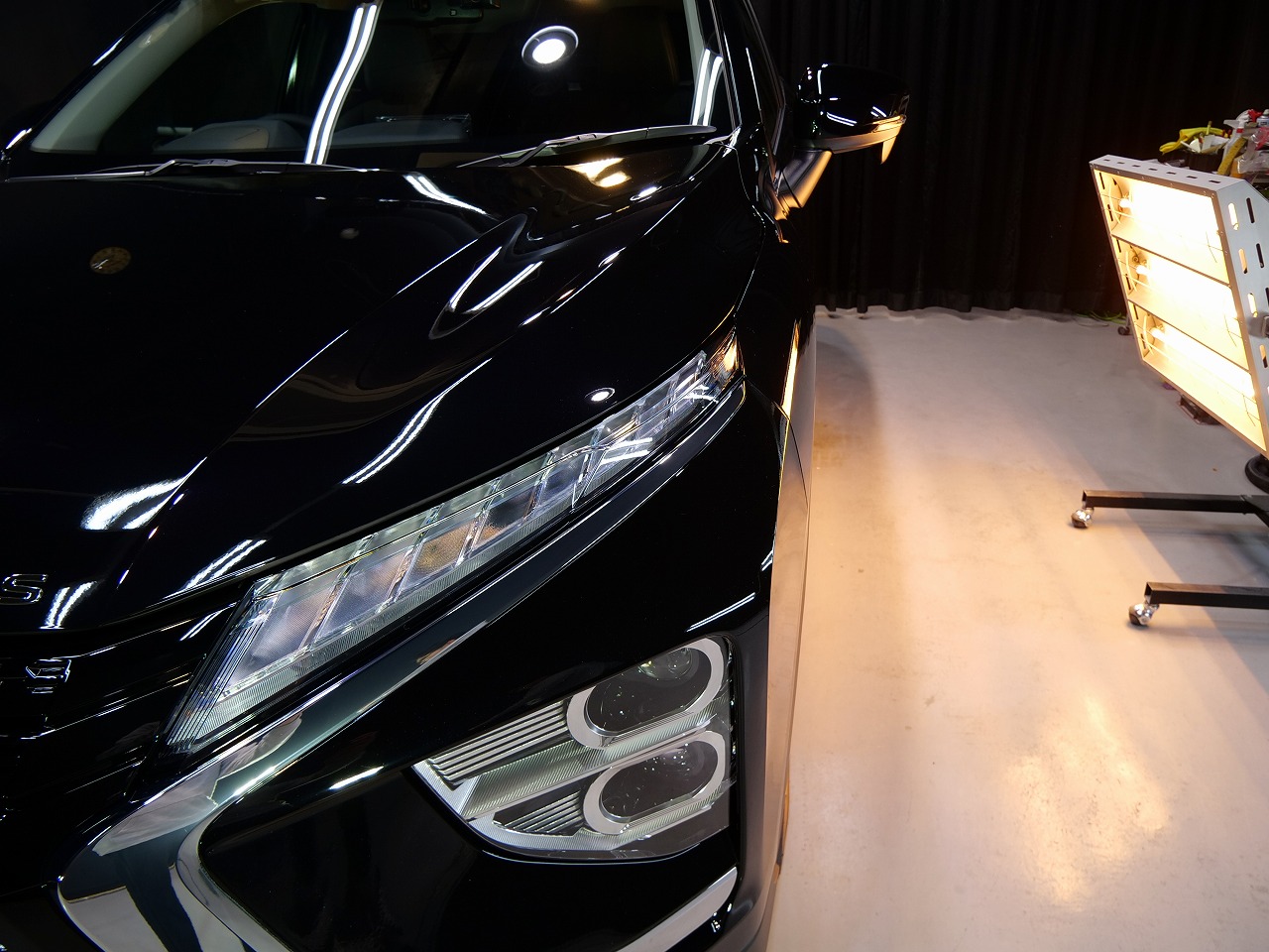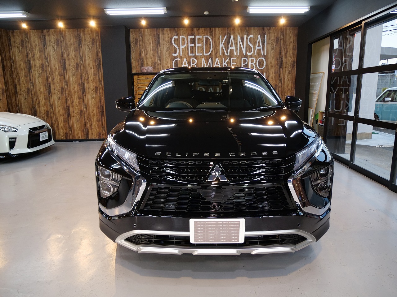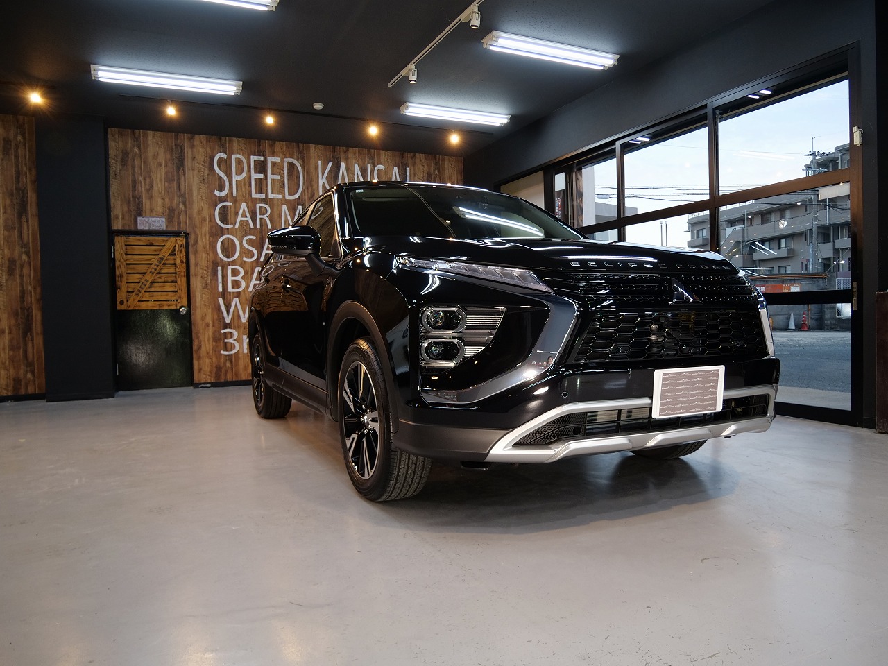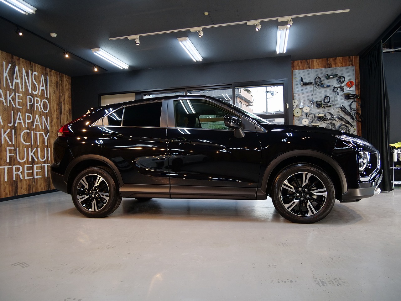 大阪府吹田市より三菱エクリプスクロスのご入庫です!ボディカラーはブラックマイカ。施工はボディには