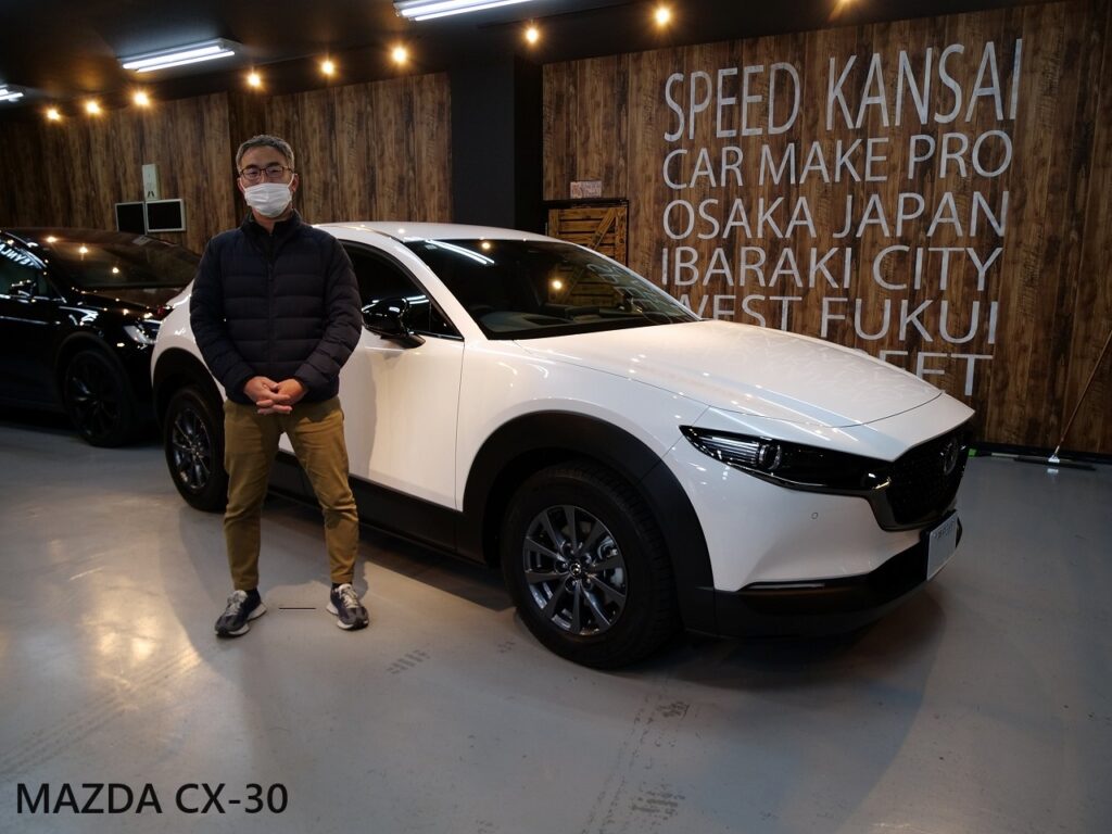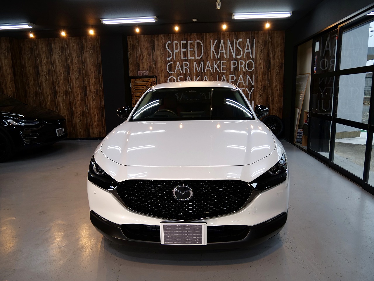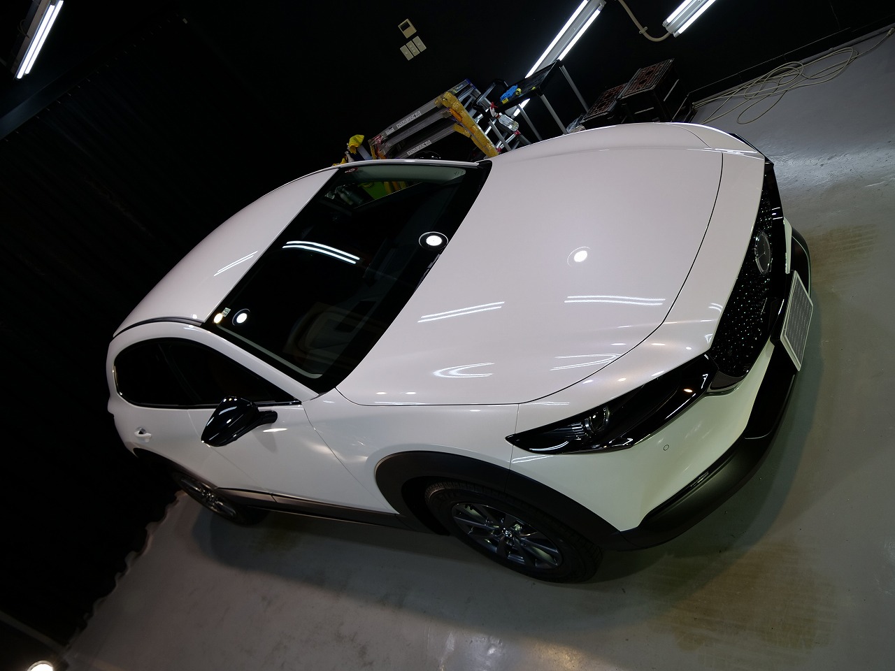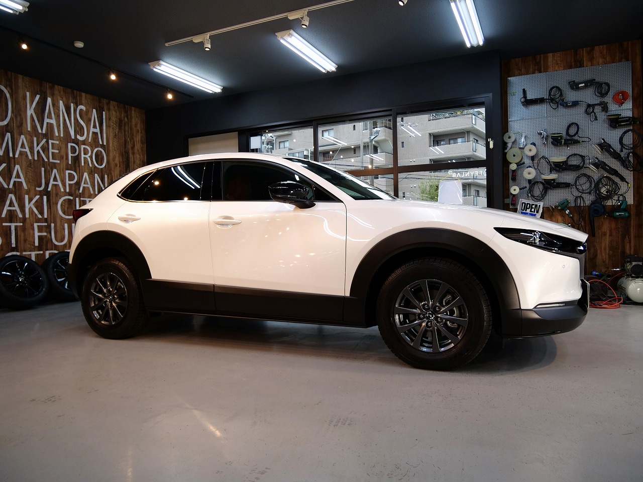 兵庫県川西市よりマツダCX30のご入庫です!ボディカラーはスノーフレイクホワイトパールマイカ。施工