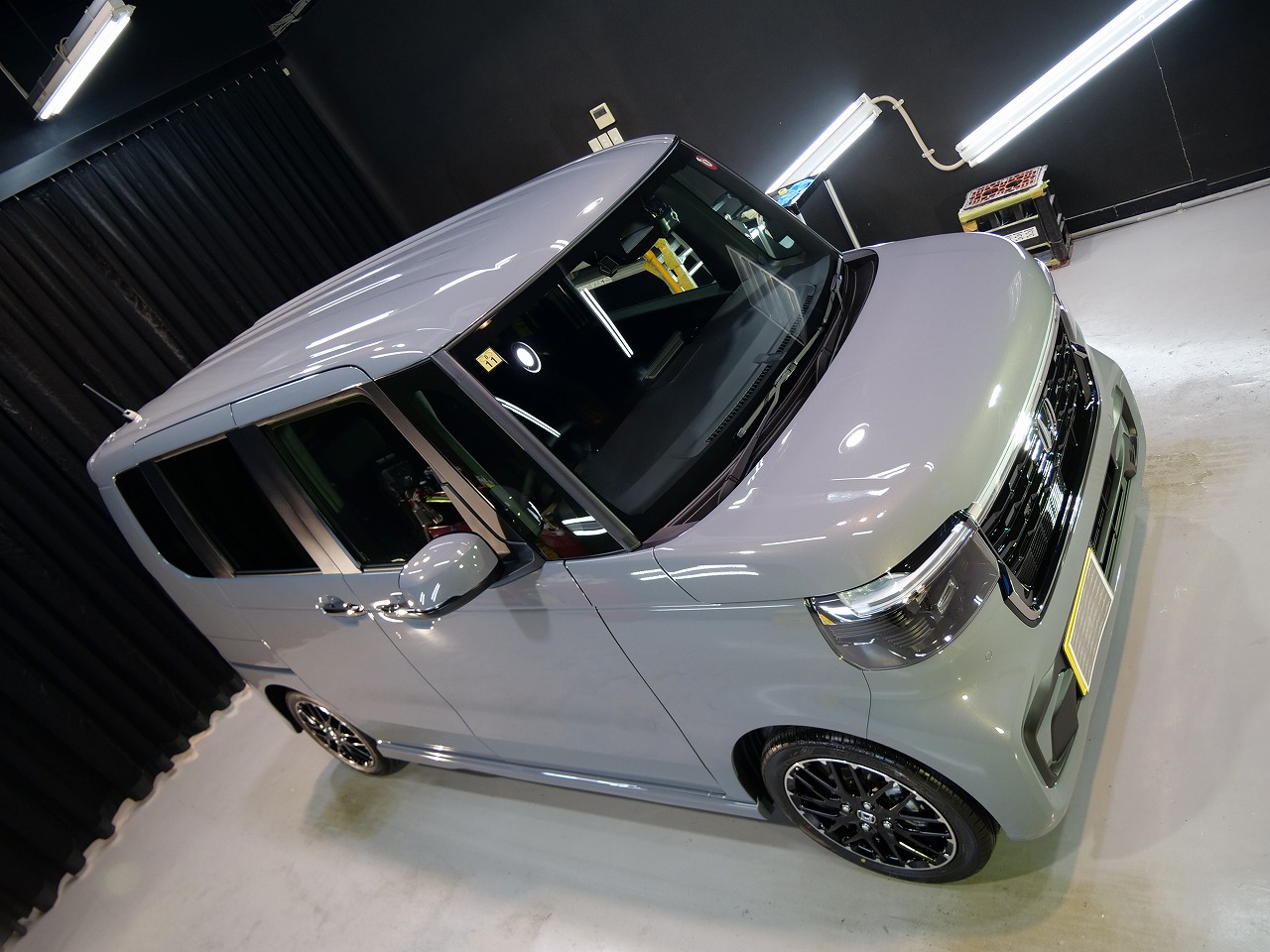 スレートグレーパール。施工はボディにはクォーツガラスコーティング/ホイールコーティング/