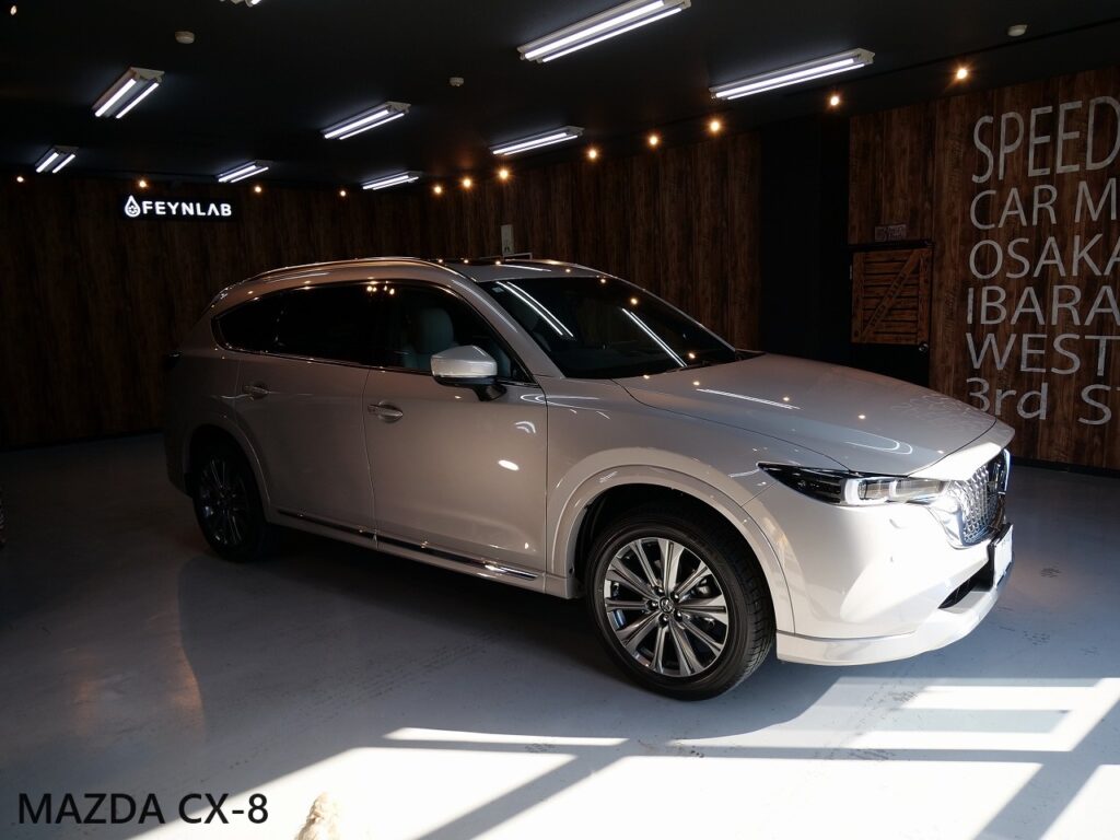 大阪府吹田市よりマツダCX-8のご入庫です!ボディカラーはプラチナクォーツ。施工はボディには