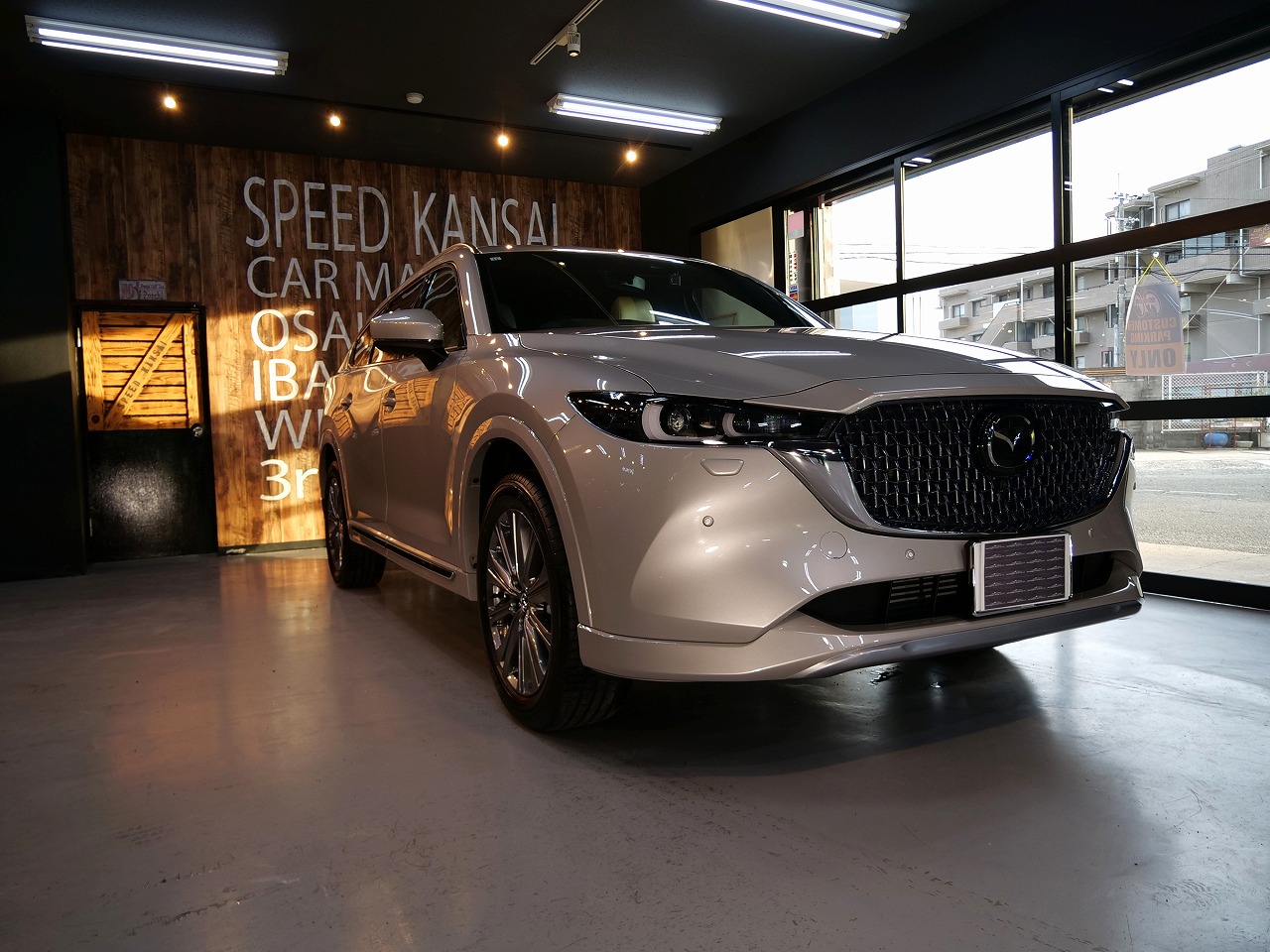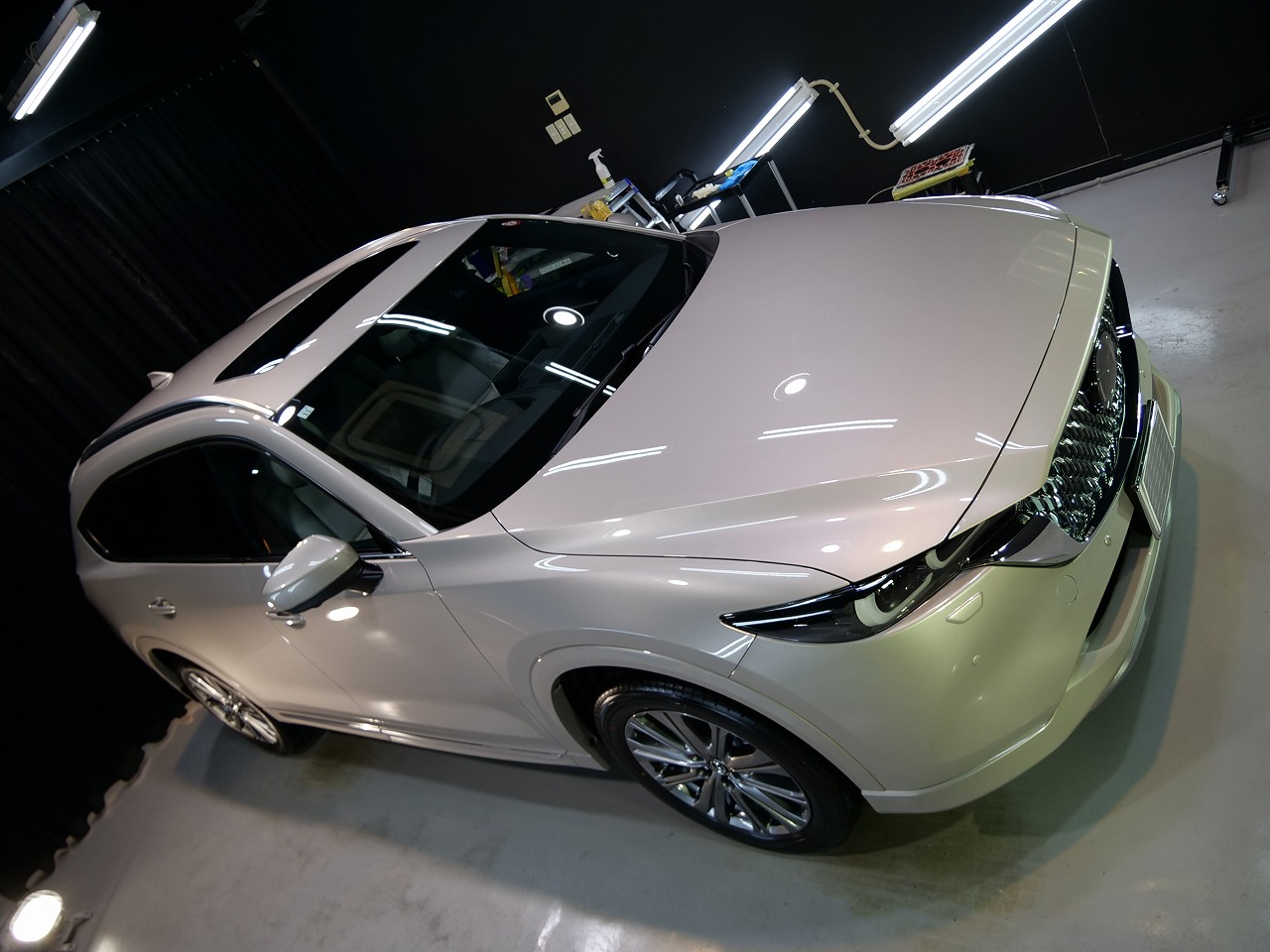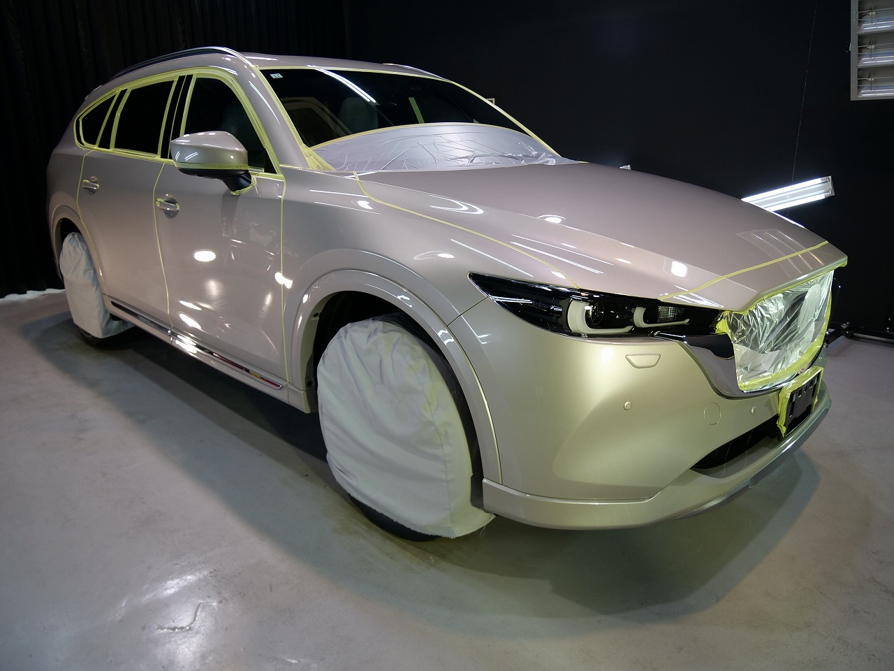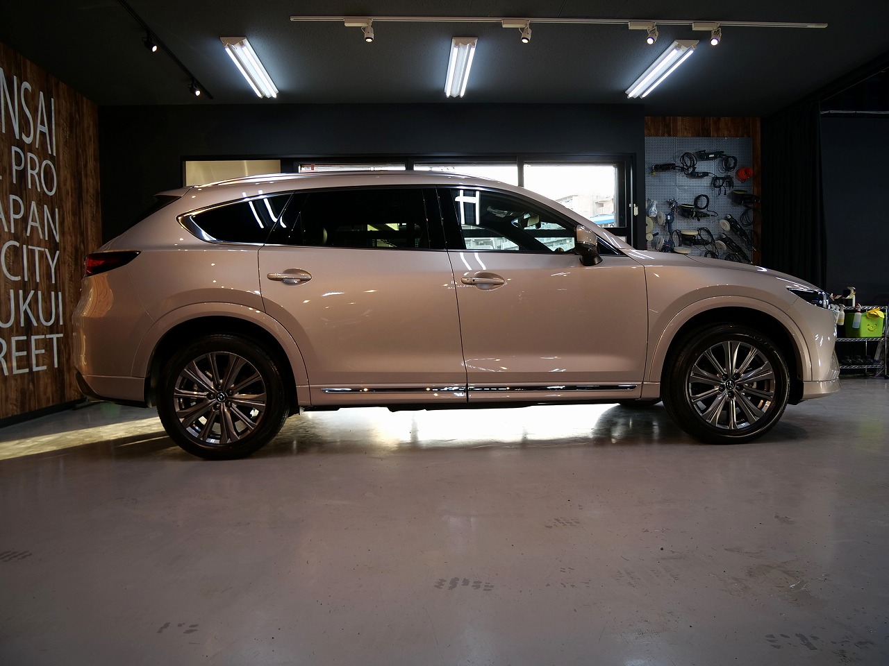 大阪府吹田市よりマツダCX-8のご入庫です!ボディカラーはプラチナクォーツ。施工はボディには